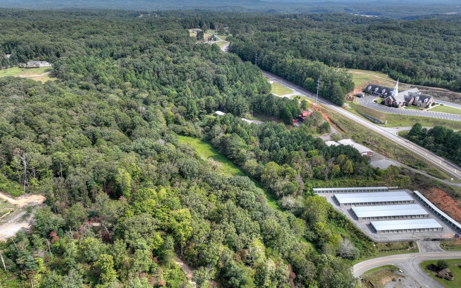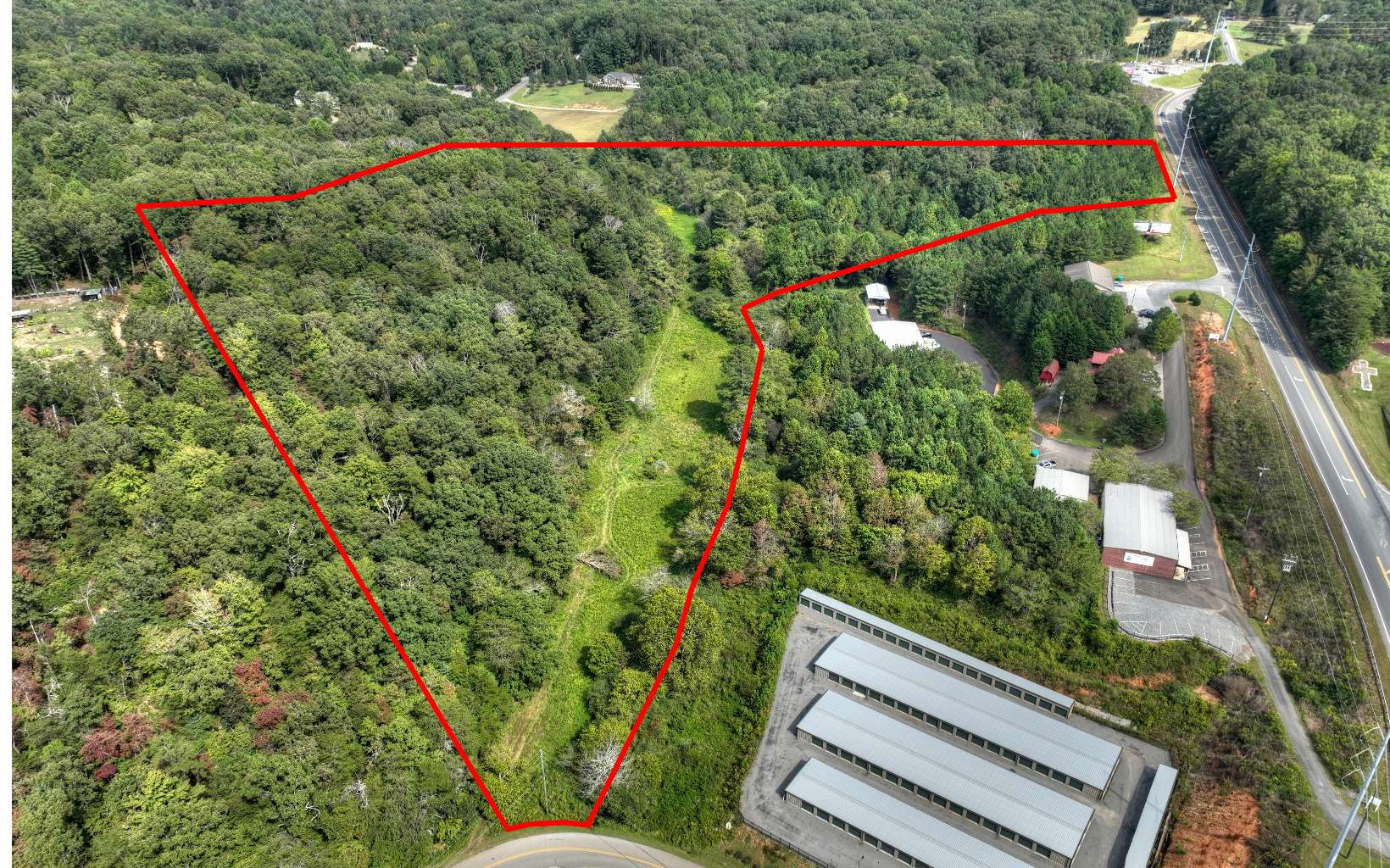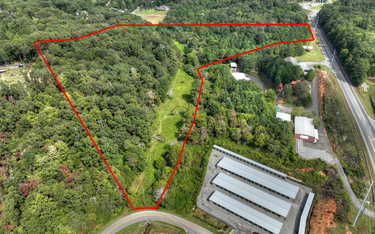 Multi-Use Property! 19.7 acres, located less than 4 miles from town. Zoned R5 - Duplexes are permitted plus any necessary accessory buildings according to Gilmer County zoning regulations. County water is available (no sewer). No restrictions, undeveloped, nice laying terrain with pasture and creek, fronting Tails Creek Road, Harold Pritchett Road, and backs up to Crabapple Estates. This property is also adjacent to a Self-Storage Facility. All paved roads with the best access point at this time from Harold Pritchett Road. Less than 10 minutes from Historic Downtown Ellijay area and 10 minutes from Hwy. 515 and the East Ellijay commercial area with Walmart, Lowes, Medical Offices, Movie Theatre, Hotels and other Dining and Shopping. (Adjacent property is a self storage facility and are not poultry houses as it may appear from the aerial view.)