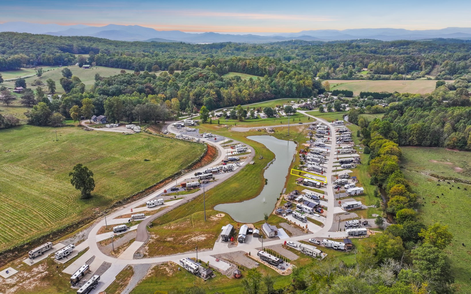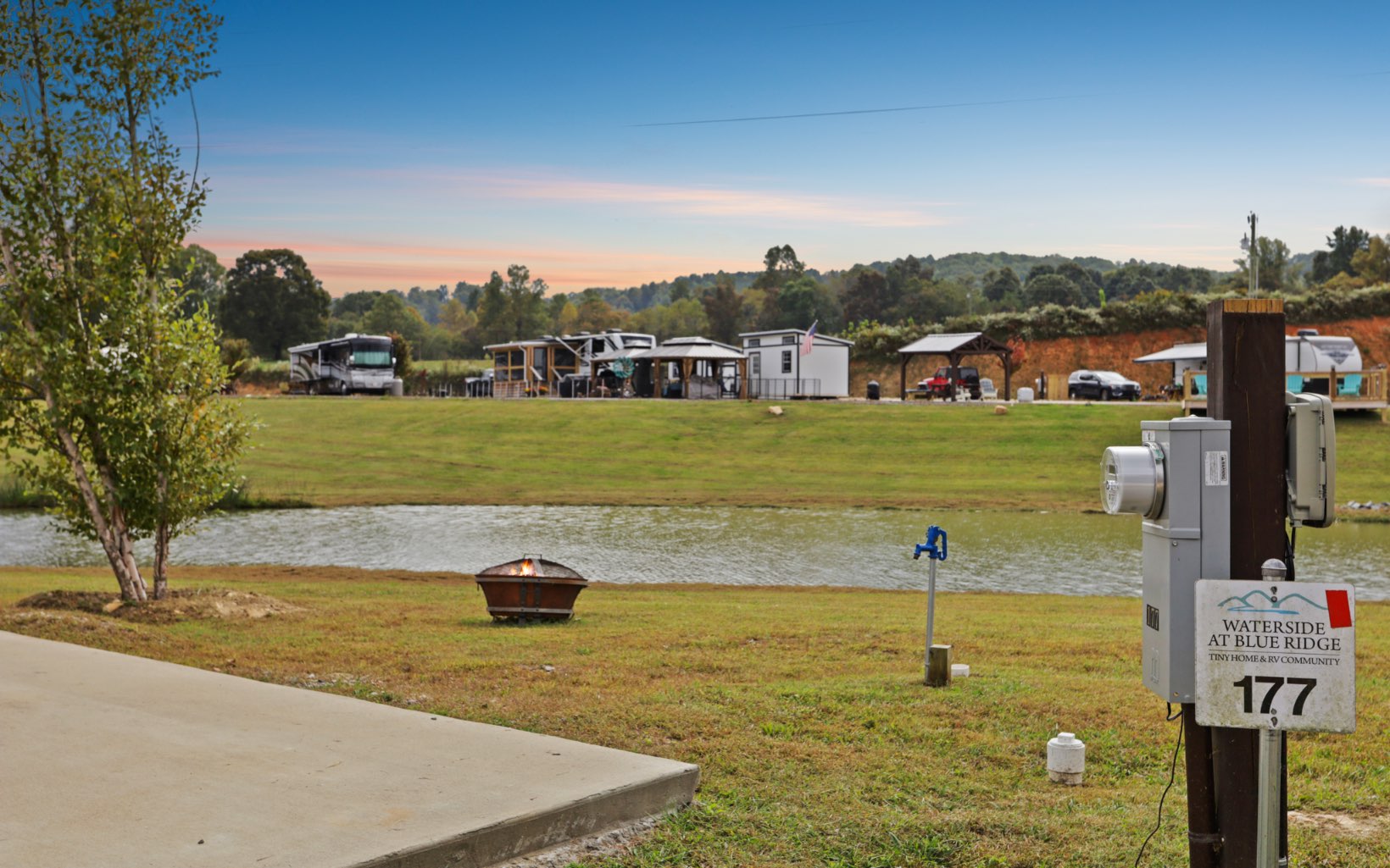 Welcome to your own private RV Site or Tiny Home Lot in the Waterside of Blue Ridge Tiny Home & RV Community located minutes to Lake Blue Ridge and close to the quaint towns of Blue Ridge & Blairsville. Convenient to all that the mountains have to offer this gated community has many amenities including a community pool, hot tub, waterfront clubhouse, bathhouse, laundry facility, fire pits, a wood fired pizza oven, a stocked community lake, golf cart rentals, disc golf & basketball. This gorgeous RV Site or Tiny Home lot has frontage on a beautiful pond and boasts a concrete pad with full hookups including 15 & 30 amp electric, water, internet, a picnic table & fire pit. This lot is perfect for your RV, Tiny Home or for renting out when you are not there for additional income. The Waterside community can handle the rental of your lot or you can rent it on your own.