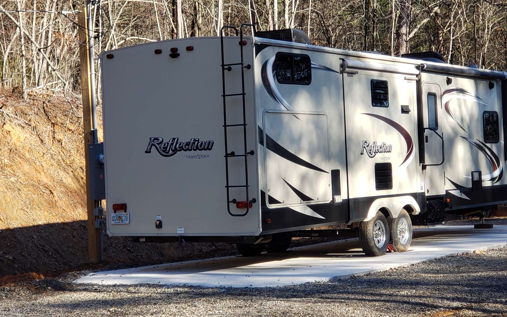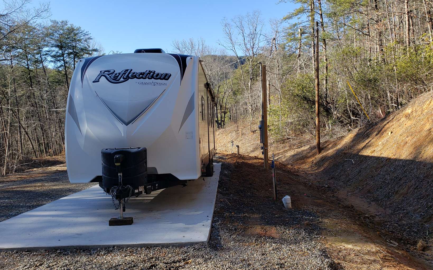 If you love the sound of a rushing creek with lots of waterfalls this is for you. It is a true mountain getaway and includes a 2016 Grand Design Reflection camper and separate hunting cabin. The property has a beautiful mountain view with 13 acres of building possibilities. The seller is clearing down to the creek, and the hunting cabin. Across the creek the property continues up the hill. There are two camper sites, each with electric, water and sewer, one with a concrete pad that the camper sits on.