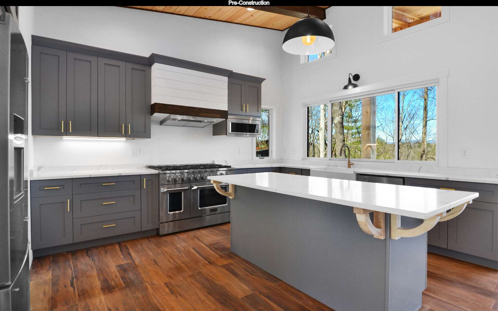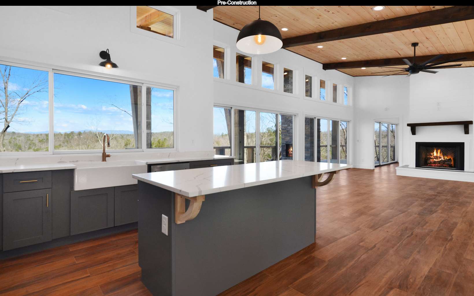 Pre-Construction- MOUNTAINTOWN CREEK. This incredible lot is hugged by Mountaintown creek. Sit on the back porch in total bliss as you hear the symphony of nature & the rushing of the creek below. Take in this sophisticated, sleek mountain modern design, presented to you with local natural textures complimented with the simplicity of industrial elegance overlooking Mountaintown Creek. Welcome to this open concept living with hardwood floors, soaring ceilings, beautiful exposed beams, stainless steel appliances, tons of cabinet space, spacious laundry room, & back wall of windows allowing the beauty of the sunlight & outdoors in. The master is on the main with en-suite bathroom, custom tiled shower, his & her vanities, walk in closet & a sliding glass door leading to the back deck. Spacious two car garage with open breezeway to main house. This exquisite home is designed for entertainment as it has extended back porches, two outdoor fireplaces, with tons of open space for gatherings. Bring the family or party downstairs to the terrace level where you will find a wet bar, two bedrooms, bathrooms, big middle room for a pool table, lounge area, or whatever your heart desires. This is a true beauty! All of this within the gates of beautiful High River Subdivision. Photos are of another home nearly completed currently not for sale.