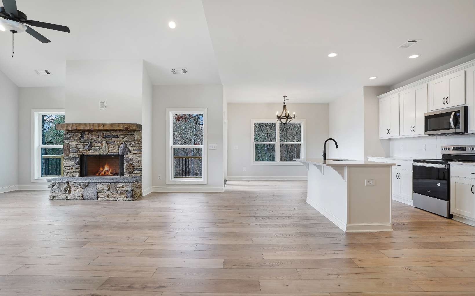 Welcome to "The Ridges at Blue Ridge," a new community located less than 10 miles from Downtown Blue Ridge, where you will find this stunning new construction Craftsman-style home with long range mountain views. Built by well-respected Brown Haven Homes, this one level home boasts a spacious 1759 square feet of living space and features 3 bedrooms and 2 full bathrooms. As you enter the "Shenandoah" floorplan, you will be greeted by a large open floorplan that is perfect for entertaining family and friends. The living room features a cozy fireplace and plenty of windows that provide an abundance of natural light and showcase the picturesque mountain views. The kitchen is equipped with, quartz countertops, and ample storage space. Enjoy the mountain views and fresh air on the large, covered porch, which is perfect for entertaining and relaxation. The 2-car garage provides ample space for parking and storage. This home sits on a level to gentle sloping .84-acre lot, which is perfect for gardening or outdoor activities. As a bonus, this new community offers community access to Hemptown Creek - a trout stream - for all your fishing adventures. This home is perfect for those looking to experience the natural beauty of the North Georgia mountains while being conveniently located close to Downtown Blue Ridge. Don't miss out on the opportunity to make this stunning new construction Craftsman-style home yours!