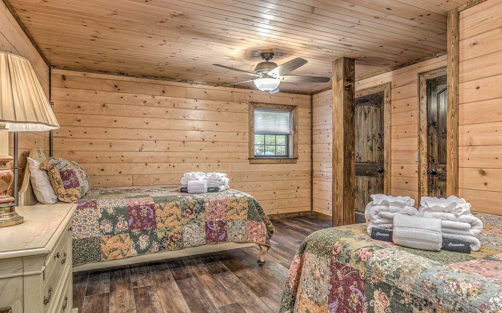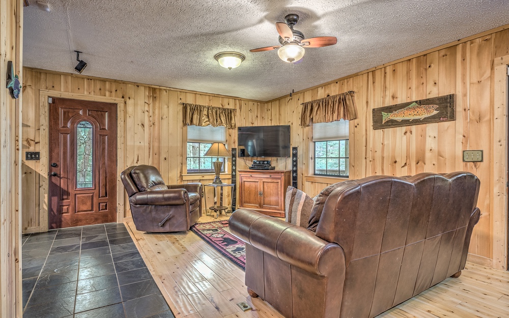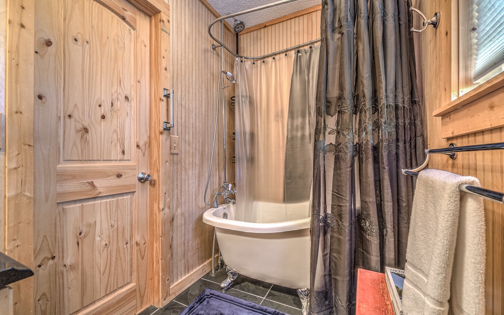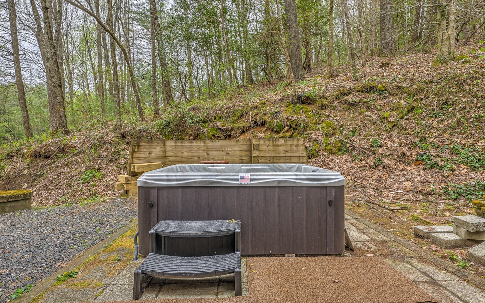 Pleasantly private and bordered by hundreds of acres of National Forest and just passed Swinging Bridge over the Toccoa River access road, this cabin is an amazing location for doing what you love in the mountains. Deemed "Hemlock House" sits hillside tucked away in the trees with the soothing sounds of the creek across the road. Great space with two bedrooms up and bath with classic claw foot tub/shower. Terrace level features private primary bedroom/bath with handicap access. No worries for those who find stairs a challenge, this cabin comes with its own elevator allowing everyone to enjoy every part of this beautiful property. Outside you will find the hot tub area with fire pit and hundreds of acres to hike, bike, or drive into the Swinging Bridge area. Wonderful rental opportunity fully furnished!
