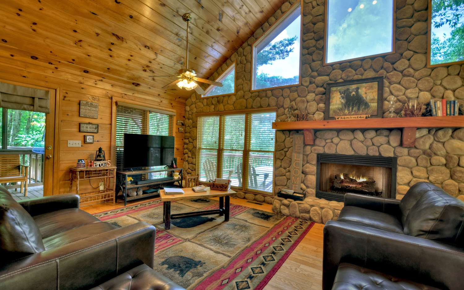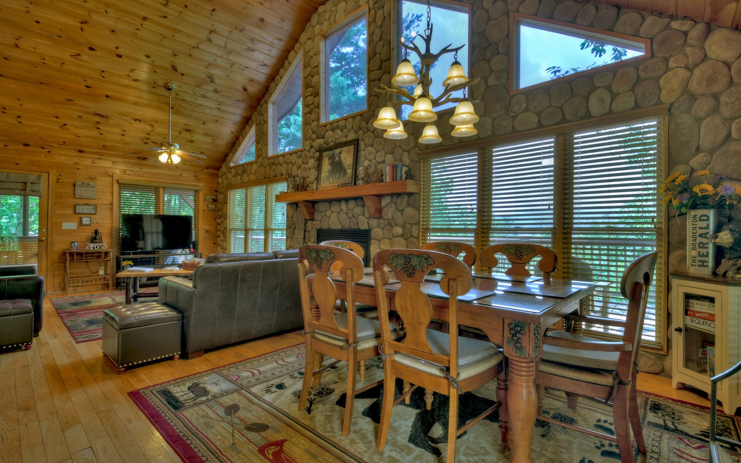 FANTASTIC MOUNTAIN VIEWS, TURN KEY FURNISHED, PRIVACY, ACREAGE & NO HOA! ... WOW, this cabin checks off all the boxes! "Cashes Mountain View" is a great escape from the city & a successful vacation rental. Beautifully furnished, featuring 2BR/2BA on main with a beautiful river rock wall with gas log fireplace. Enjoy nature & the outdoors on the wrap around porch w/covered seating area, fire pit, hammock & hot tub; all boasting long range mountain views! Finished basement has den & game area (pool table, darts, ping pong table, foosball) Situated on 2.11 acres; located only 11 miles from Downtown Blue Ridge; half mile from Benton Mackaye HIKING trail; 13 miles to Fall Branch Falls WATERFALL & less than 30 min. to LAKE Blue Ridge. Plenty of parking with 2 driveways, huge main level carport plus basement garage. This one is a keeper! (Grossed approx. $52K in 2022)