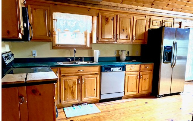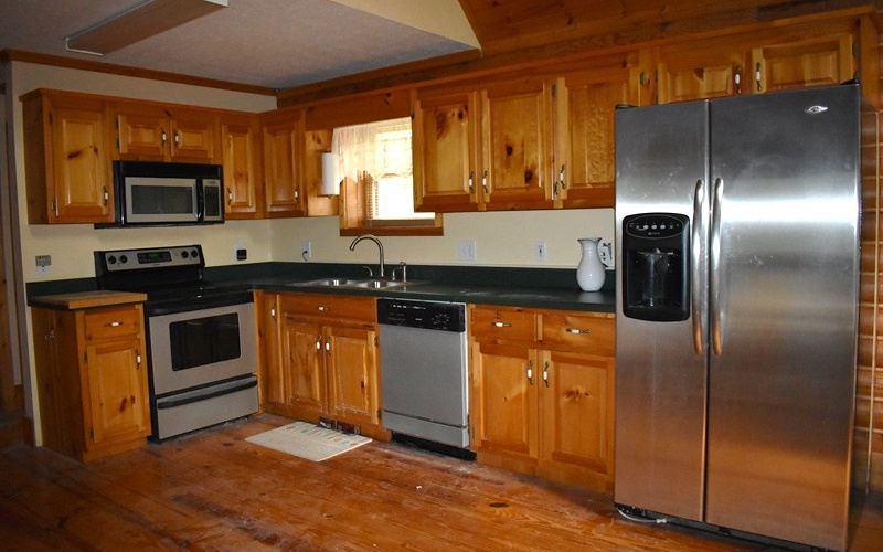JUST REDUCED AGAIN - CHECK THIS OUT BEFORE IT'S GONE! Here is a true D Log cabin at a price you can easily afford! There are wide covered decks both front and rear, and when you step into the Great Room, you'll love the big, beautiful fireplace with its energy efficient gas insert. The L shaped kitchen features modern stainless appliances and glossy wood cabinets, and you will be charmed by the soaring wood ceilings and log walls. Wide plank pine floors add to the feel of old time country living with modern conveniences. There are large bedrooms on the main and loft levels, with a full bath on each floor and laundry on the main. The detached metal garage/workshop has built in shelves and a rollup door and walk door on the front. Topping it all off, this country charmer is peacefully nestled in a park-like setting with huge, shady hardwoods, and an abundance of parking space. This is country comfort at its best, priced to sell at $261,375!