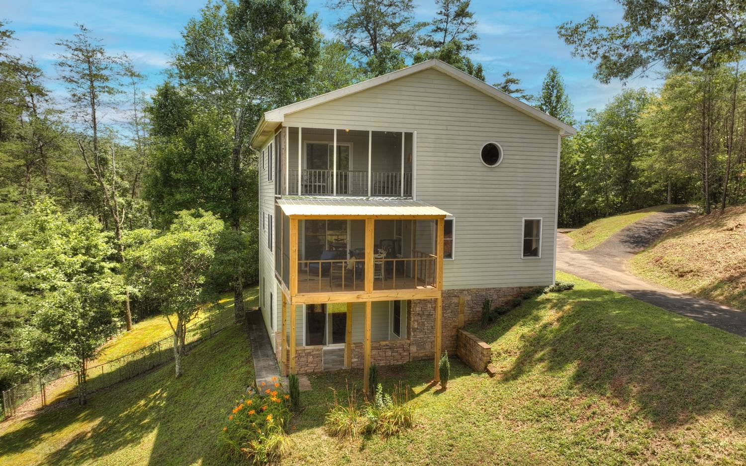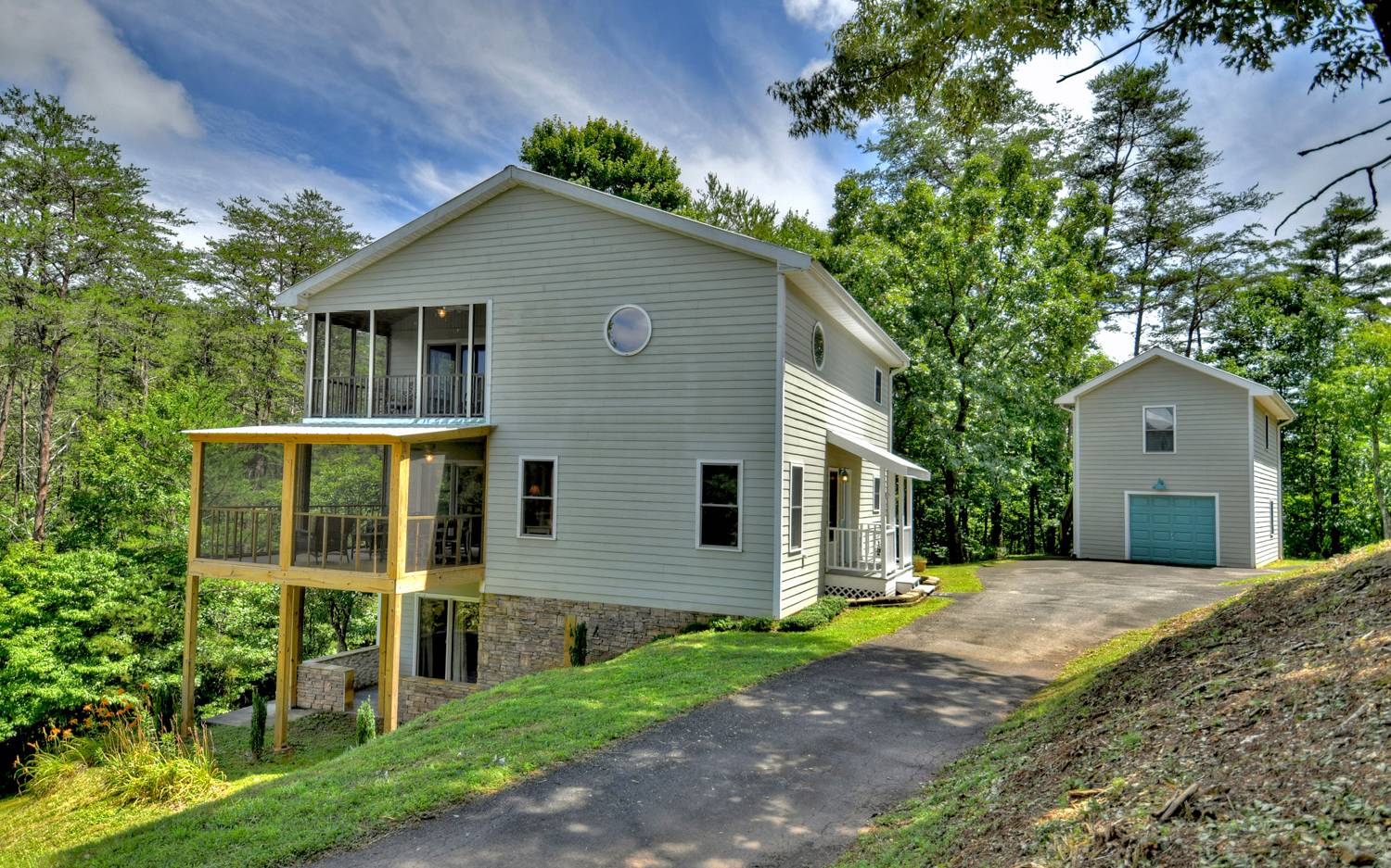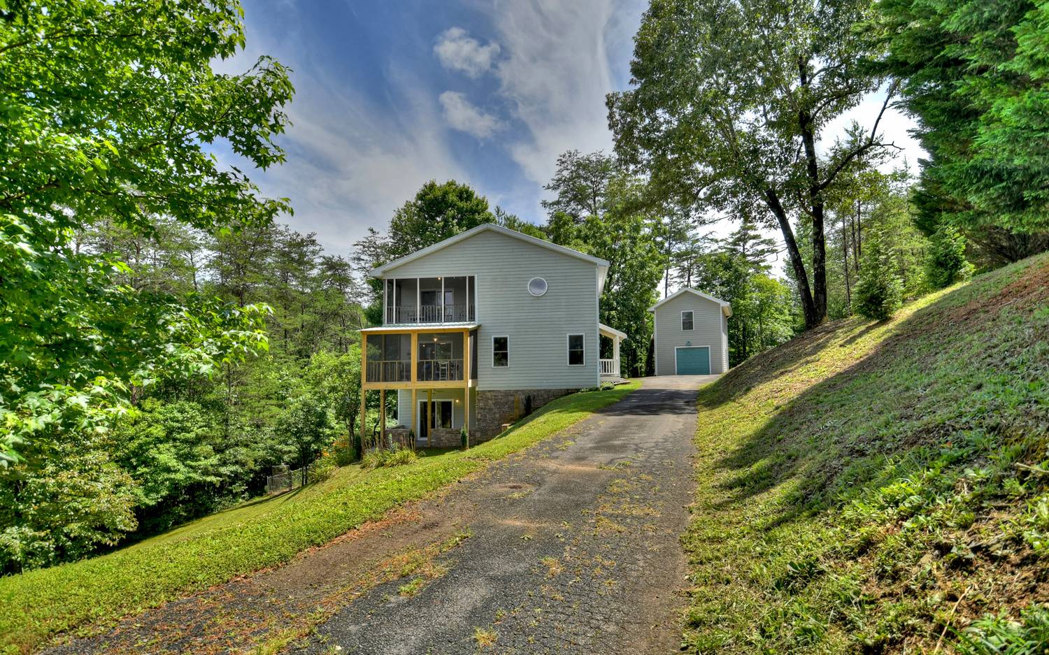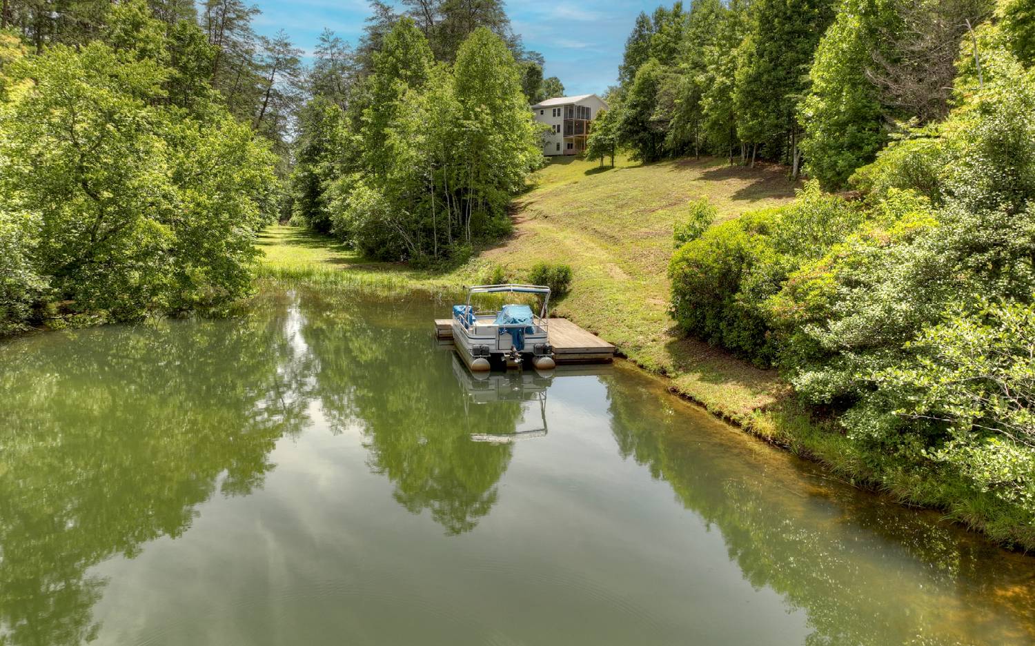 DEEP WATER LAKEFRONT HOME!! Situated at the end of the road with lots of privacy, circular driveway, curb appeal, private deep-water lot offering 3.06 acres and dock. Entering the home you will enjoy a nice open space living room with gas log fireplace, dining area, kitchen with gas stove and newly built screened in porch for that extra dining space or quiet evenings enjoying the lake view. Bedroom and bath on every level, 2 laundry locations (main and terrace). There are 2 additional sleeping areas (loft and terrace) with plenty of storage and a nice new patio area. This property can sleep 14 so no worries about large family gatherings! Additionally, you will find a finished bedroom & bath suite above separate garage with deck & built-in seating. Not to forget the large acreage with a fenced in area for your fur babies to roam and enjoy as well. Furniture remains with sell. Boat & other items negotiable!