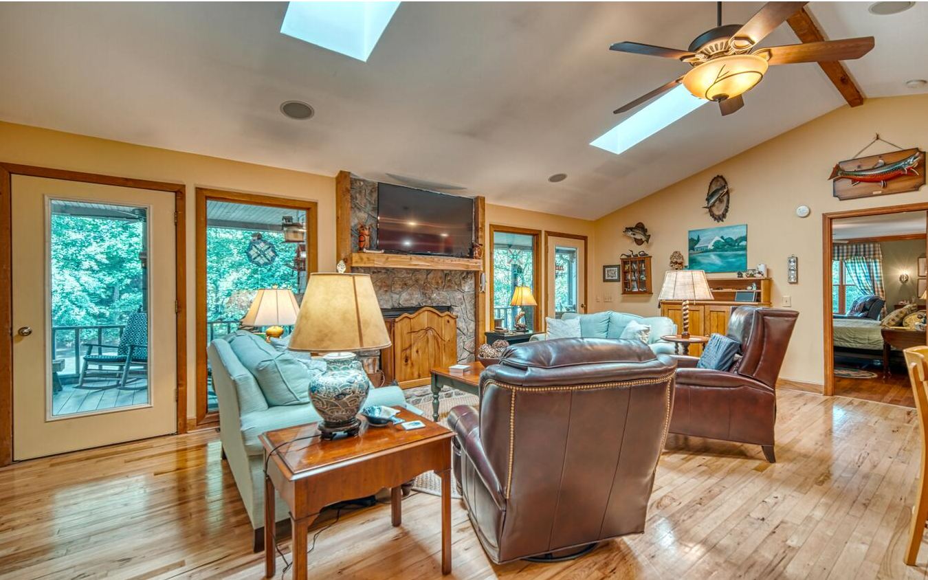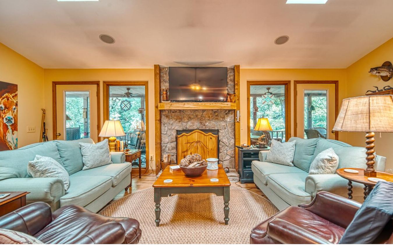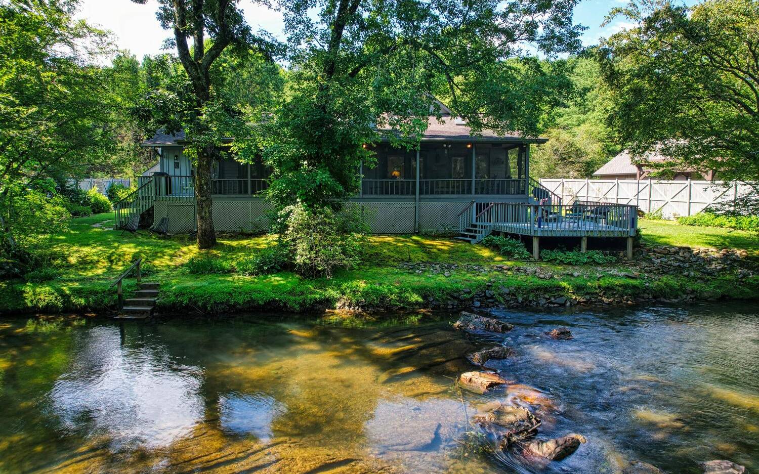 EXCEPTIONAL RIVERFRONT 'In the Bend' where the fish bite literally, at your deck! Can’t build THIS close anymore! The home is a beautiful combination of sophisticated living & high-end ‘fish camp style’ = instant warmth & appeal! Greatroom with glass doors & panels to the view & full width screened porch, large stone fireplace, kitchen, huge primary + guest are ALL ON the river so you can listen to the sounds of the Hiwassee as it rolls on by! Large addition to the front offers more formal living with 3rd FP, dining with bay & additional guest/office. ONE LEVEL with spaces to entertain or tuck yourself away! PLUS, a guesthouse with living & cook area, wood stove, sleep loft & 3rd full bath off your 2-car garage! Bring your gear! Or a book! Either way, you won't want to leave!