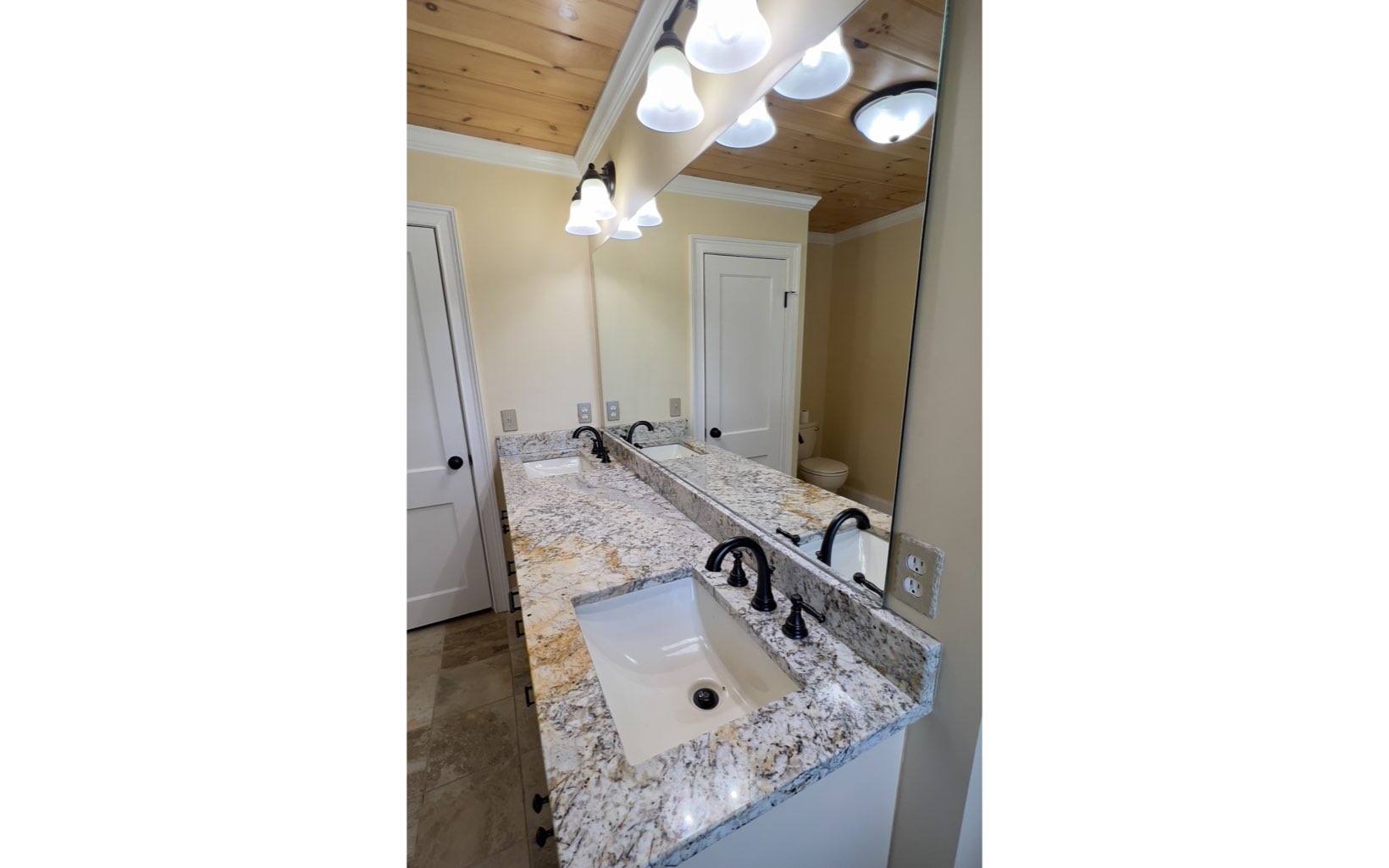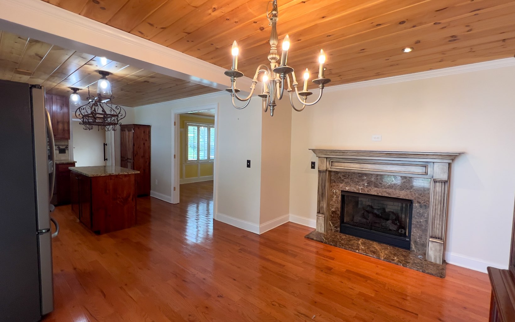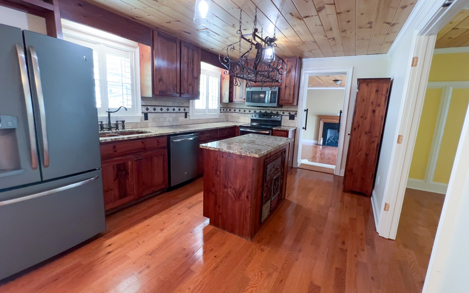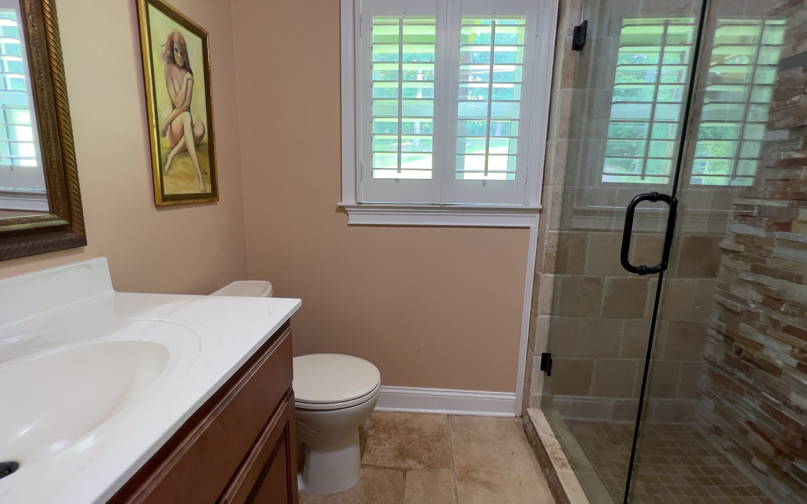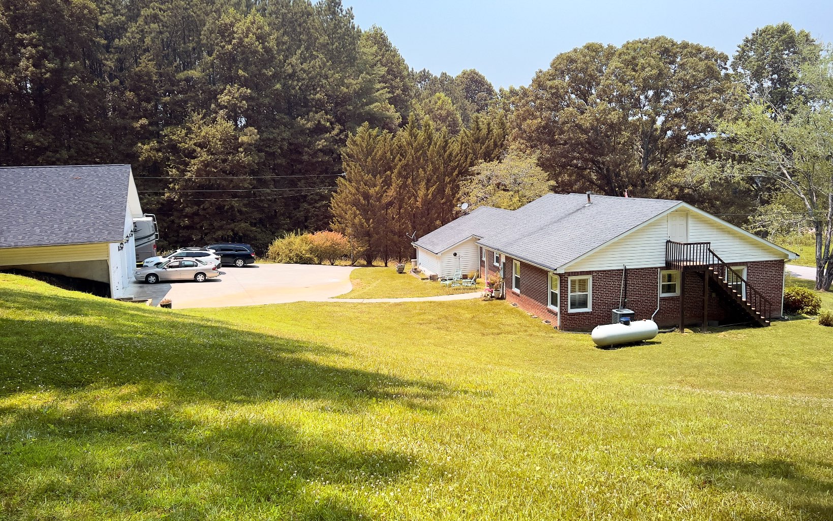 This beautiful brick rancher has been completely remodeled by a previous owner with all wood floors, tongue and groove ceilings, tile walk in showers, granite vanities, dbl sink in master bath & granite in remodeled kitchen w. copper sink, newer appliances, 2 gas fireplaces, a huge master suite. Heated master bath floor with Sun Touch floor warming system. Custom Shutters on all the windows. Private well, Septic cleaned out 3 months ago. Instant hot water. Freshly painted recently.Front deck, French doors, The best part is the amazing 3 car garage, 1500 s/f fully air-conditioned & heated, insulated and instant hot water, build in compressor system, separate electric meter, 30 amp RV service and concrete slab for RV parking, 1/2 bath w/ shower hookup. This is a dream property w/ 2.87 acres including a field behind the garage for whatever use you can envision.