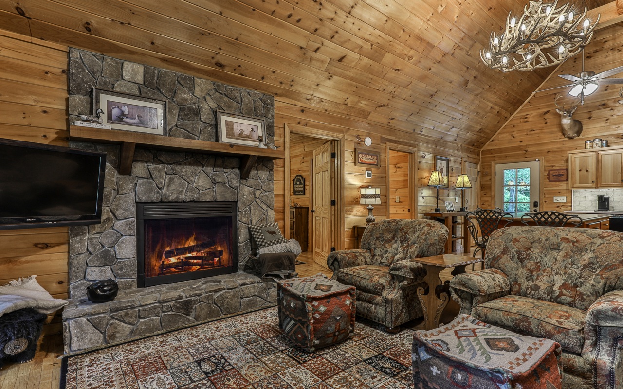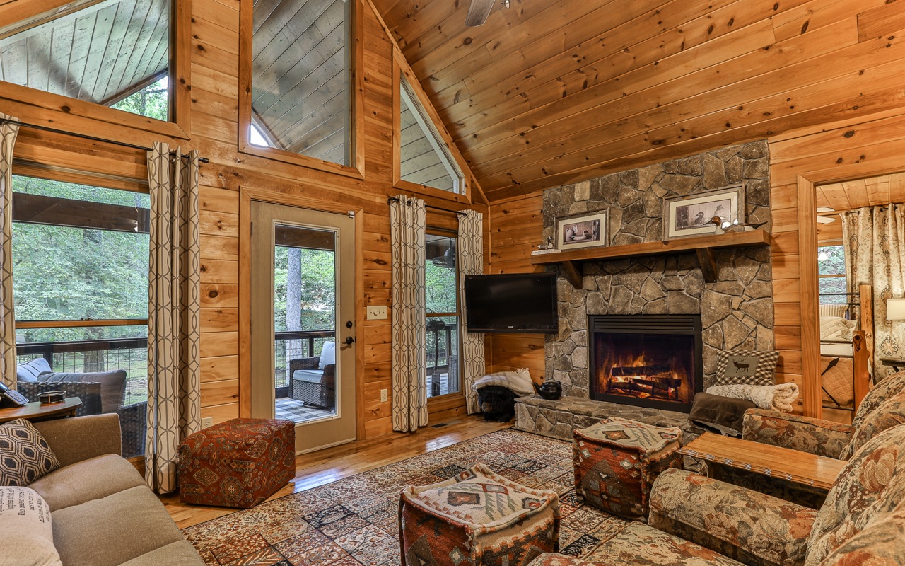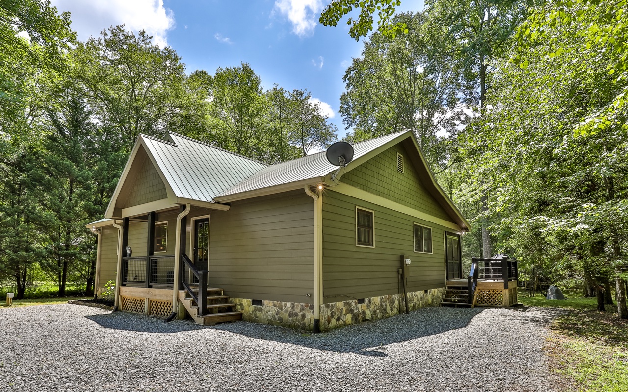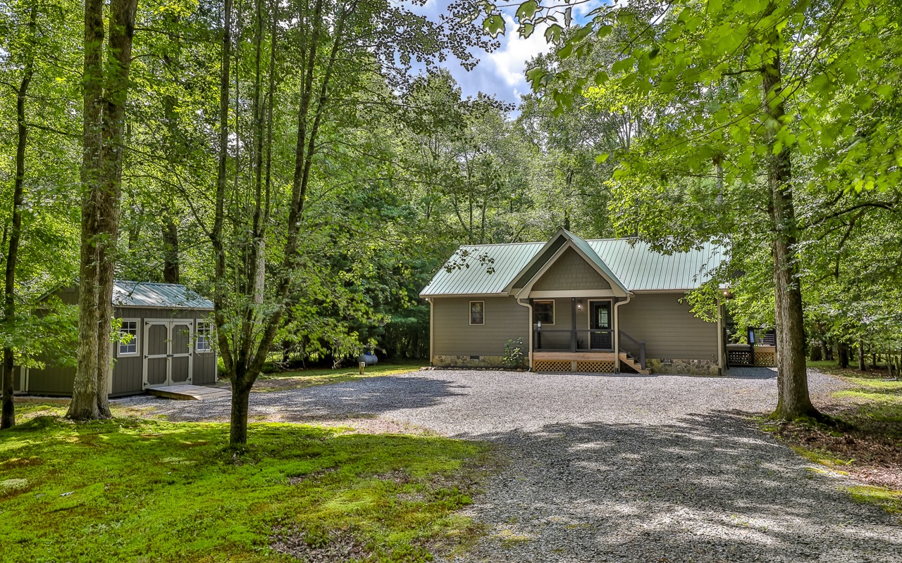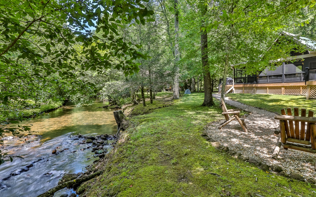 Find WATERFRONT serenity at this beautiful home located in Cashes Valley area on coveted Fightingtown Creek in Fannin Co. -The Trout Fishing Capital of GA. Enjoy soothing and relaxing sounds from the comfort of your spacious screened in back porch located steps away from the trout filled creek. This 2 BR/2 BA cabin is on a gentle-laying lot w/easy access to the water and an abundance of trees and nature. The backyard includes a firepit & hot tub for even more relaxation. You will notice the easy maintenance Hardie Board siding & metal roof, along w/shed for storage. Inside this well-kept home there is a spacious kitchen w/large island, pantry, great room w/stone gas fireplace & plenty of windows to bring the nature inside. Split double master bedroom plan w/both rooms having French doors leading to the rear porch. Whether you are looking for a personal vacation cabin or investment property, this house is being sold turn-key (most furnishings included w/purchase). Come indulge in your mountain getaway today!