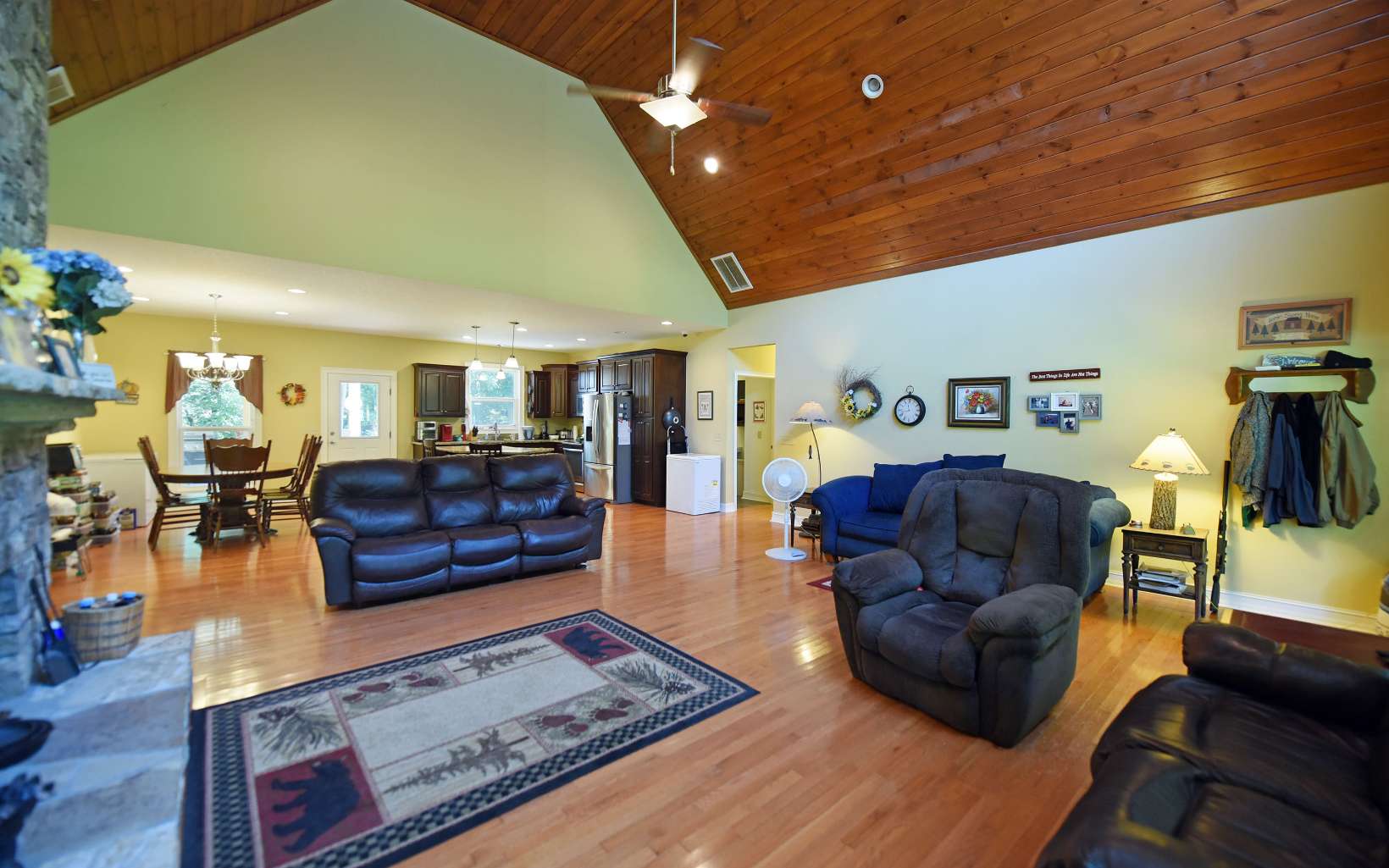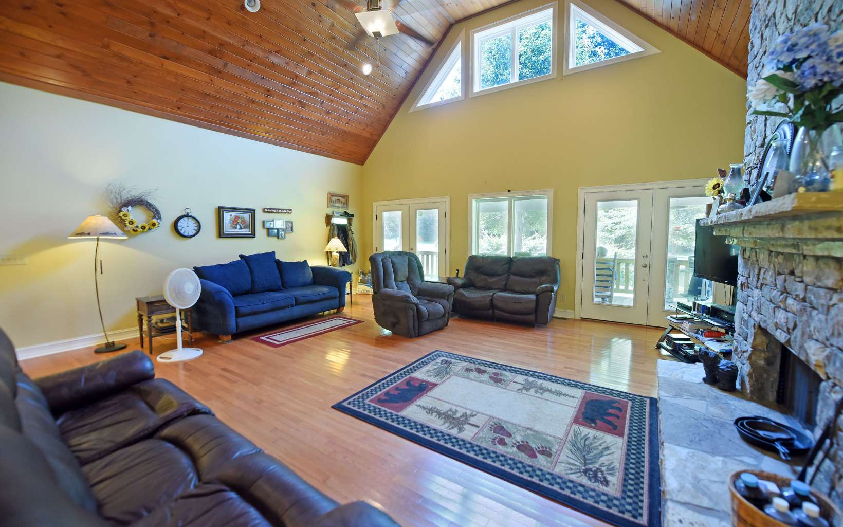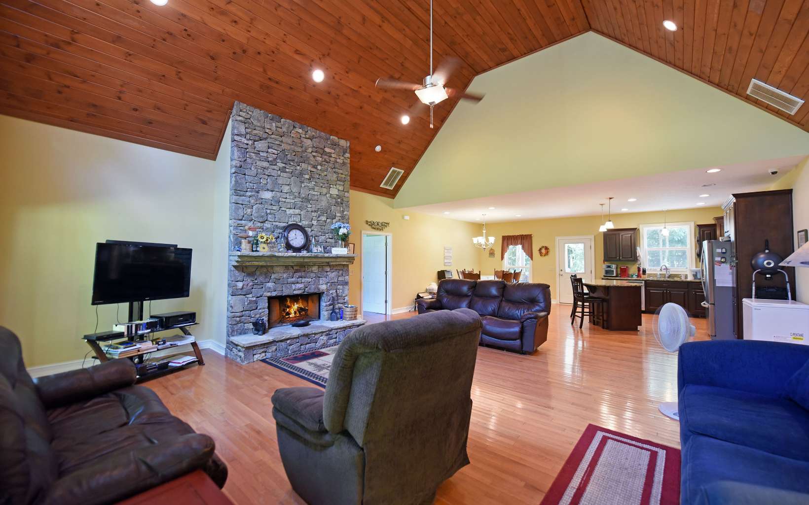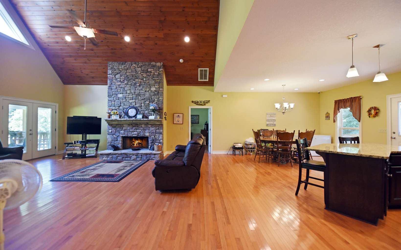 RUSHING CREEKFRONT! One Level home on approx 2 level acres with HUGH workshop/barn. Cathedral ceilings, wood floors, stone fireplace & end of road privacy. Sit On Your Covered Porch AND Enjoy Retirement!