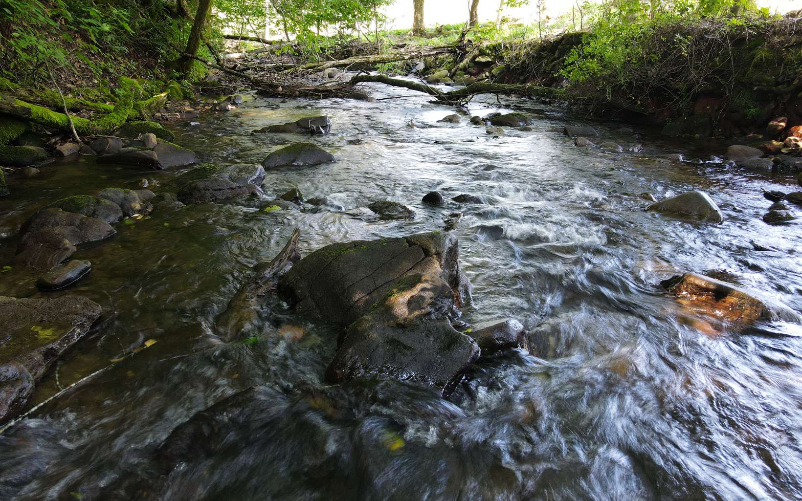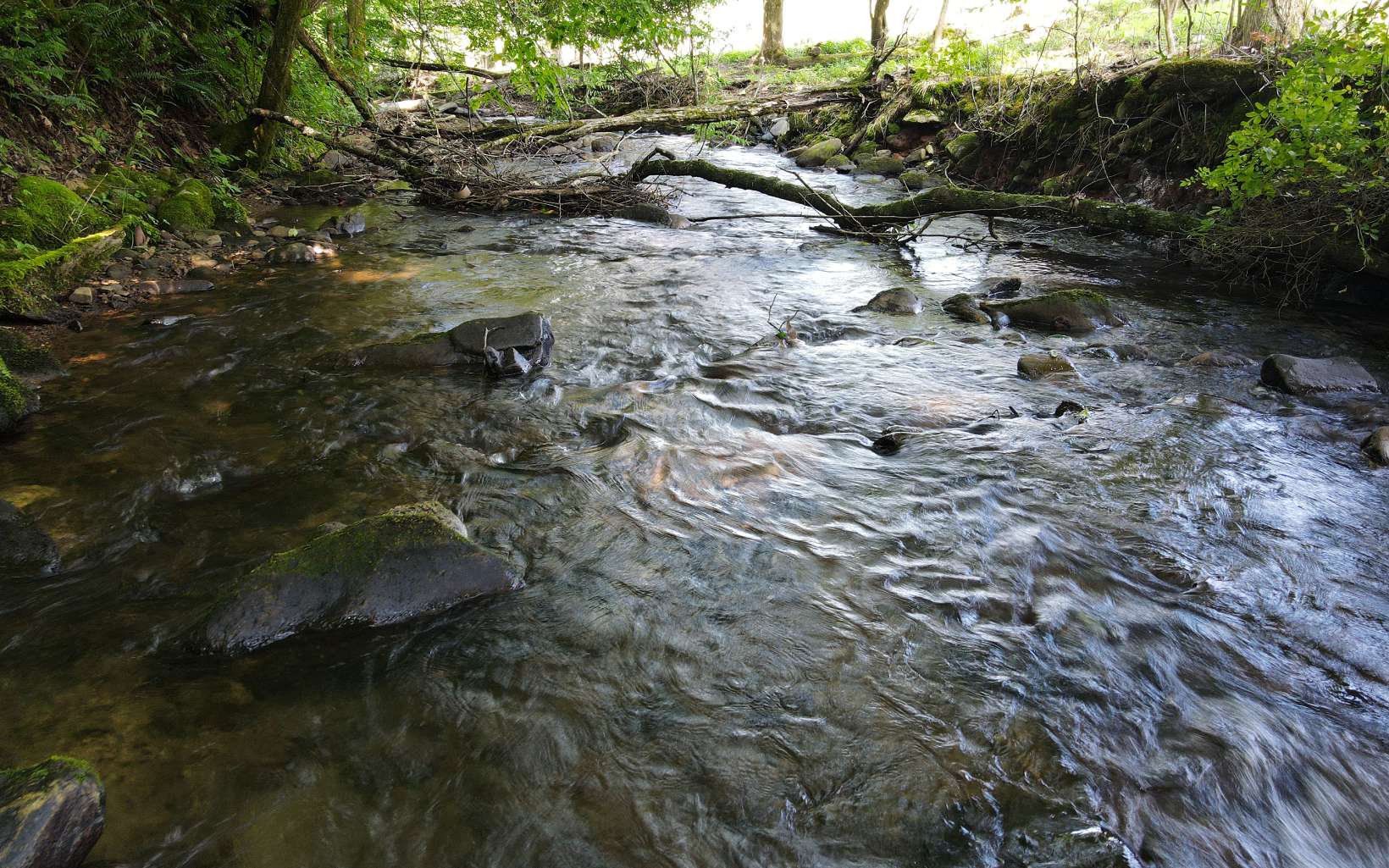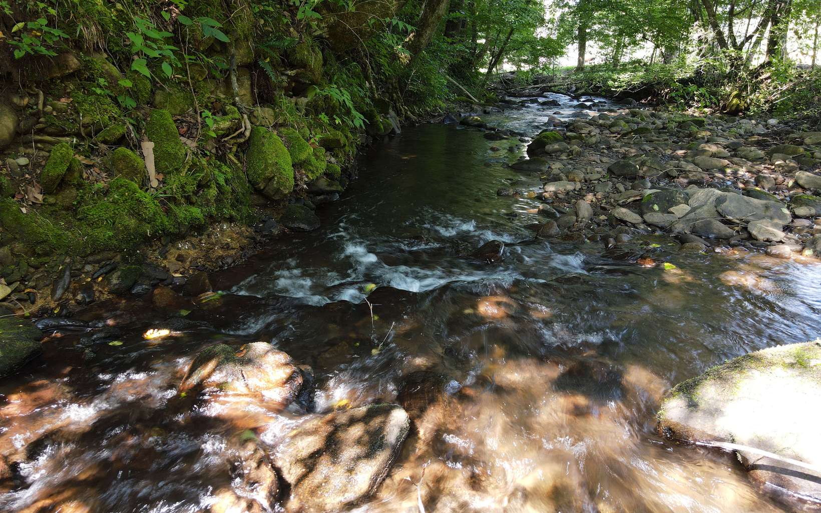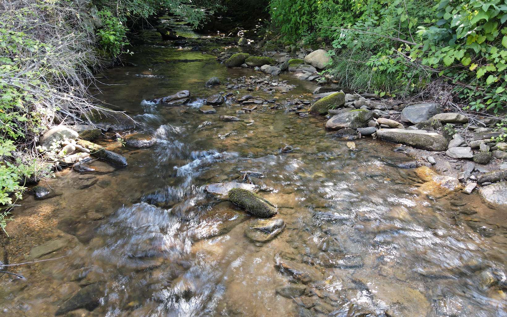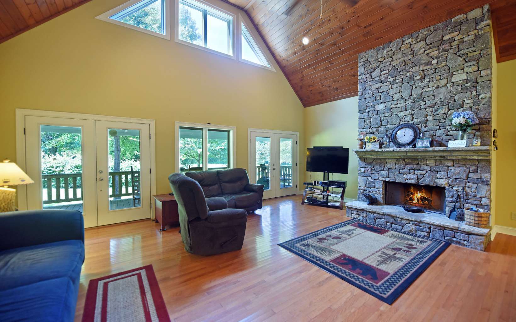 RUSHING CREEKFRONT! One Level home on approx 2 level acres with HUGH workshop/barn. Cathedral ceilings, wood floors, stone fireplace & end of road privacy. Sit On Your Covered Porch AND Enjoy Retirement!