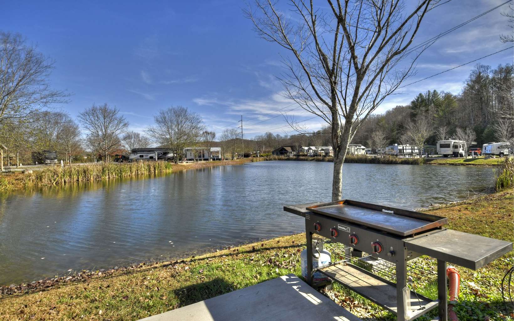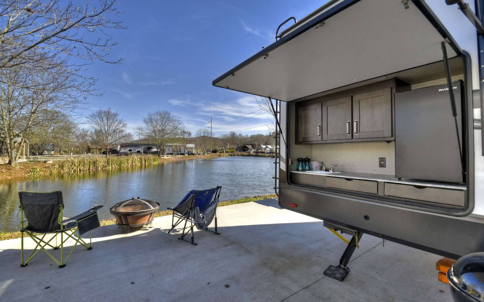 RV or Tiny Home lot with Concreted pad and Lake front. Grand Design RV in Mint condition with 2 bedrooms, 1 bathroom. Nice kitchen and living room area with Fireplace and an outdoor Kitchen. Also includes 3 pull out sleepers. Waterside of Blue Ridge is a premiere Family Park with community Pool, Basketball, Fire pit areas throughout, Ponds, Creek. So much to offer for the avid camper or rental opportunity for investment. Owner will consider selling the lot without the RV.