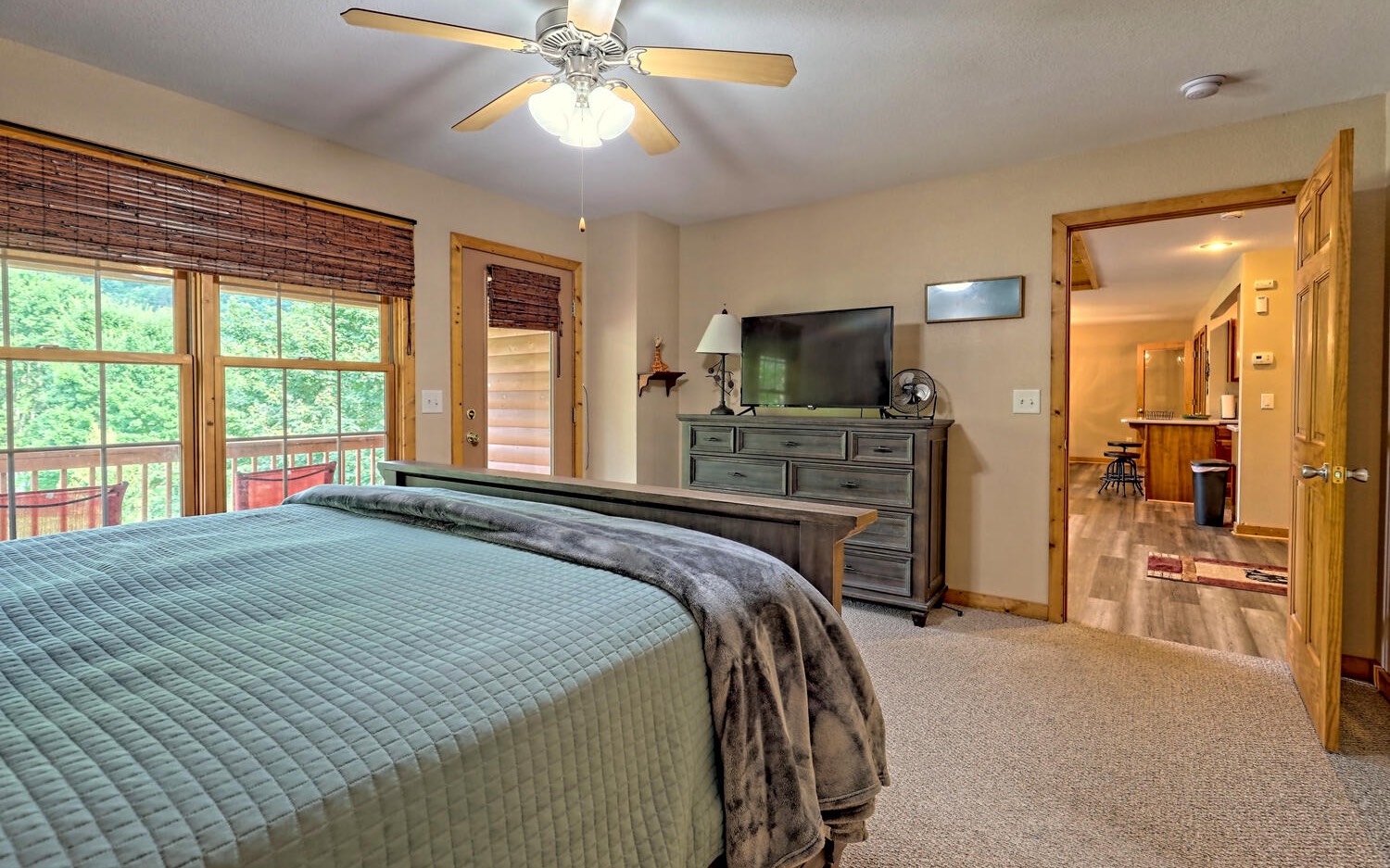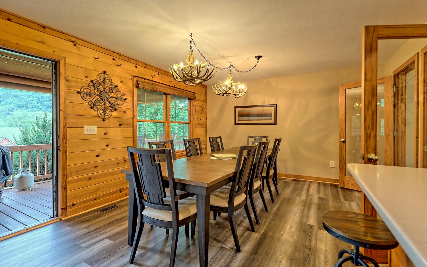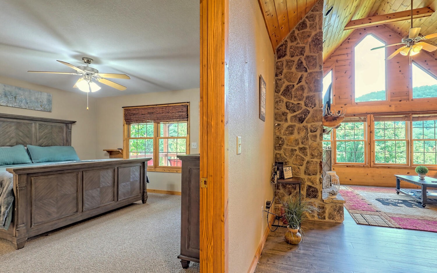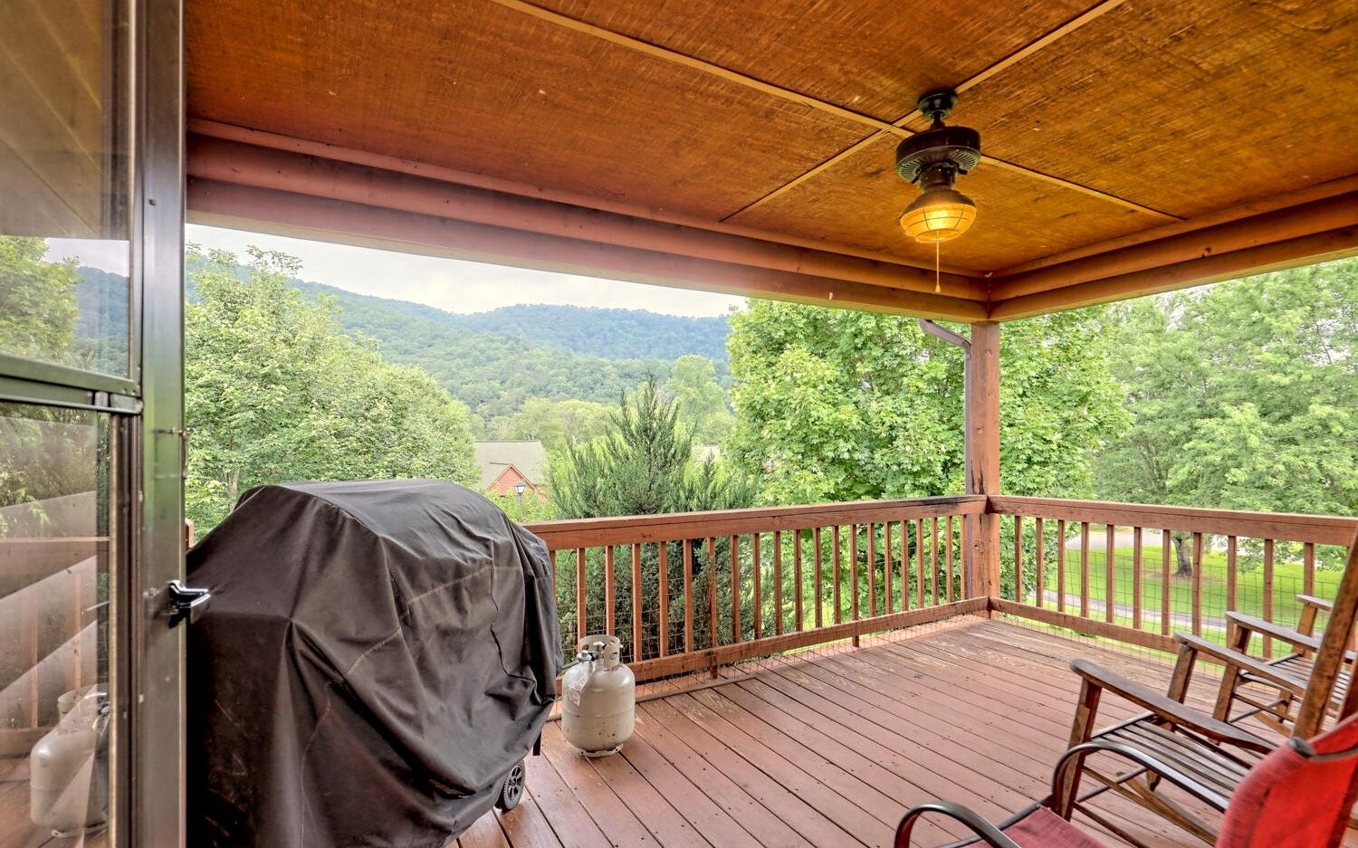 Cabin in the Mountains? Look no further. Enjoy year round mountain views from this well maintained and spacious home. Main level offers carport parking, an open floor plan, with a large rock fireplace, eat in kitchen and dining, master suite with private walk out porch, also walk out porch from dining area, laundry is on the main for easy access. Upstairs offers 2 large bedrooms and bath. Downstairs offers a kitchenette, large living room/ game room along with a media room that can be additional sleeping space. Exterior offers a large patio, common area green space along with the community pool, club house, river access for fishing, tubing, and other water activities. Perfect for a mountain getaway or can be used as a vacation rental. Don't miss out!