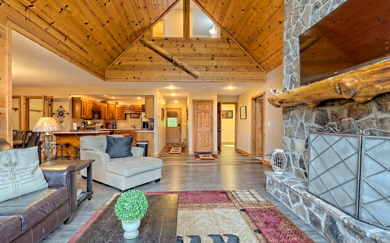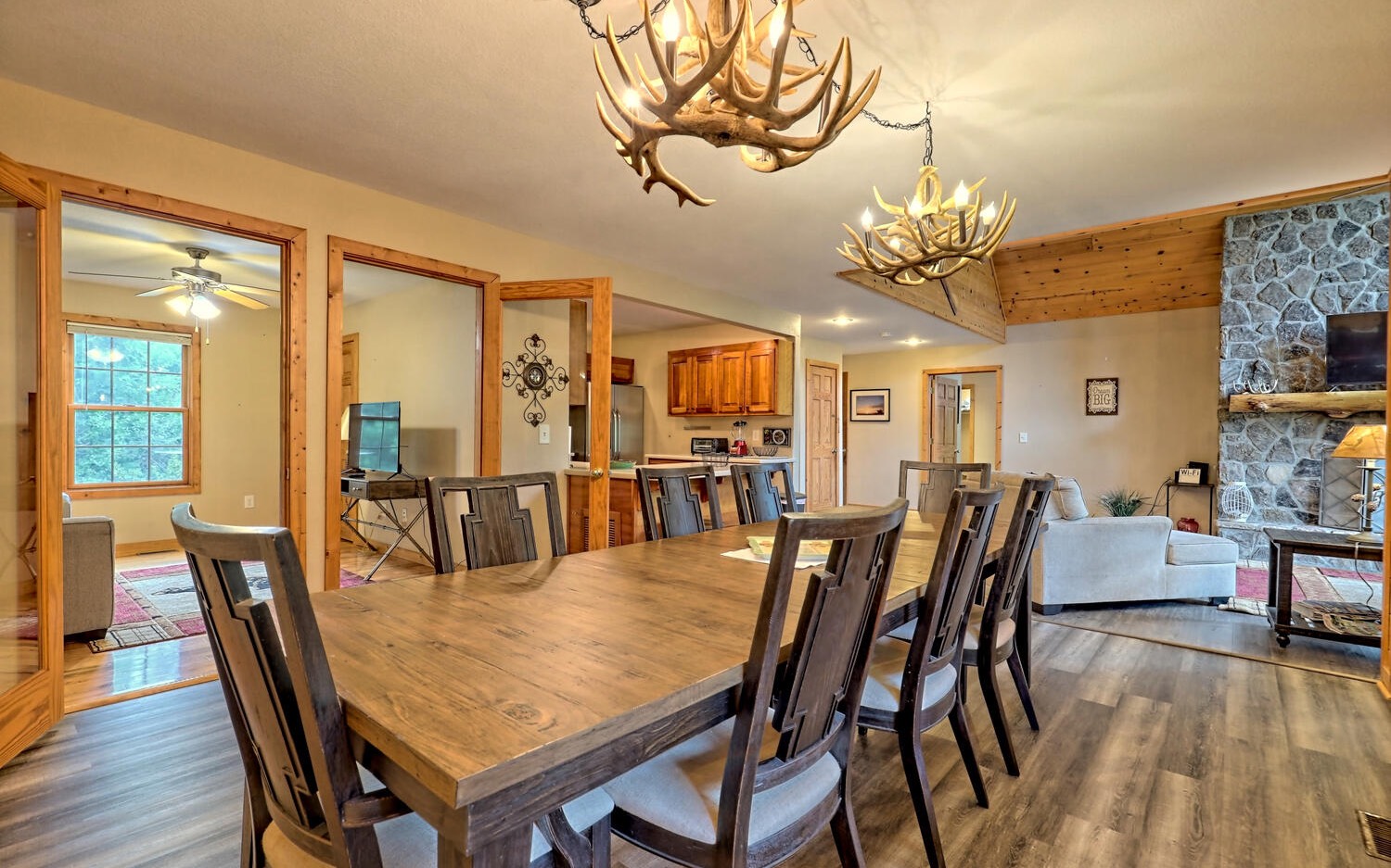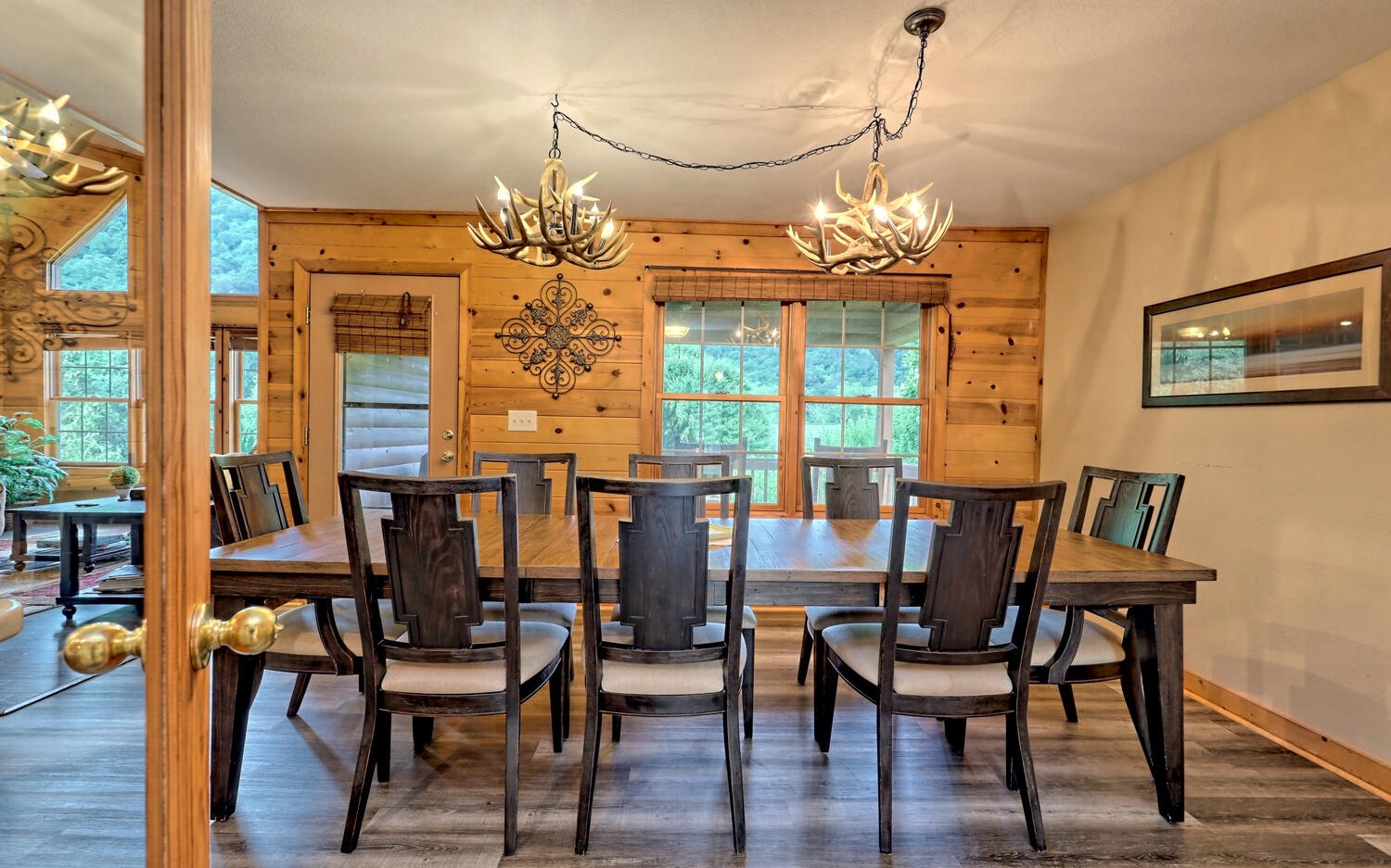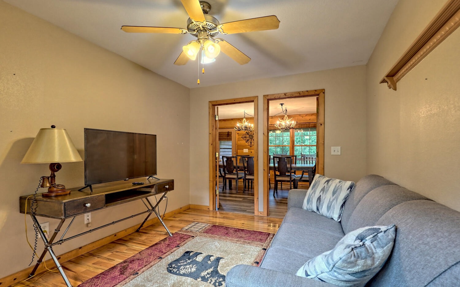 Cabin in the Mountains? Look no further. Enjoy year round mountain views from this well maintained and spacious home. Main level offers carport parking, an open floor plan, with a large rock fireplace, eat in kitchen and dining, master suite with private walk out porch, also walk out porch from dining area, laundry is on the main for easy access. Upstairs offers 2 large bedrooms and bath. Downstairs offers a kitchenette, large living room/ game room along with a media room that can be additional sleeping space. Exterior offers a large patio, common area green space along with the community pool, club house, river access for fishing, tubing, and other water activities. Perfect for a mountain getaway or can be used as a vacation rental. Don't miss out!