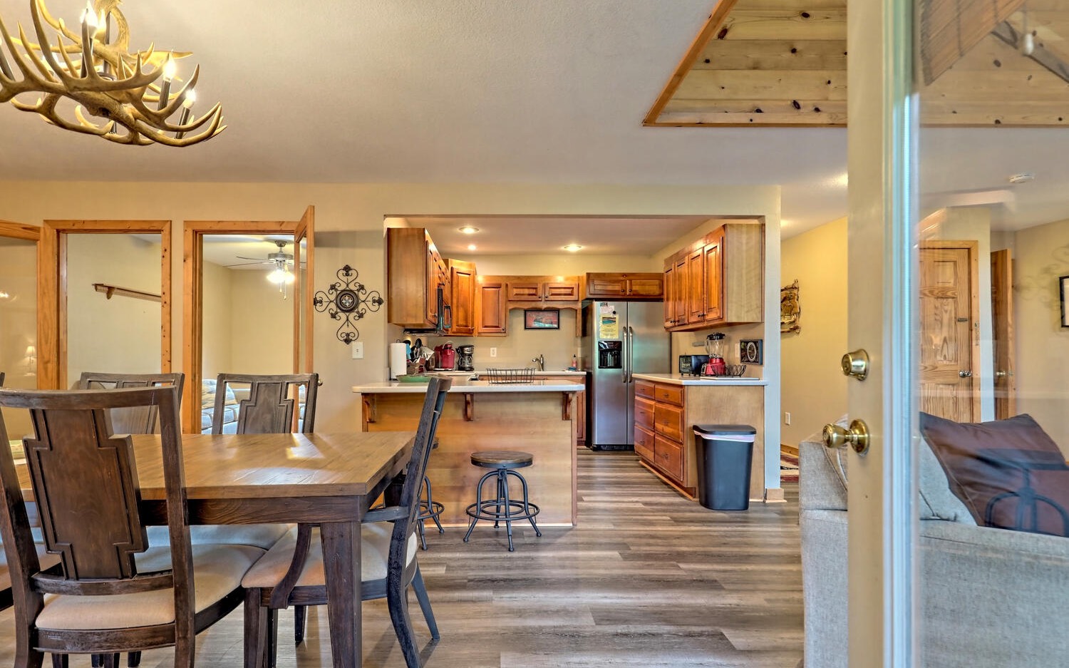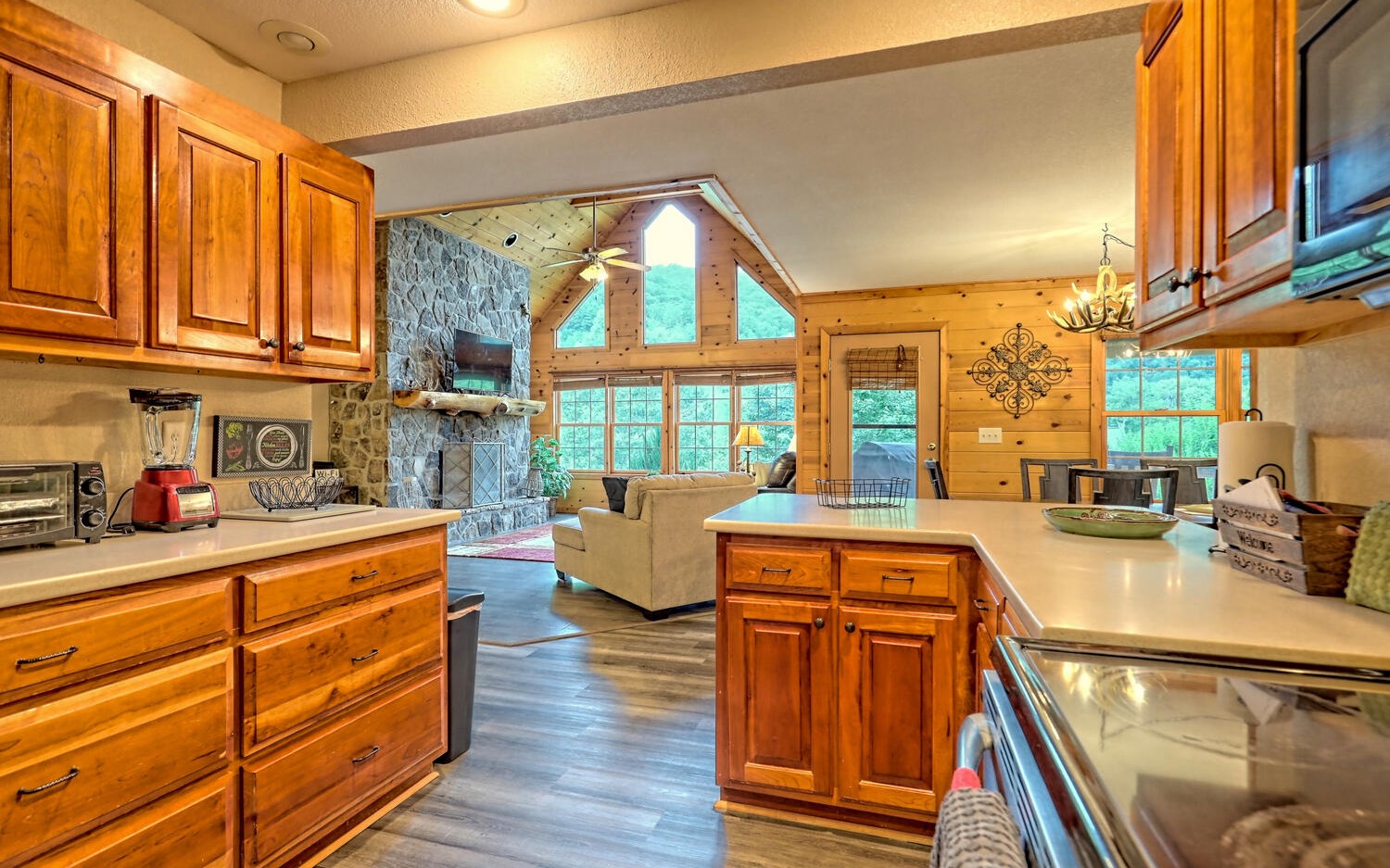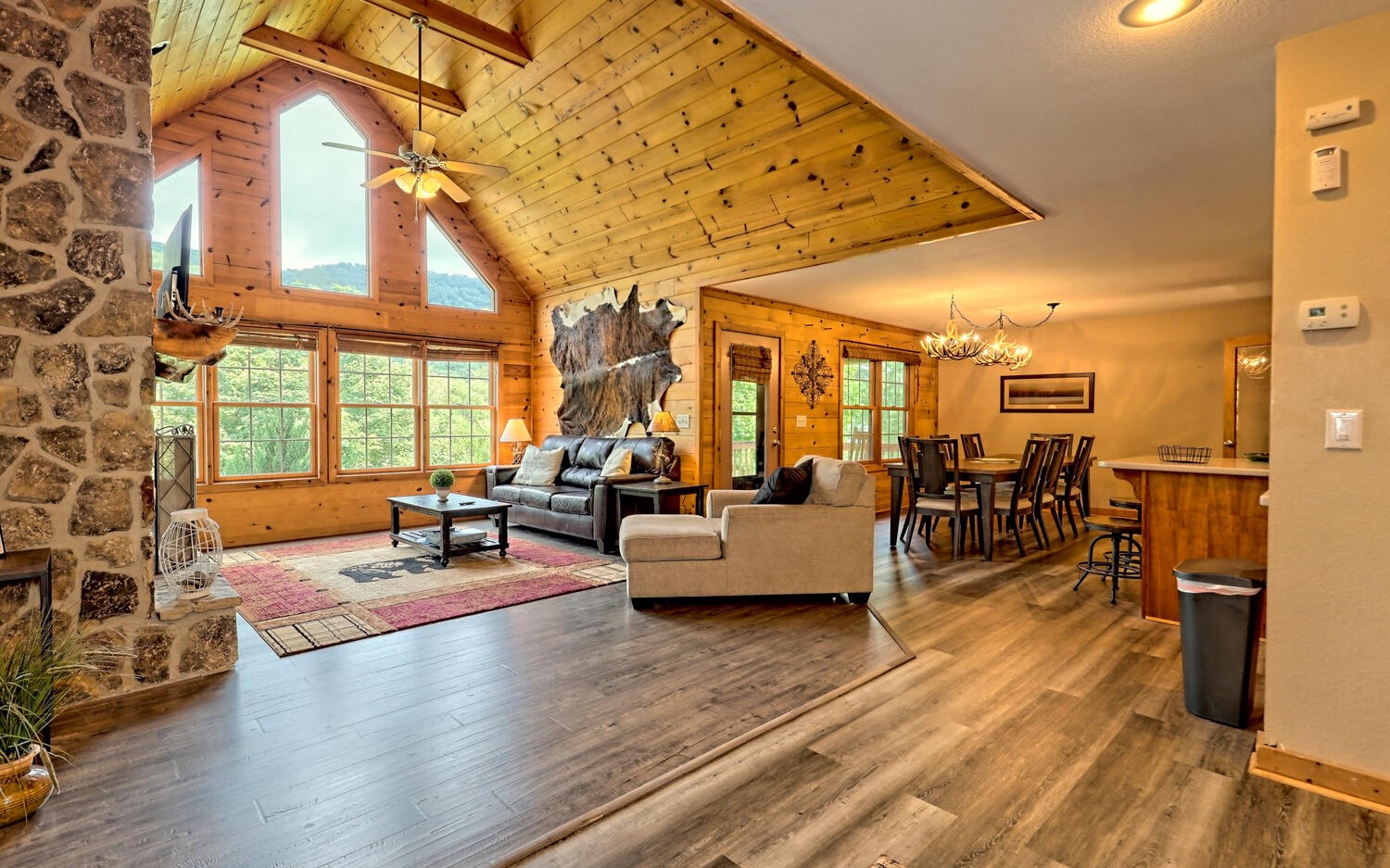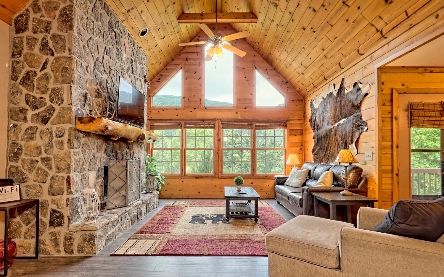 Cabin in the Mountains? Look no further. Enjoy year round mountain views from this well maintained and spacious home. Main level offers carport parking, an open floor plan, with a large rock fireplace, eat in kitchen and dining, master suite with private walk out porch, also walk out porch from dining area, laundry is on the main for easy access. Upstairs offers 2 large bedrooms and bath. Downstairs offers a kitchenette, large living room/ game room along with a media room that can be additional sleeping space. Exterior offers a large patio, common area green space along with the community pool, club house, river access for fishing, tubing, and other water activities. Perfect for a mountain getaway or can be used as a vacation rental. Don't miss out!