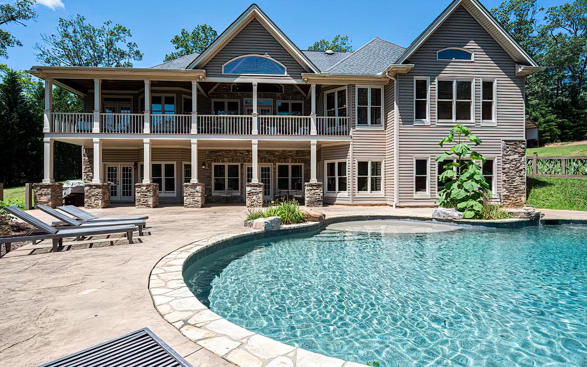 Recent Price Improvement! Sellers also willing to contribute to a buyer's 2-1 buydown. This exquisite property sprawls across 3.11 acres and is nestled at the end of a quaint paved road minutes from downtown Blue Ridge. The expansive home serves as a perfect backdrop to the gunite artistic saltwater pool, rocked waterfall, and jacuzzi. Step inside to a plethora of upgrades showcasing fine craftsmanship. Kitchen is a chef's dream, boasting granite countertops, custom cabinets, an eat-in kitchen with formal dining room also available. Entertain in the great room or den, both featuring soaring ceilings and rocked fireplaces. Primary suite boasts sitting area, double closets, jetted tub, double sinks, and large tiled shower. Other features include detached 3 car garage with unfinished space above, 2 car garage attached to home, and an unfinished basement stubbed for 2 bathrooms and bedrooms.