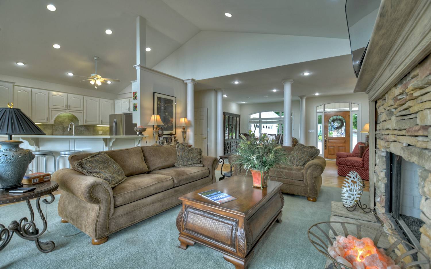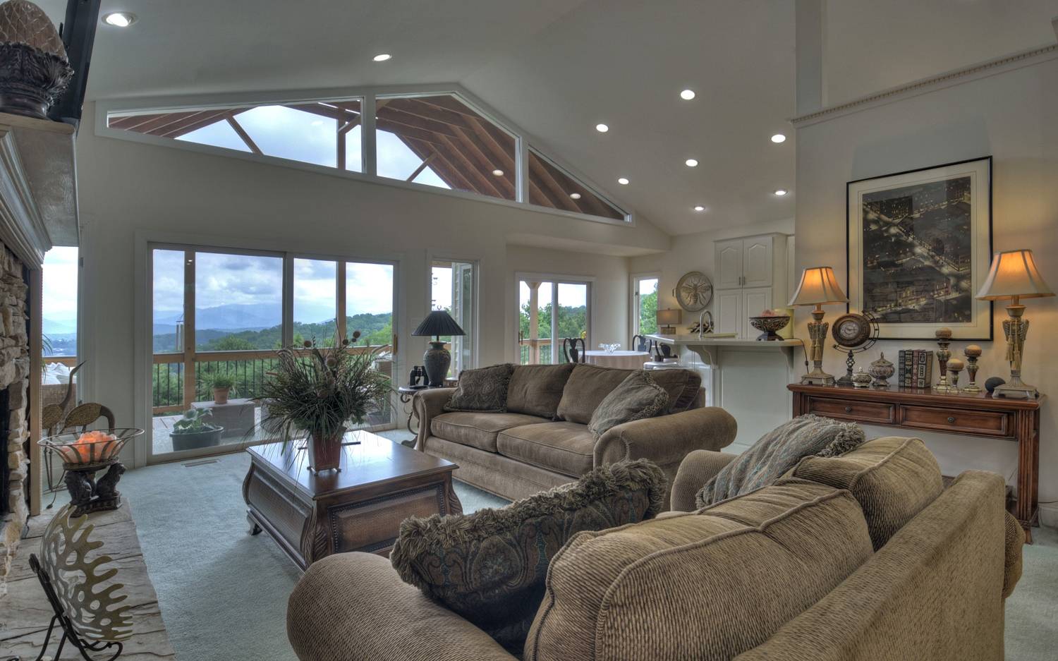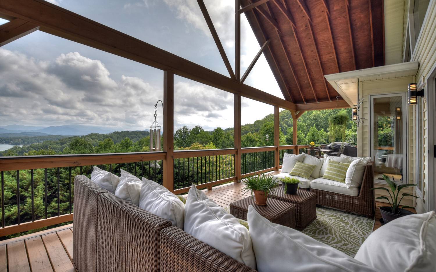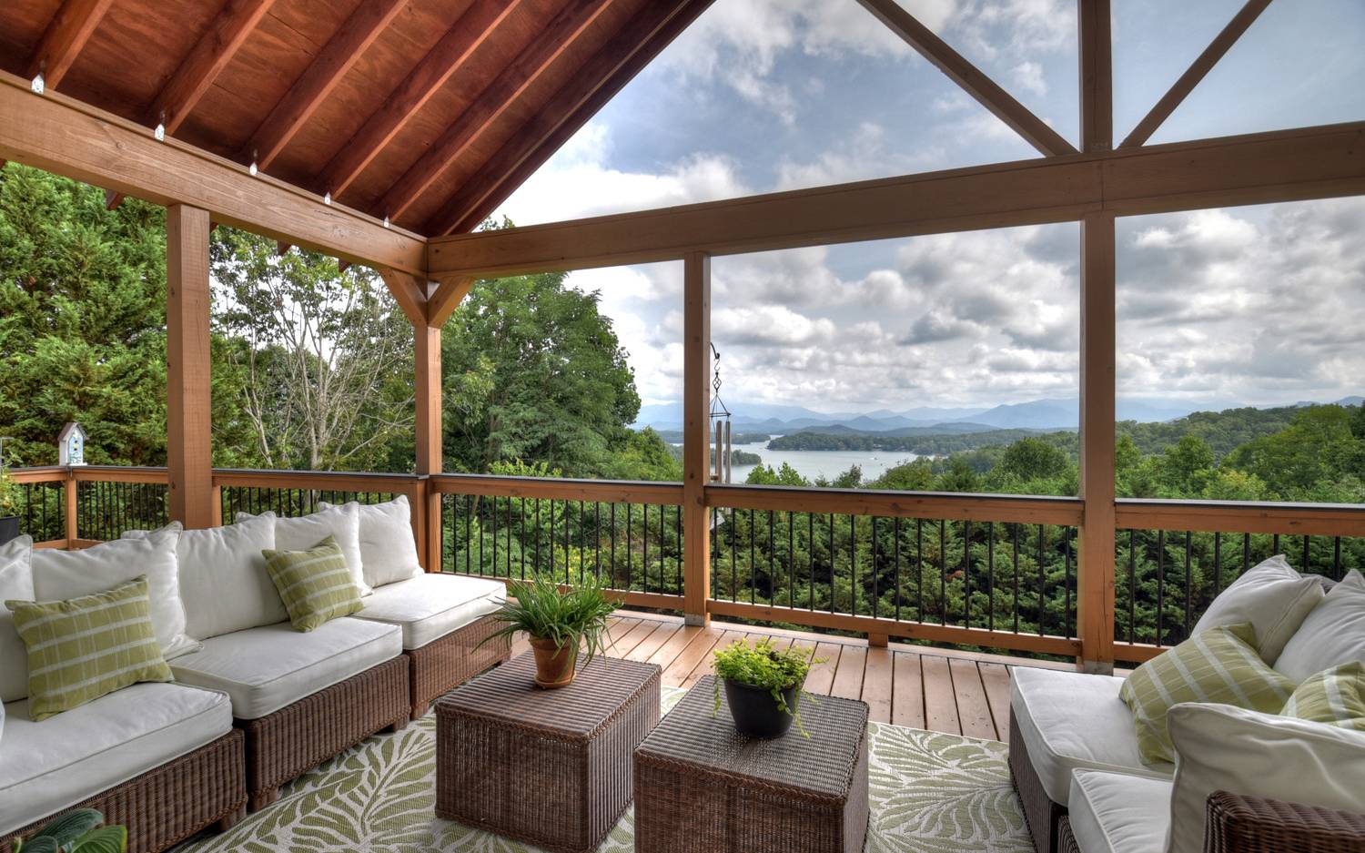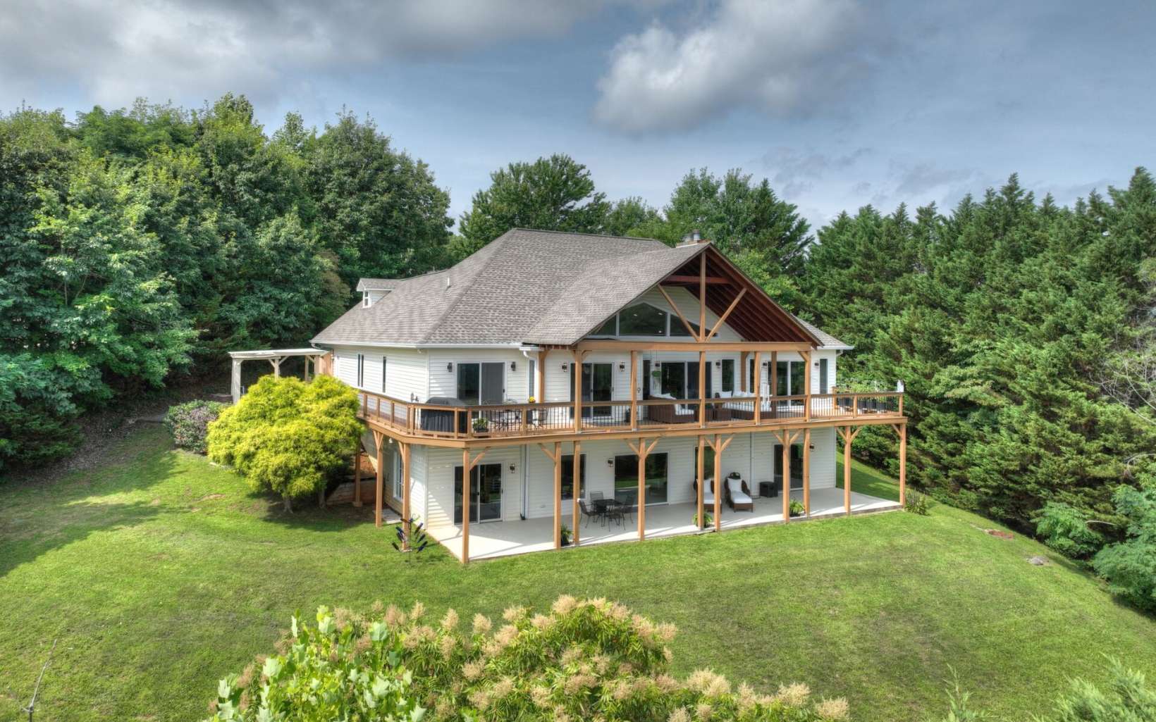 Imagine yourself in a peaceful, private setting looking out over beautiful Lake Chatuge, past the mountains of North Georgia, to ridges & ranges of mountains 19 miles away, rising over 5000 feet in North Carolina. Now imagine that view is from almost every room in your 4,704 sq. ft., 5 bedroom, 4 bath home. Make that daydream a reality! The perfect full-time family residence, seasonal home, or weekend getaway, a world away from the hustle and bustle, yet convenient; mere minutes to shopping, groceries, pharmacies, medical and emergency care, schools, golf, entertainment, restaurants, vineyards, and resorts. Located at the end of a very private, paved, tree-lined road (only two other houses), as soon as you enter the circular driveway, a bubbling fountain at its center, you realize you have arrived. Whether entering through the leaded glass front door or driving into the roomy two car garage, you can see straight through the house to the water and mountains beyond. Believe me, the view never gets old. It’s easy main level living inside, beyond the open foyer and gleaming hardwoods is a living room with vaulted ceiling and stacked stone gas log fireplace, adjacent dining room, kitchen with solid surface countertops, stainless steel appliances, breakfast bar and breakfast nook with a built-in kitchen desk. Nearby is a walk-in pantry, laundry, half-bath and garage access. On one side of the main living area is the huge primary bedroom, en suite with his and hers walk-in close