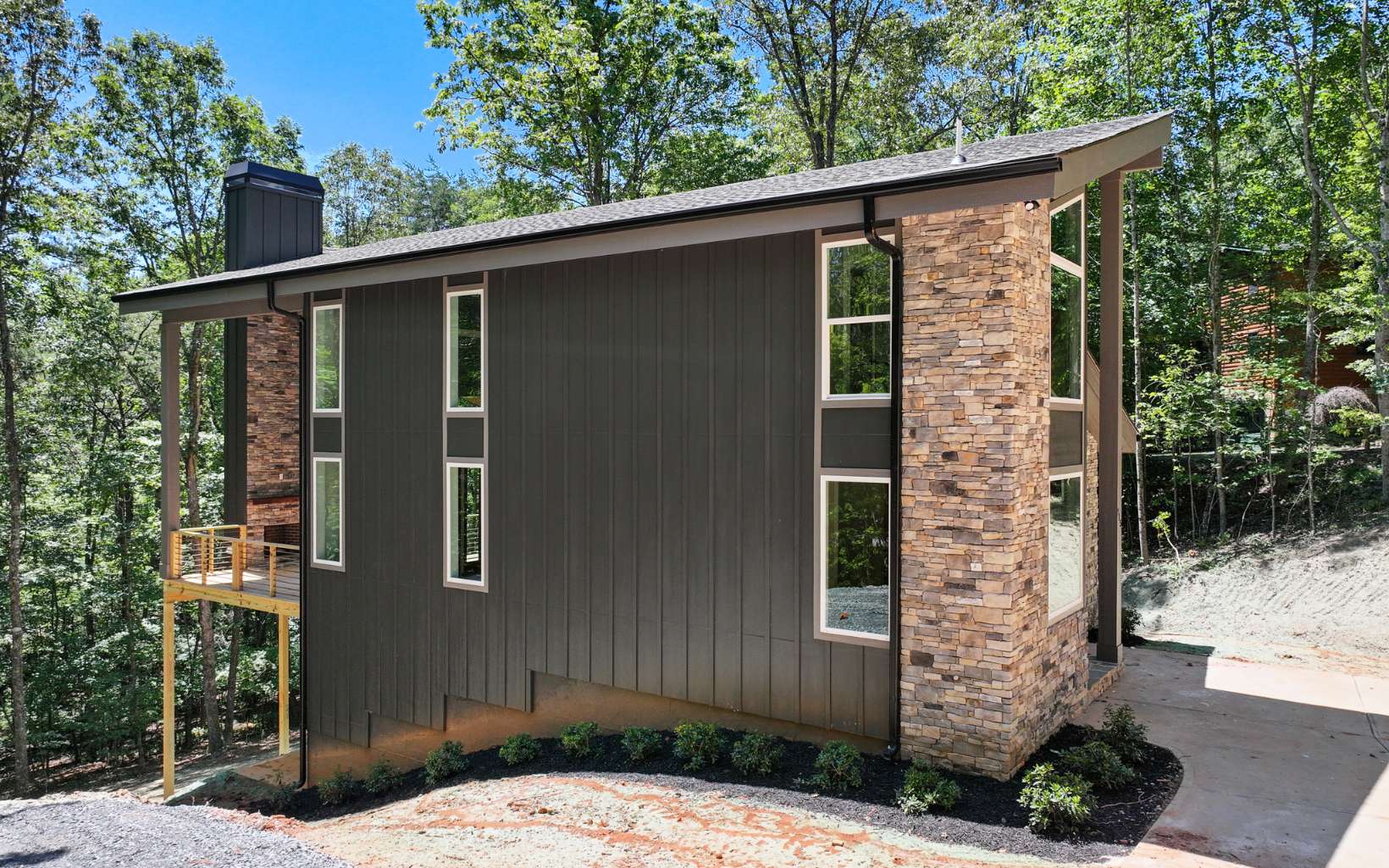 Nestled in the heart of the Aska Adventure area in Blue Ridge, this MODERN MOUNTAIN LUXURY home offers a serene escape on 2.15 acres and in a picturesque CREEKFRONT setting of over 565' of creek frontage!! With 4 spacious bedrooms, 3 full custom tiled baths and powder room on main level, the interior boasts of high-end amenities with an open floor plan featuring a spacious gourmet kitchen, custom cabinetry, oversized island for additional eating area and stainless steel appliances; greatroom is complete with floor-to-ceiling fireplace and easy access to step outside onto the spacious deck to listen to the sounds of the noisy creek; owners suite on main level with 2nd owner's suite upstairs, finished terrace level complete w/fireplace, wet-bar and additional guest rooms; lower level deck perfect to unwind in a private hot tub under the stars. Within minutes to kayaking & tubing the Toccoa River or boating in Lake Blue Ridge or hiking in the National Forest, super convenient to all outdoor amenities!! Under construction now and will be ready to enjoy the Fall season in the mountains!! Room for garage to be built as well!