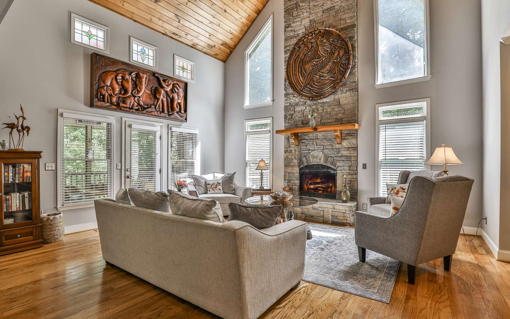 This property is a rare gem in Walnut Mountain, offering 2 lots and a spacious 3 bedroom craftsman home with 2 screened in porches, 2 large deck and lots of storage. The owner's suite is located upstairs with a loft coffee nook, enormous bath area and the private balcony gives seasonal mountain views. (If desired the view could easily be opened up) Imagine a sunrise from this cozy retreat. The main floor boasts a chef's kitchen, , with high-end appliances and granite countertops. The kitchen opens to a cozy breakfast area, screened in porch and a living room with a stack stone fireplace. The terrace level which is the only cabin feature in this home, features a recreation room with built in cabinetry, an office and a full bathroom. This home is perfect for entertaining guests or relaxing in nature. With a newer metal roof, generator, it is obvious this is a well kept home. You will love the amenities in Walnut Mountain such as the pool, the tennis courts, trails and places to enjoy the multiple lakes .