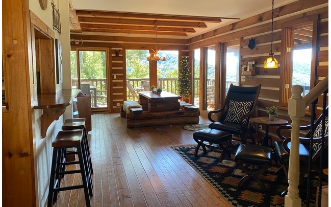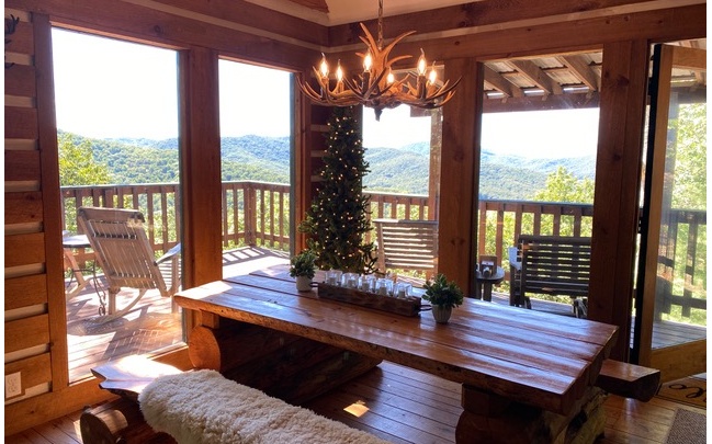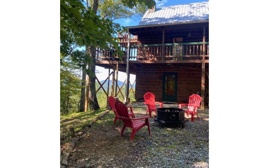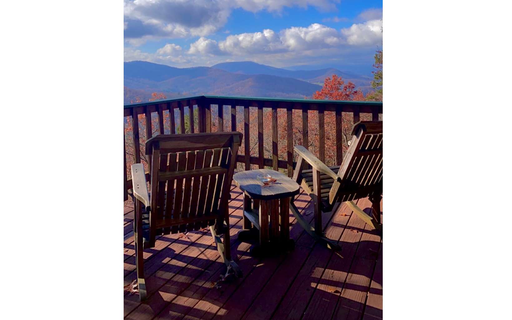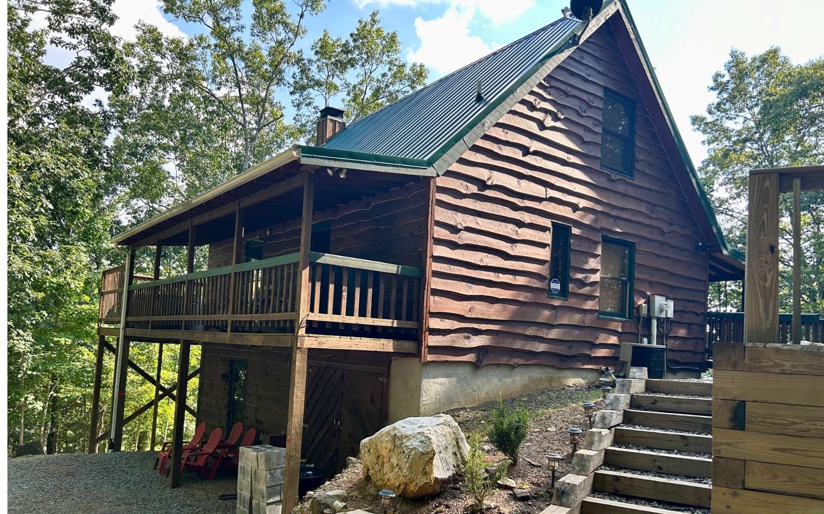 The adventure of a lifetime awaits as this cozy mountain top cabin, sitting on 1.55 beautiful acres, will welcome you home to spectacular, long range layered mountain views at almost 2700 feet of elevation in the quiet seclusion of the Enchanting Forest. Step onto the porch and open the door to enjoy the picturesque mountains through a wall of glass. This turn-key cabin, on a very successful rental program, shows off a great room boasting rustic leather furniture, exposed wooden beams, bar top work station, cozy dedicated sitting area to recharge & catch up on social media or enjoy your favorite spirit, stacked stone wood burning fireplace & doors that open to surrounding porches & decks. Recently updated and fully equipped kitchen w/new stainless steel appliances. Guest bath on main level off the kitchen/living room. Upstairs has private King bedroom suite, full bath, sitting area & a beautiful exterior deck to enjoy the morning sunrise & evening sunset! Enjoy the spacious hot tub from the deck overlooking huge mountain range views and USFS Chattahoochee-Oconee National Forest lands! Terrace level boasts a recreation room w/electric heat fireplace, queen bedroom, queen size sleeper sofa, washer/dryer & full bath, with walk out to enjoy a cozy fire pit area on cool mountain evenings. New metal roof installed Spring 2023. Fine dining, wineries, breweries, walking trails, waterfalls, Aska Adventure Area, Toccoa River fishing, kayaking and tubing only a few minutes away!