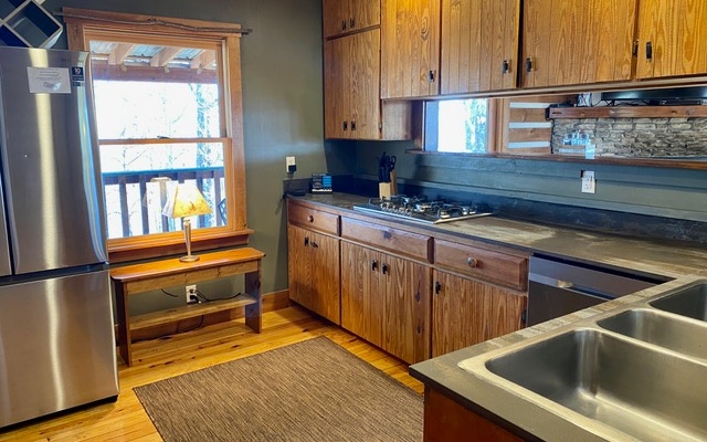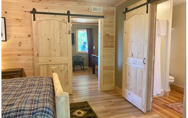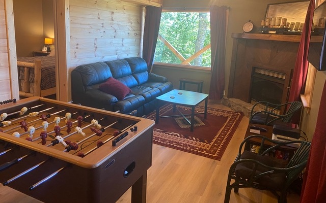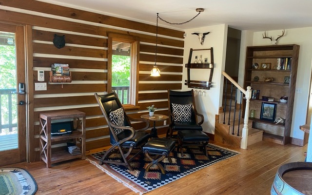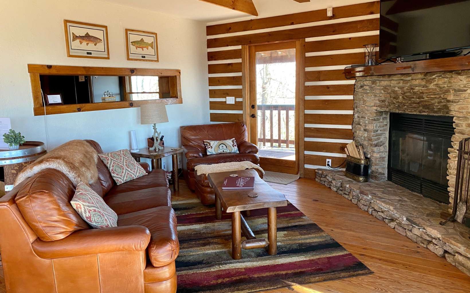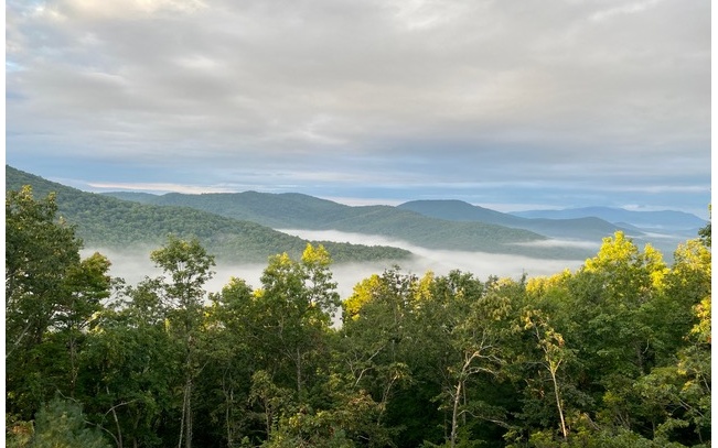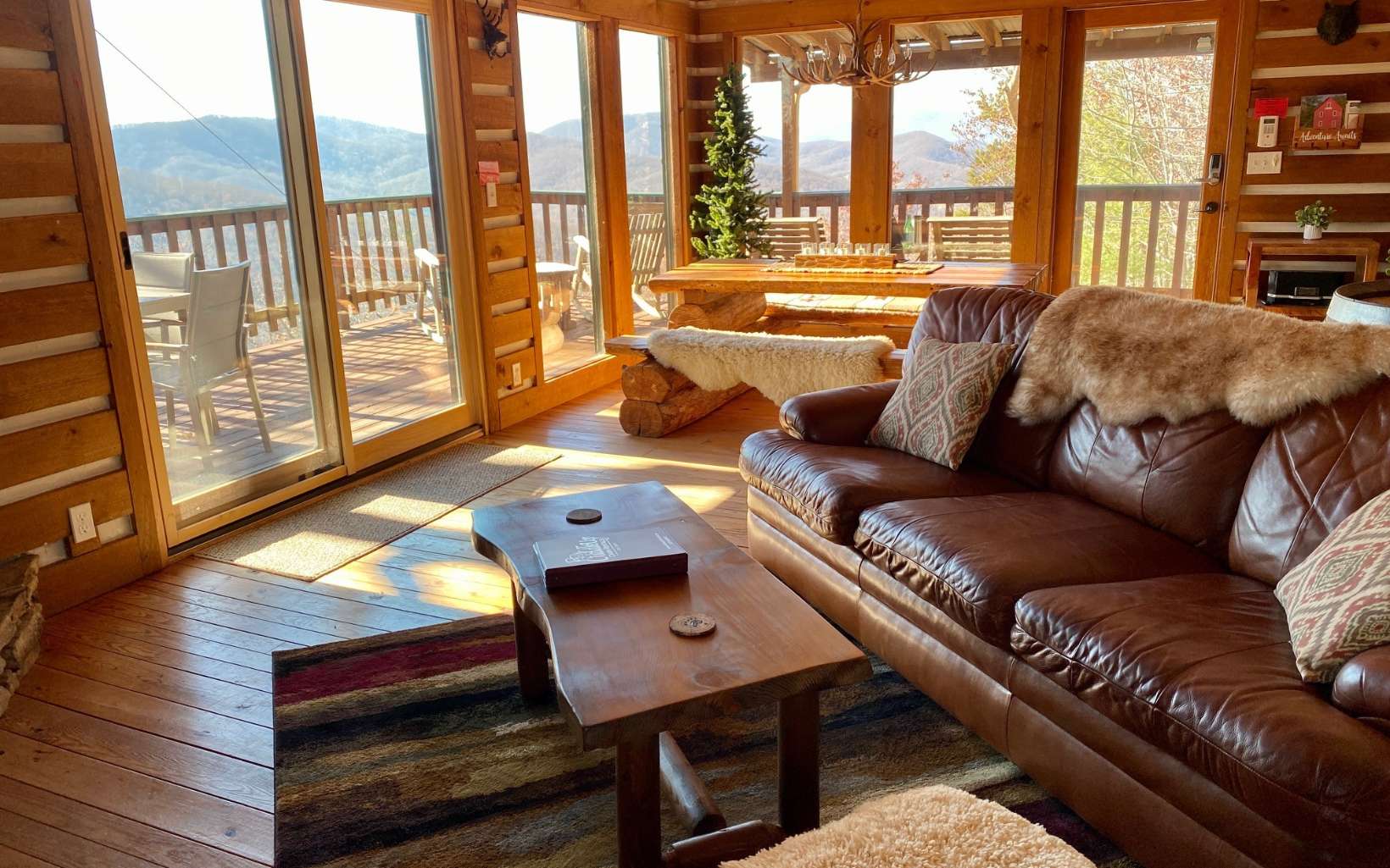 The adventure of a lifetime awaits as this cozy mountain top cabin, sitting on 1.55 beautiful acres, will welcome you home to spectacular, long range layered mountain views at almost 2700 feet of elevation in the quiet seclusion of the Enchanting Forest. Step onto the porch and open the door to enjoy the picturesque mountains through a wall of glass. This turn-key cabin, on a very successful rental program, shows off a great room boasting rustic leather furniture, exposed wooden beams, bar top work station, cozy dedicated sitting area to recharge & catch up on social media or enjoy your favorite spirit, stacked stone wood burning fireplace & doors that open to surrounding porches & decks. Recently updated and fully equipped kitchen w/new stainless steel appliances. Guest bath on main level off the kitchen/living room. Upstairs has private King bedroom suite, full bath, sitting area & a beautiful exterior deck to enjoy the morning sunrise & evening sunset! Enjoy the spacious hot tub from the deck overlooking huge mountain range views and USFS Chattahoochee-Oconee National Forest lands! Terrace level boasts a recreation room w/electric heat fireplace, queen bedroom, queen size sleeper sofa, washer/dryer & full bath, with walk out to enjoy a cozy fire pit area on cool mountain evenings. New metal roof installed Spring 2023. Fine dining, wineries, breweries, walking trails, waterfalls, Aska Adventure Area, Toccoa River fishing, kayaking and tubing only a few minutes away!