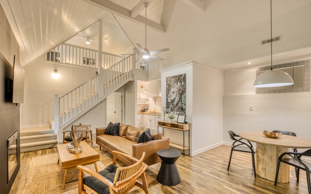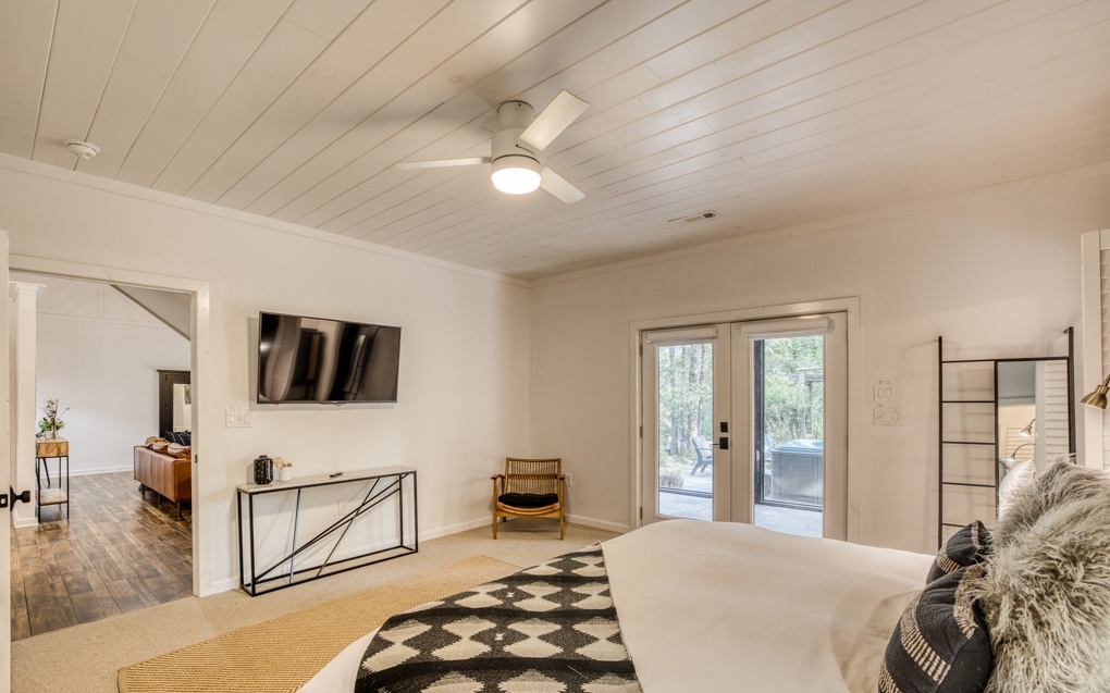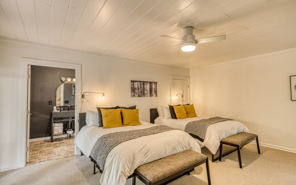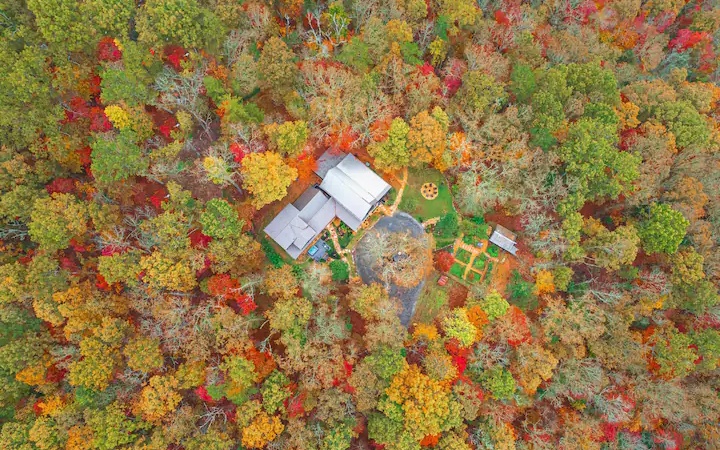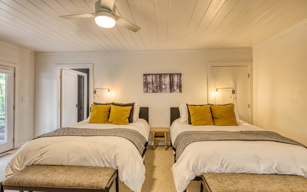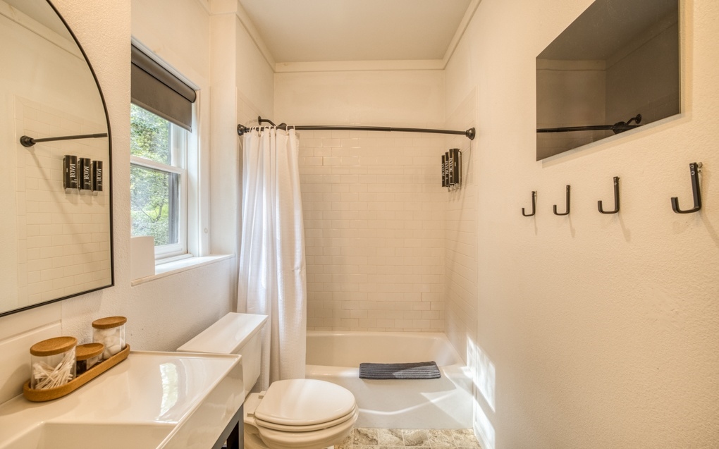 Escape the hustle and bustle of the city and discover the ultimate forest sanctuary meticulously crafted by the superhosts behind Njem Haus in Fredericksburg, TX. In collaboration with Kathryn from @GetawayTX, we proudly present Njem Retreat – an enchanting, fully furnished haven nestled amidst the serene Blue Ridge Mountains. This remarkable retreat invites you and your visitors to experience a rejuvenating escape from the ordinary. Three separate cabins, thoughtfully arranged around a charming courtyard, provide the ideal setting for intimate gatherings and shared adventures. Accommodating up to 14 guests, Njem Retreat spoils you with luxurious bamboo mattress pads, indulgent 680 thread count cotton sheets, and plush comforters on each bed, 3 king sized and 4 queen sized. With two fully-equipped kitchens, convenience meets comfort as you prepare culinary delights. Elevate your dining experience on the second floor surrounded by sweeping views. Unwind in the inviting hot tub, venture into the garden, or journey through time in the arcade room, boasting an original 80s PacMan machine featuring 60 games. With easy access to the Toccoa River within walking distance, fishing enthusiasts can cast a line and reel in their dreams. And a hidden gem awaits you – an exclusive bathhouse featuring a freestanding clawfoot tub. Immerse yourself in a world of relaxation as you bask in a bubble bath, surrounded by breathtaking views of sunlight filtering through the forest canopy.