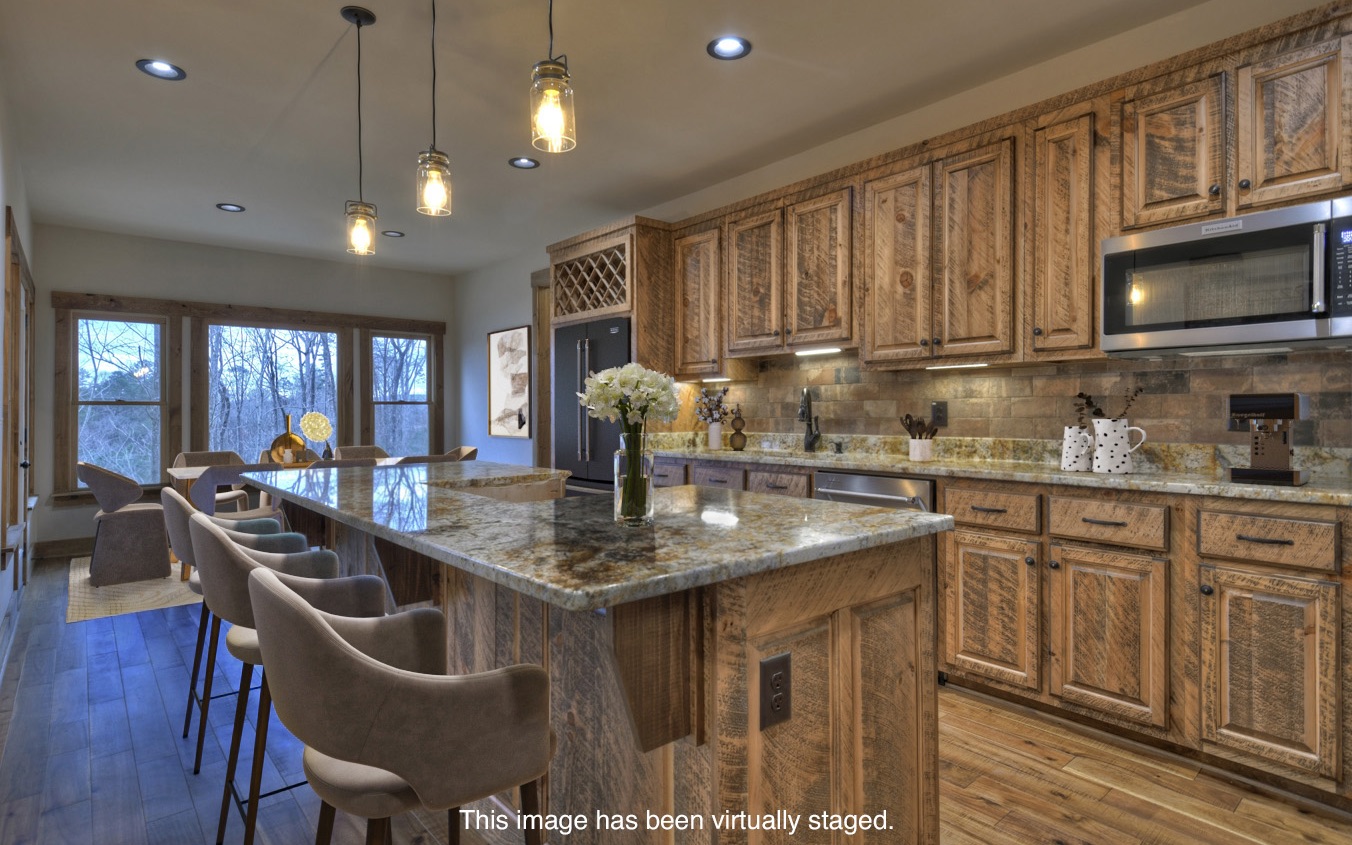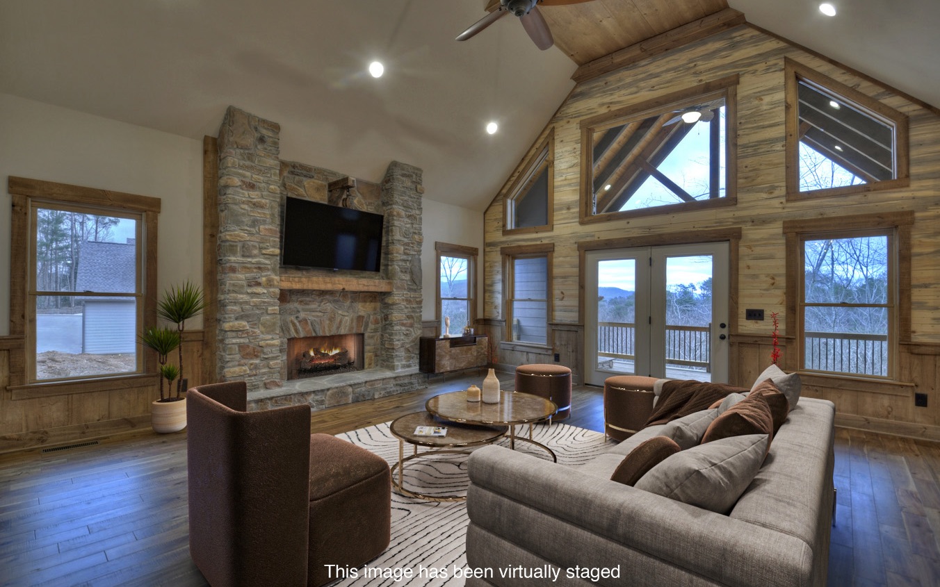 Brand NEW Modern Rustic Home - Move-In Ready! Best MOUNTAIN VIEWS in "The Summit of Ellijay", highly desired new community just 1.5 miles from Historic Downtown Ellijay. Beautifully crafted home features modern rustic design with Old World architectural details throughout. This home boasts incredible sunrises & long range views! Featuring 3BR/2.5BA plus a finished bonus room. Soaring cathedral ceiling, locally handcrafted cabinets, exotic granite countertops, SS appliances, walk-in pantry & more. Luxury master suite on main w/real slate bathroom floors & slate tile shower, plus a soaking tub w/a VIEW! Two beautifully detailed (wood burning) stone fireplaces, including exterior fireplace on covered porch. Basement can be finished to make this a 5BR home. 2 car garage, all paved roads; public utilities, natural gas, fiber internet & community pool. STR's are allowed.