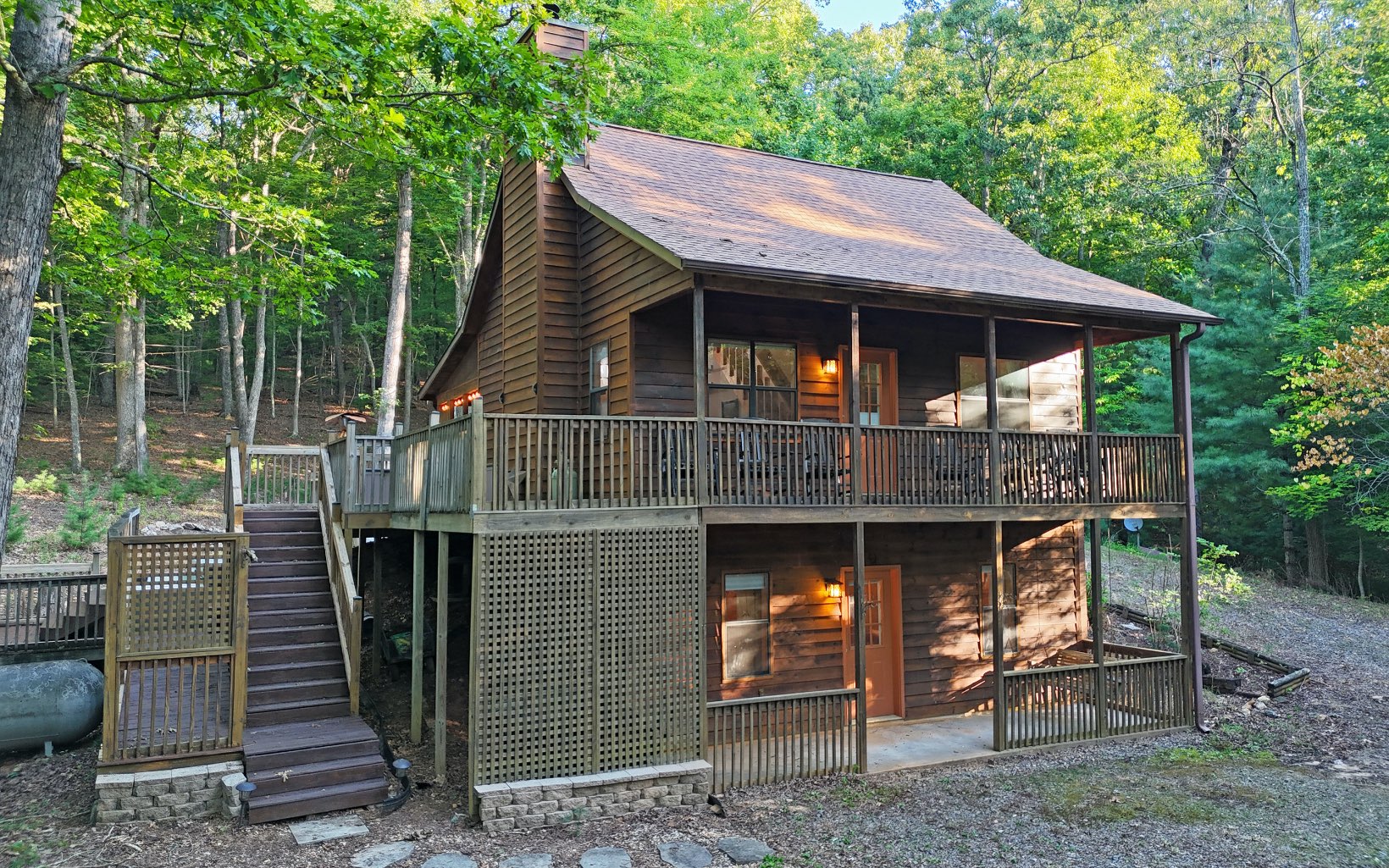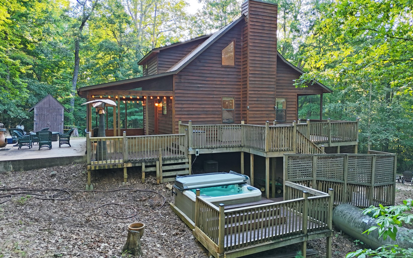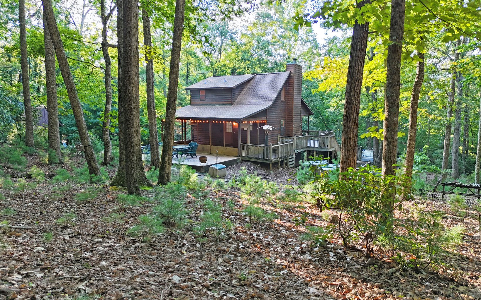 NINE ACRES COMES WITH THIS MOUNTAIN CABIN IN THE WOODS WITH COMPLETE PRIVACY! This 3 bedroom, three bath cabin with large loft that has its own walk in closet and bath can be yours at this great price. Seller says there is a great mountain view from the upper part of the property. Nice fireplace inside for those winter nights and on cooler fall and spring nights, enjoy the outdoor hot tub or firepit. Lower level offers bedroom, bath, and large den. Even though property doesn’t border the 87,000 acres of National Forest Land, it is only one lot over so you get the benefit of seeing the mountain wildlife daily and hiking trails not too far. Back porch is ready to screen or enclose for year round living. This home is a great mountain cabin for you to get away from the hustle and bustle of city living. It really does take you back in time but with modern conveniences.