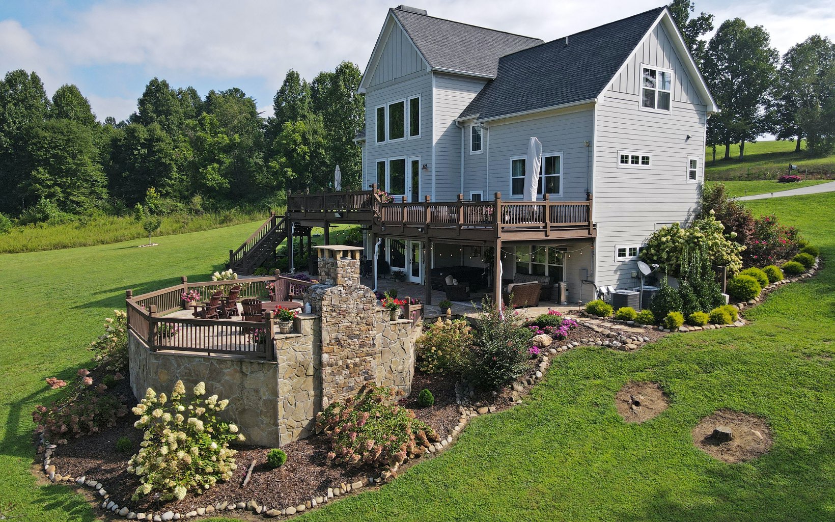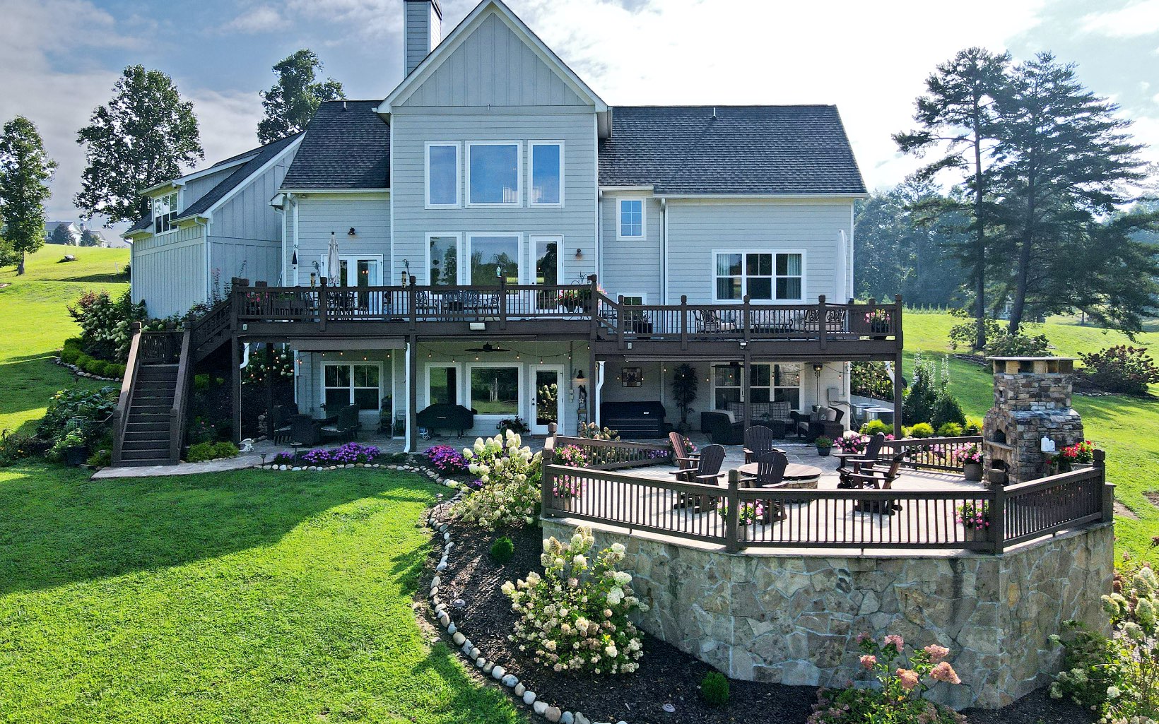 HOW MANY TIMES CAN YOU SAY “WOW” STARTING AT THE DRIVEWAY? Beautifully landscaped 3.3 acres w/branch. This 4 BR,4.5 bath home is truly magnificent. Located in the gated Owen Glen just six miles from town & has access to the clubhouse, community pool, & tennis/pickle ball court. Privately owned golf course located within the gates. Main floor living with great room with wall of windows to look out on your beautiful acreage, kitchen, laundry/mud room w/utility sink, half bath & master bedroom with en-suite bath. Upstairs features loft, 2 bedrooms with en-suite baths & huge bonus room. Lower level has large play room/den, bedroom with its own bath. THEN THE FUN PART. Wonderful outdoor living w/ decks & a rock terrace with a pizza oven fireplace & fire pit. Great entertaining home or just enjoy the peace & quiet of mountain living. Pictures couldn't capture the beauty of this home.