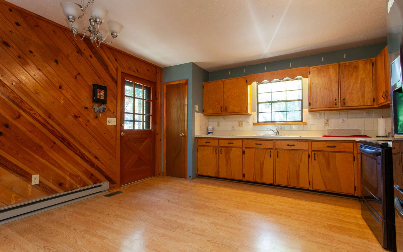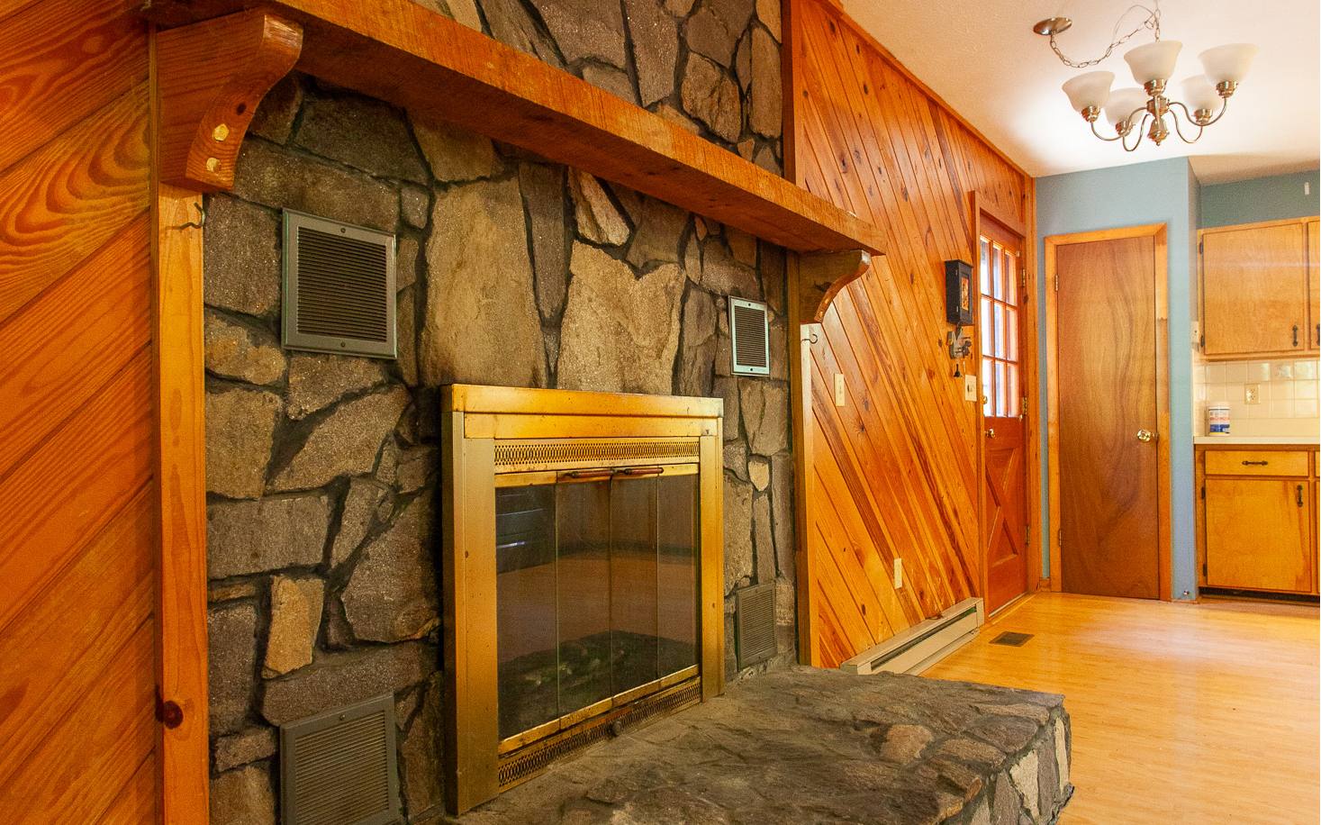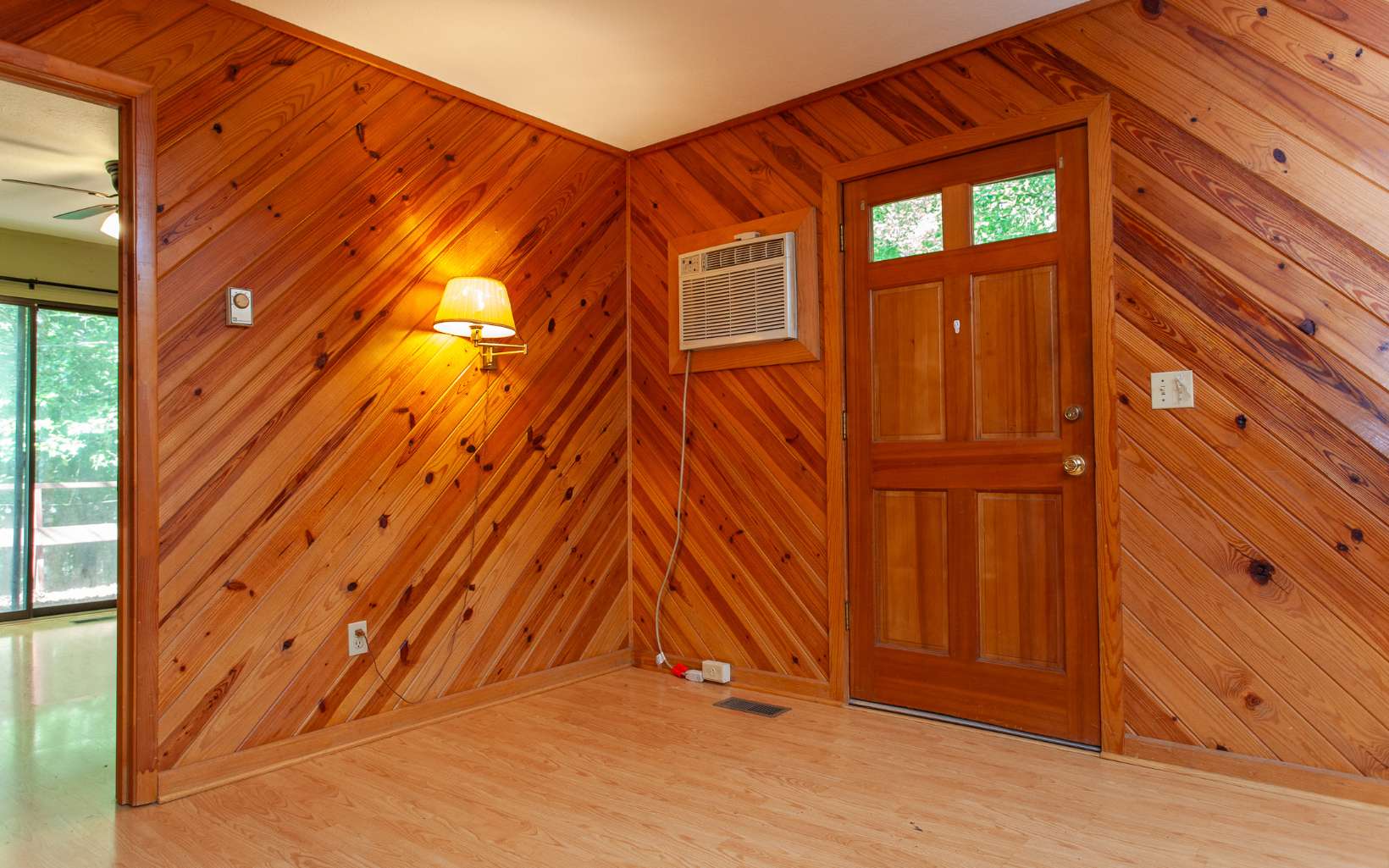 FIBER OPTIC INTERNET, NEW APPLIANCES, & close proximity to town! Warmly rustic exterior, private wooded setting, full-length deck wraps around two sides, storage building for tools, and oversized enclosed carport (would make a great guest house) are only part of the multiple options here! Gardener’s paradise with room for flowers and plants, and birdwatching made easy with houses in place for feathered friends. Wood walls and accents are striking in the open plan kitchen and adjoining living room with welcoming stone fireplace and hearth. Bedrooms offer sliding door access to the outside; centrally located laundry alcove makes chores a breeze. Come ready with your best decorating ideas and have a ball!