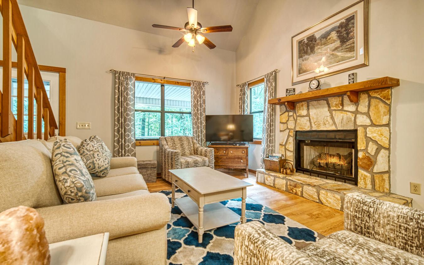 Beautiful property in the North Georgia Mountains joining Chattahoochee National Forest. Each level offers a bedroom, bathroom and living area. This well cared for home is move-in ready and comes fully furnished. Situated in the Helton Creek area, this location is close to Vogel State Park, Helton Creek Falls, AT hiking, trout fishing and many more outdoor activities. The style, location and features of this home work well for full time living or a vacation retreat. Access is asphalt paved and main level entry. Storage is plentiful with large closets, a large laundry room and an outside storage building. Enjoy Mountain life on the large covered front porch, or relax around the outdoor firepit deck.