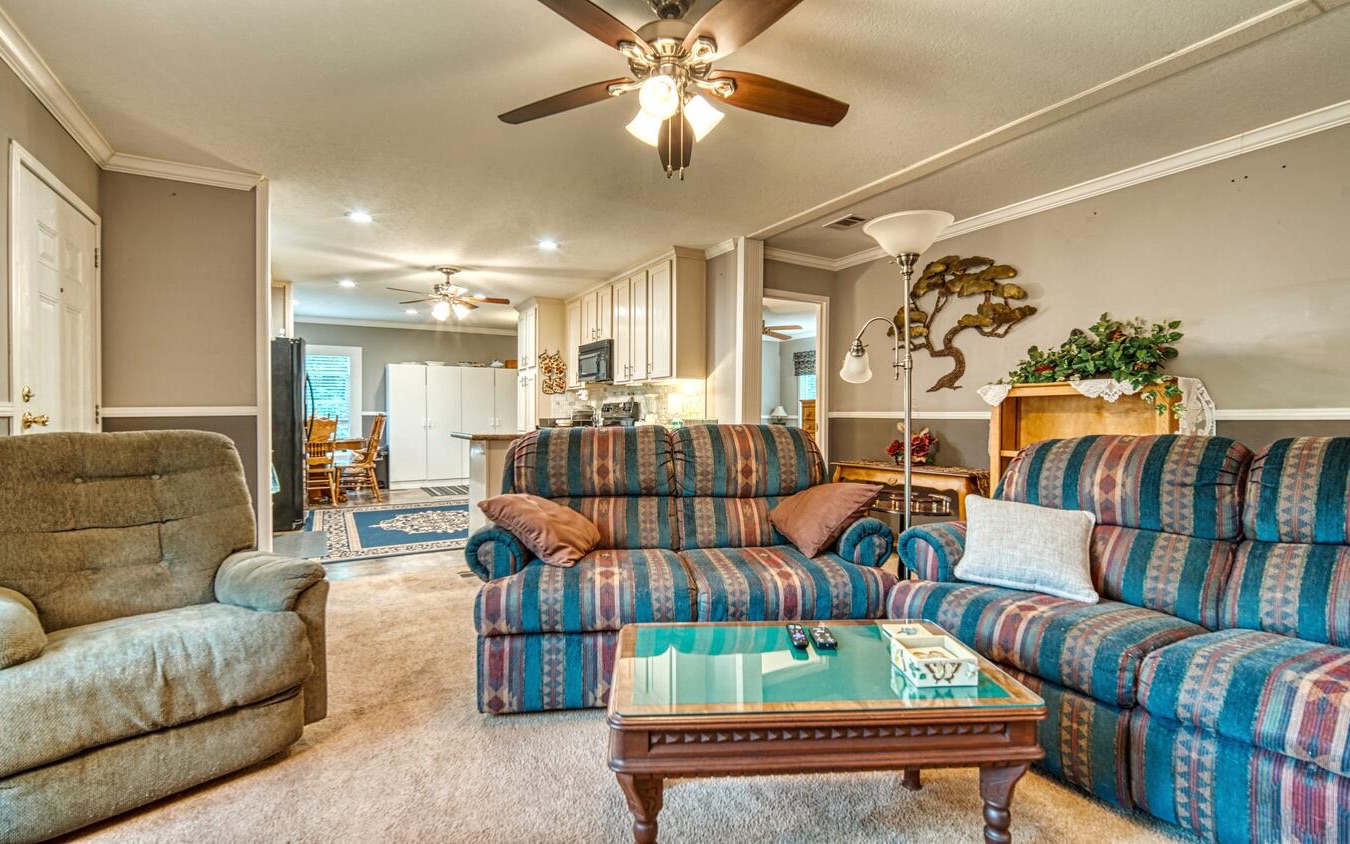 CREEKFRONT!! Well-Loved & Maintained Home on Enchanting Unrestricted 3.4 Acres that backs up to Anderson Creek. Enjoy End-Of-The-Road privacy and one level living with this 3 bedroom, 2 bath home with a spacious kitchen. Home has been upgraded with crown molding and chair rails. Primary bedroom with nice big bathroom (garden tub) and walk-in closet. Home has tons of storage throughout. Furnishings negotiable. Home pet-friendly with fur baby doors. Public utilities & well on property. Wonderful opportunities for outdoor living with this acreage of level usable land backing up to the soothing sounds of the creek.