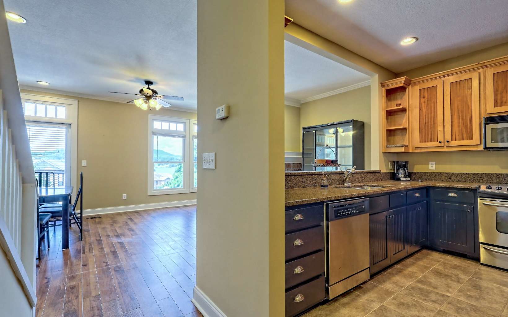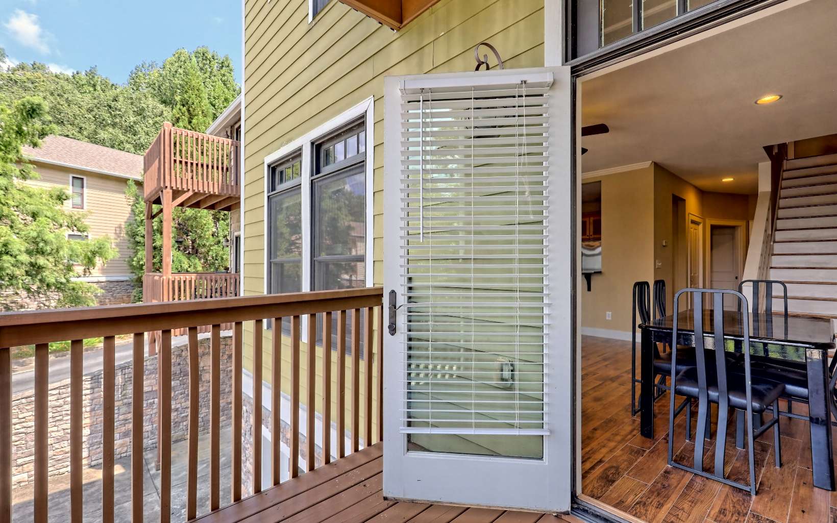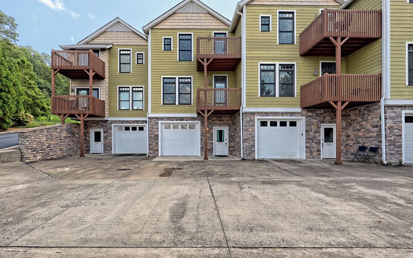 Sunset Bay Townhouse on Lake Chatuge with Deed Boat Slip, 3 Bedrooms, 3 Baths. Amazing lake and mountain views throughout the unit. The ground level has a Single Car Garage with room for 2 cars, mechanical and storage area. The ground level entry and foyer lead upstairs to the open concept living, kitchen and dining complete with balcony, gas fireplace, tall ceilings, and wood floors. The kitchen features granite countertops, wood cabinets, stainless steel appliances, and a bar for counter dining as well as a spacious pantry (plumbed for washer/dryer). The 2nd level is finished with a guest bedroom and bath. The 3rd floor has a laundry room with cabinets for additional storage and folding counter as well as a guest bedroom with private bath and a primary suite. The primary suite has a private balcony, amazing views, walk-in closet, spacious bath with dual sinks, jetted tub, and water closet. Exceptional unit, deeded boat slip, close to everything Hiawassee and Lake Chatuge have to offer. The Sunset Bay community has a Lakeside Pavilion with grilling area, firepit and room for dining with an amazing view of Lake Chatuge.