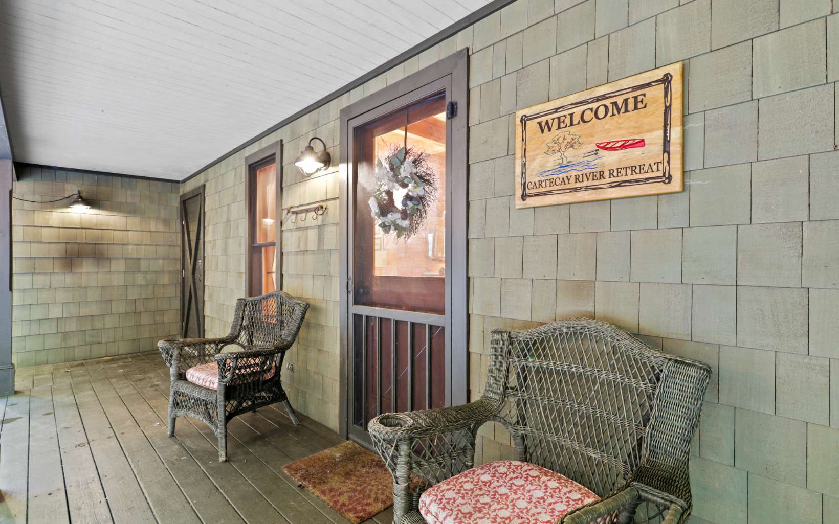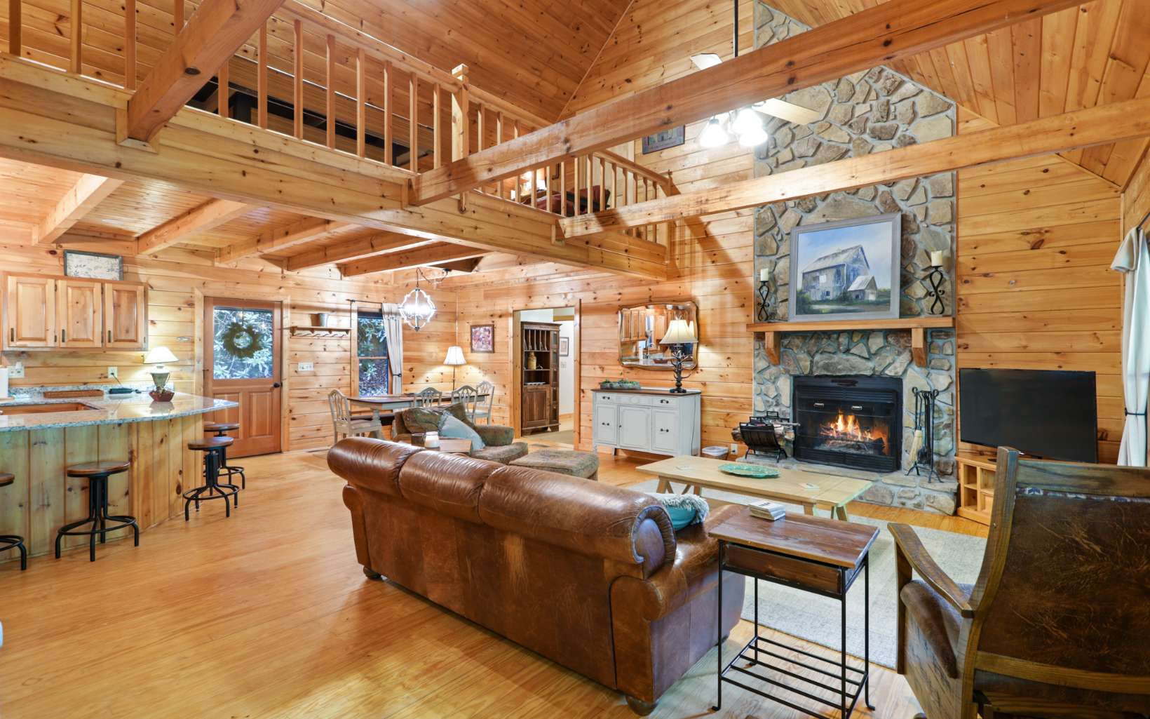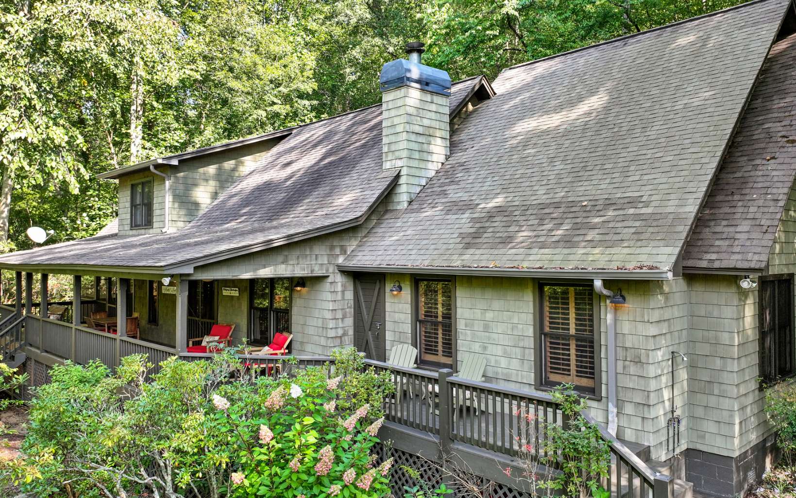 Beautiful Cartecay river front home, sits right on the river bank with long range views up and down the river. You will be mesmerized by the views & sounds of the water cascading over the rocks from the secluded, landscaped backyard. The huge back porch,with swing,spans the width of the house & offers even more space to dine & relax.All of the rock walkways,the deck over the water, the rock fire pit overlooking the river,& the established plants,make this a one of a kind,enchanting peaceful oasis.This 2464 sqft home sits on 2.88 acres(2 lots).4 BR & 4 full baths.(The 4th BR is currently being used as a den).On entering the home from the private front deck,you will see the large kitchen with an expanse of granite countertop,that comfortably seats 6 people.Kitchen has matching stainless steel appliances & is open to the large,airy living room & dining area.Living room has floor to ceiling rock surrounding the wood burning fireplace.Off the kitchen is the huge walk in pantry/laundry room.Master suite,guest BR and 2 additional full baths are on the first floor, as well as the den(4th BR),an additional BR with en-suite is upstairs.Also upstairs is a loft area with pool table.Hot tub in the screened porch which will be included in the sale.Home has tons of storage,including a massive walk in attic.Almost all of the all of the furnishings convey with a few exceptions.Only minutes away from all of the orchards and picturesque downtown Ellijay!This turn key riverfront home has it all!