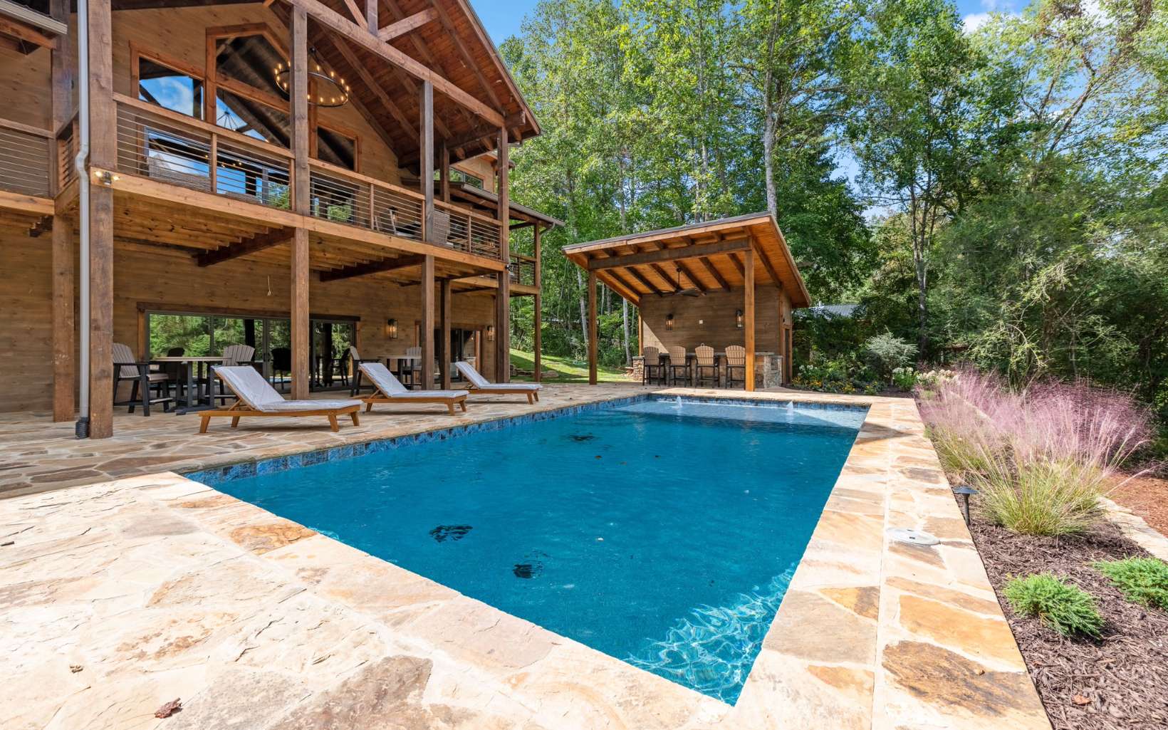 FIGHTINGTOWN CREEK FRONTAGE, OUTDOOR KITCHEN, HEATED POOL + 3 CAR GARAGE!! Experience an unparalleled mountain lifestyle with this stunning 4br/3.5ba Custom Lodge on Fightingtown Creek, built by Lomonaco Homes. Nestled on over 2+ acres of creekfront beauty, this stunning residence boasts a spacious 3-car garage and professionally landscaped surroundings that will leave you in awe. Indulge your culinary passions in the chef's dream kitchen, complete with luxurious granite countertops and state-of-the-art appliances that will elevate your cooking experience. Impress your guests with seamless entertainment, courtesy of the spacious dining area, oversized custom island, and the convenient butler's pantry. The main level provides ultimate relaxation with a cozy rock fireplace and an inviting primary suite, featuring dual vanities, a walk-in tile shower, and custom cabinetry in the closet. The terrace level offers endless entertainment options, including a party space, movie area, and three additional bedrooms and bathrooms. Step outside and discover an oasis, complete with a relaxing heated pool, an exterior linear fireplace, and a fully equipped pool house. Whether you're searching for a home to call your own or seeking an investment opportunity, this property offers everything you need to enjoy and fulfill your purposes. Conveniently located near downtown Blue Ridge, you'll have easy access to charming wineries, breweries, apple orchards, and a vast array of outdoor activities.