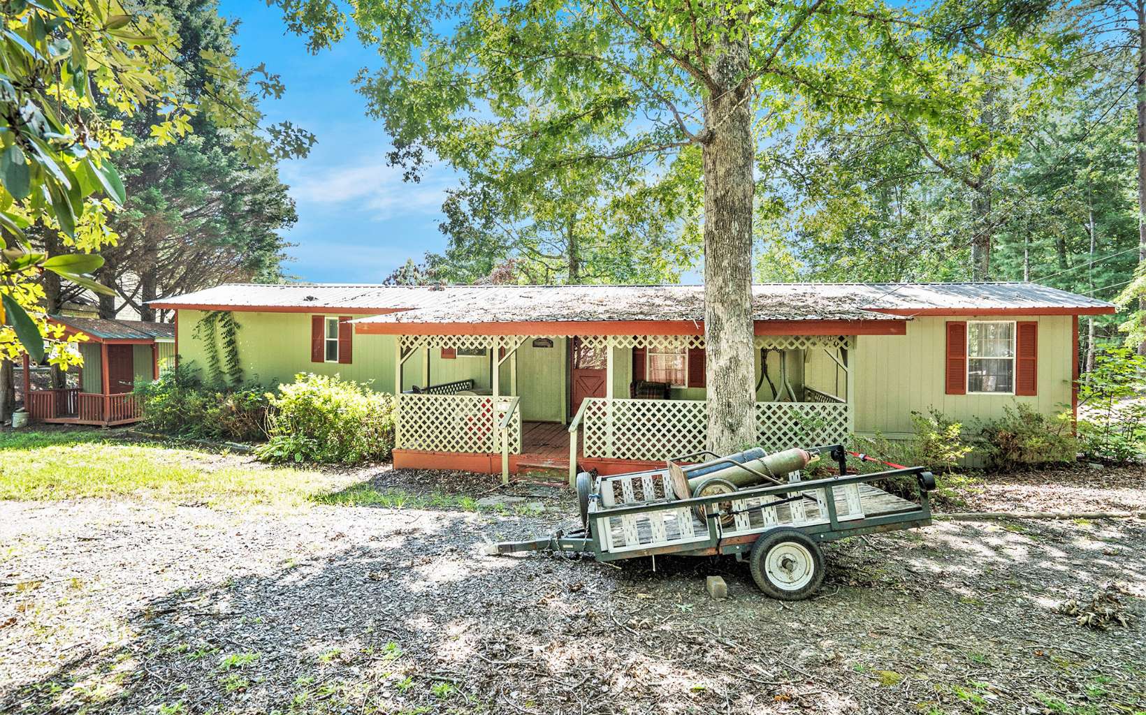 Seller says "Let's get this sold"!!! 2 Bedroom, 2 Bath Mobile or Modular Home not in a subdivision with a spacious lot and no restrictions!! Home comes with an outbuilding and a carport. The property also has a 110/220 exterior power outlet that can be perfect for an RV or motor home to have on property year round. The home has a nice covered large front porch and a large back deck. It is also located less than a 5 minute drive to down town Hiawassee where you can enjoy everything that north GA has to offer. You can also see the lake from the back deck and hear the music entertainment from the events they have at the arena. The sellers are very motivated to sell!!
