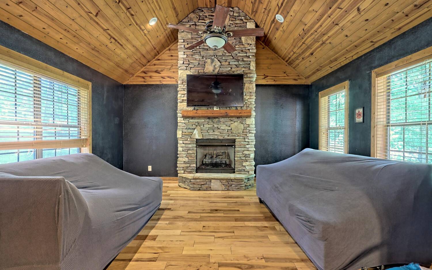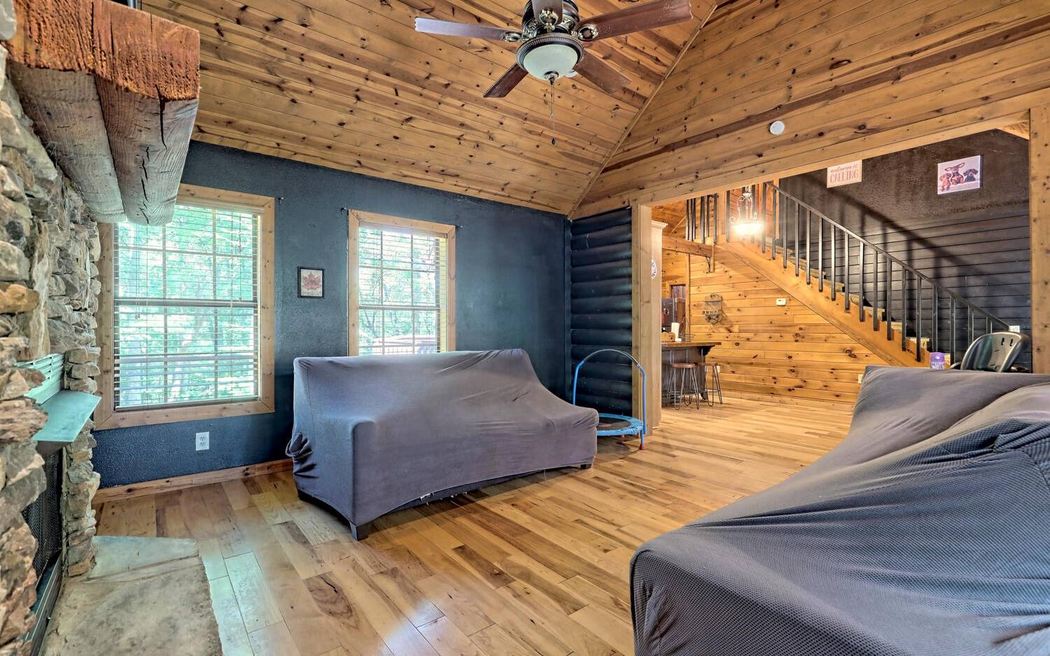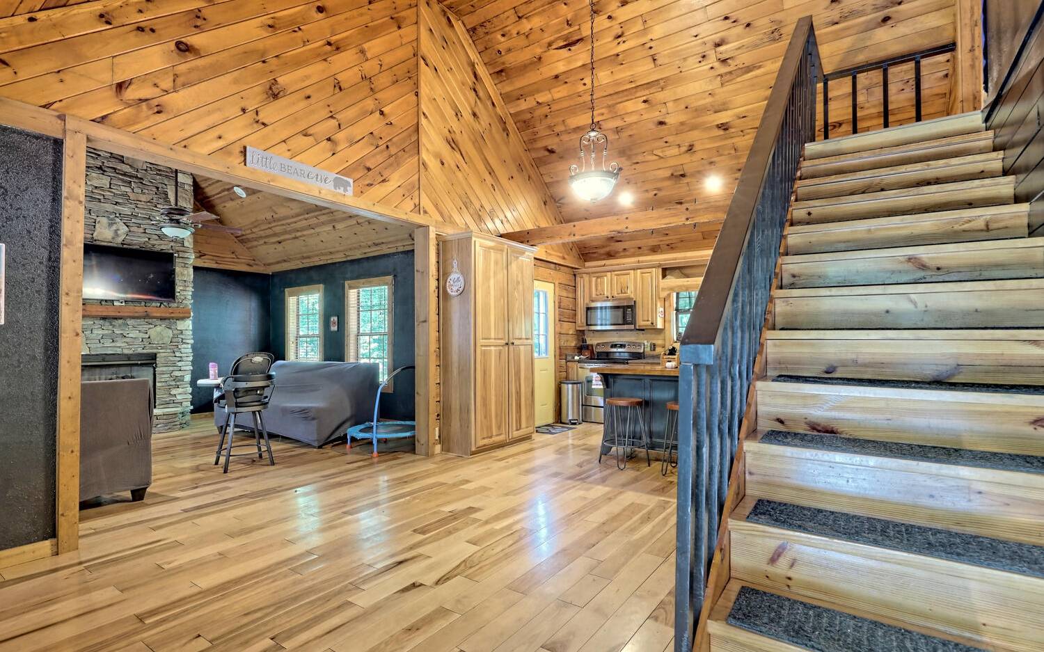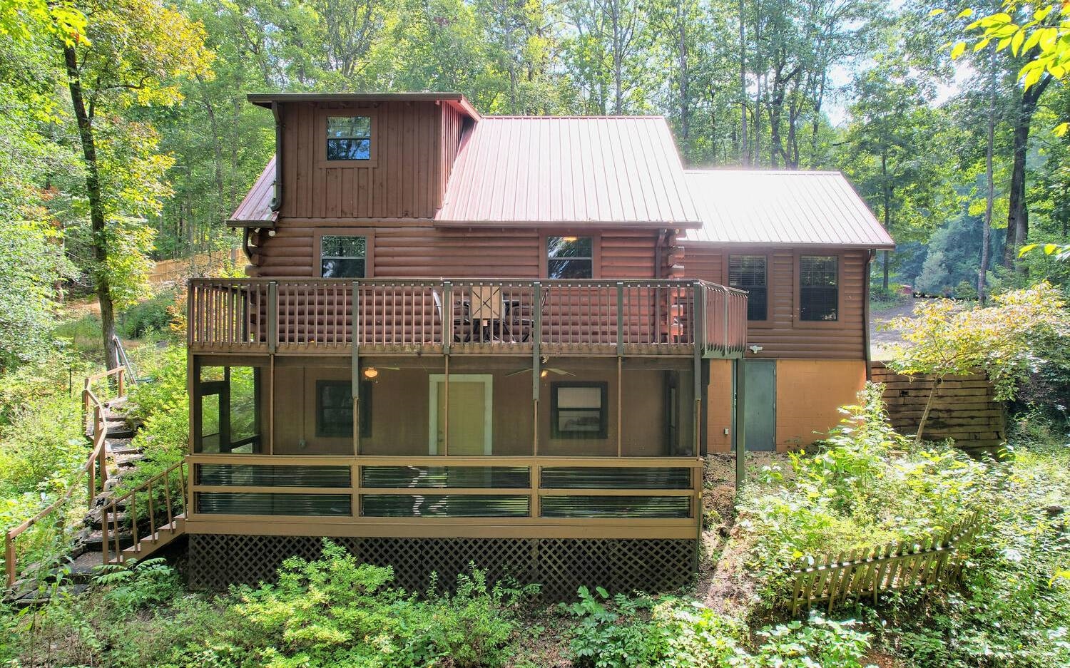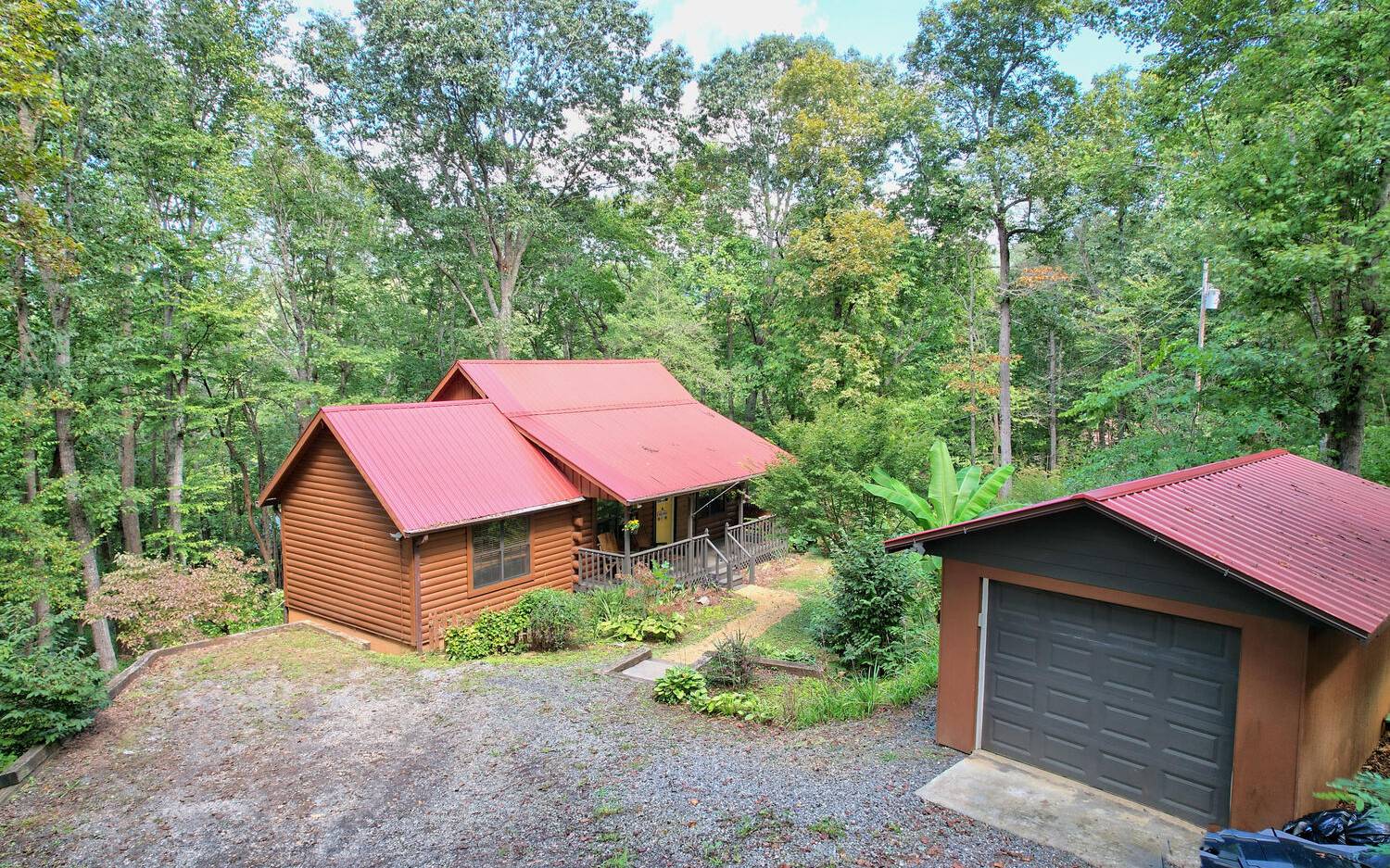 BACK ON MARKET THRU NO FAULT OF SELLER! 1.6 Acres with Garage. Hiking the Appalachian Trails, or your own property even, skipping over to the Winery, tubing in Helen, restaurants, shops, and being able to return to your very own Log Home Retreat with every tree or bush you could imagine, including bananas! Possessing over 2000 sq. ft., Floor to Ceiling gas fireplace, and with each floor having its own private bed and bath, a chef’s kitchen with center island and a place to display all those cooks’ pots and pans, additionally with a view of your parkland. If that wasn’t enough you have tongue and groove in immaculate hardwood floors, Hi Speed Internet, and your very own storm shelter. This is the dream cabin you have been waiting for. Sellers thought was to install a gate and fence to make it an even more private retreat, but due to medical circumstances must move ASAP.
