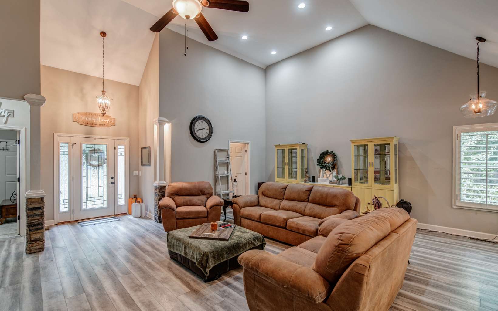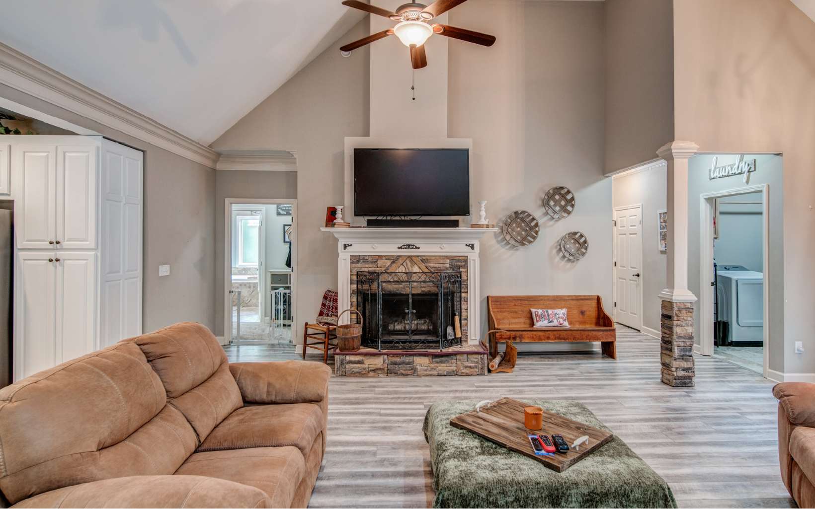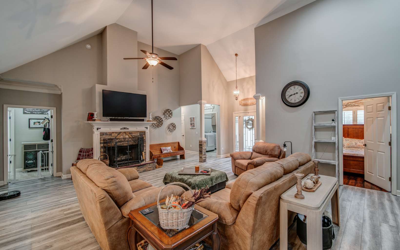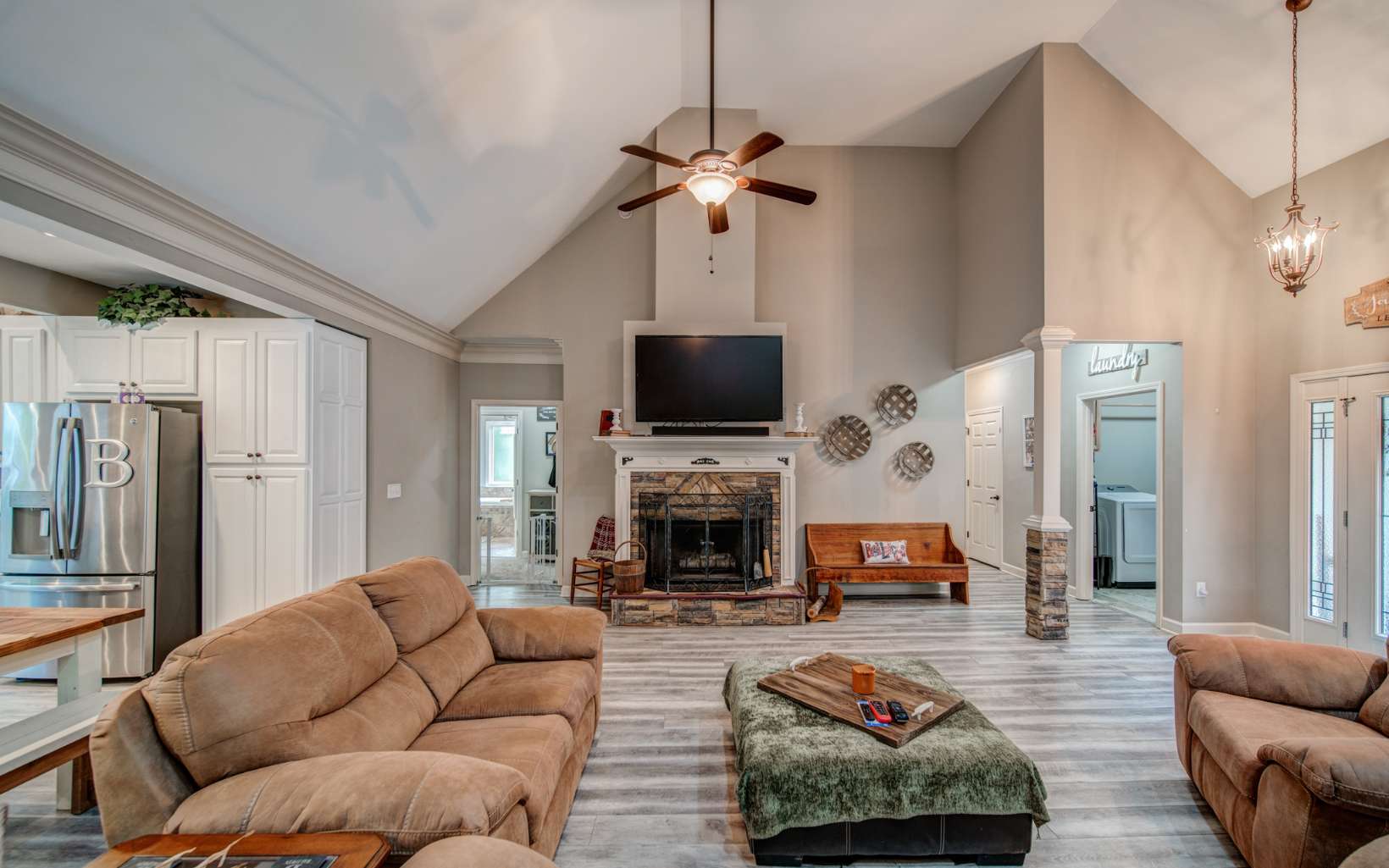 Fall in love with this beautiful home with special touches, throughout. The main floor features a great room that includes the living, dining and kitchen areas. Off the living area, there is a bonus room, which would make a great office, playroom or a 5th bedroom. The kitchen is a chef's dream with a large island, double wall ovens and an additional range with 5 burners. From the sink, you look out the row of windows out into the backyard. To the left of the fireplace, you are led to the owner's bedroom, with walk in closet and ensuite, which features a soaking tub, double vanities and separate shower. To the right of the fireplace, you are led to two guest bedrooms, which share a hall bathroom. Stairs lead you to the 4th bedroom, with ensuite over the extra large garage. The mudroom/laundry room is easily accessed from both the living area and the garage. Stairs lead down to the full, unfinished basement which gives you over 1600 sq feet of space to finish and is stubbed for a full bath. You'll love entertaining in the covered patio or in the firepit area. This home has beautiful landscaping with extra attention paid to details, including an underground stormwater drain, leaf gutters, which have a lifetime warranty that is attached to the property. There is also a raised and covered dog kennel outside the garage. The hot tub, outdoor bar, furnishings are negotiable. Sellers are motivated, so bring an offer!