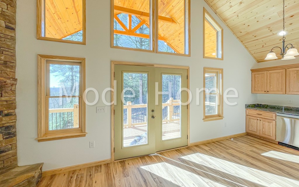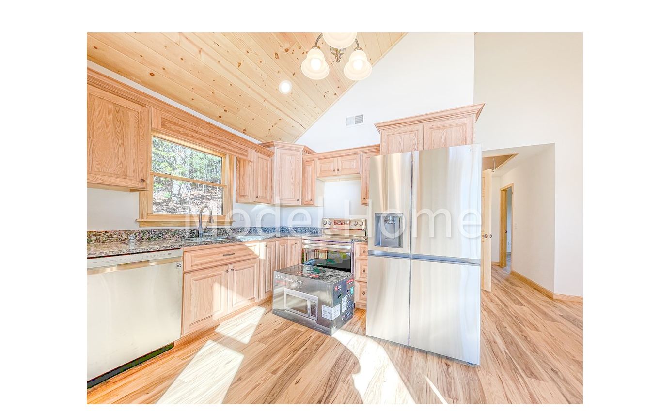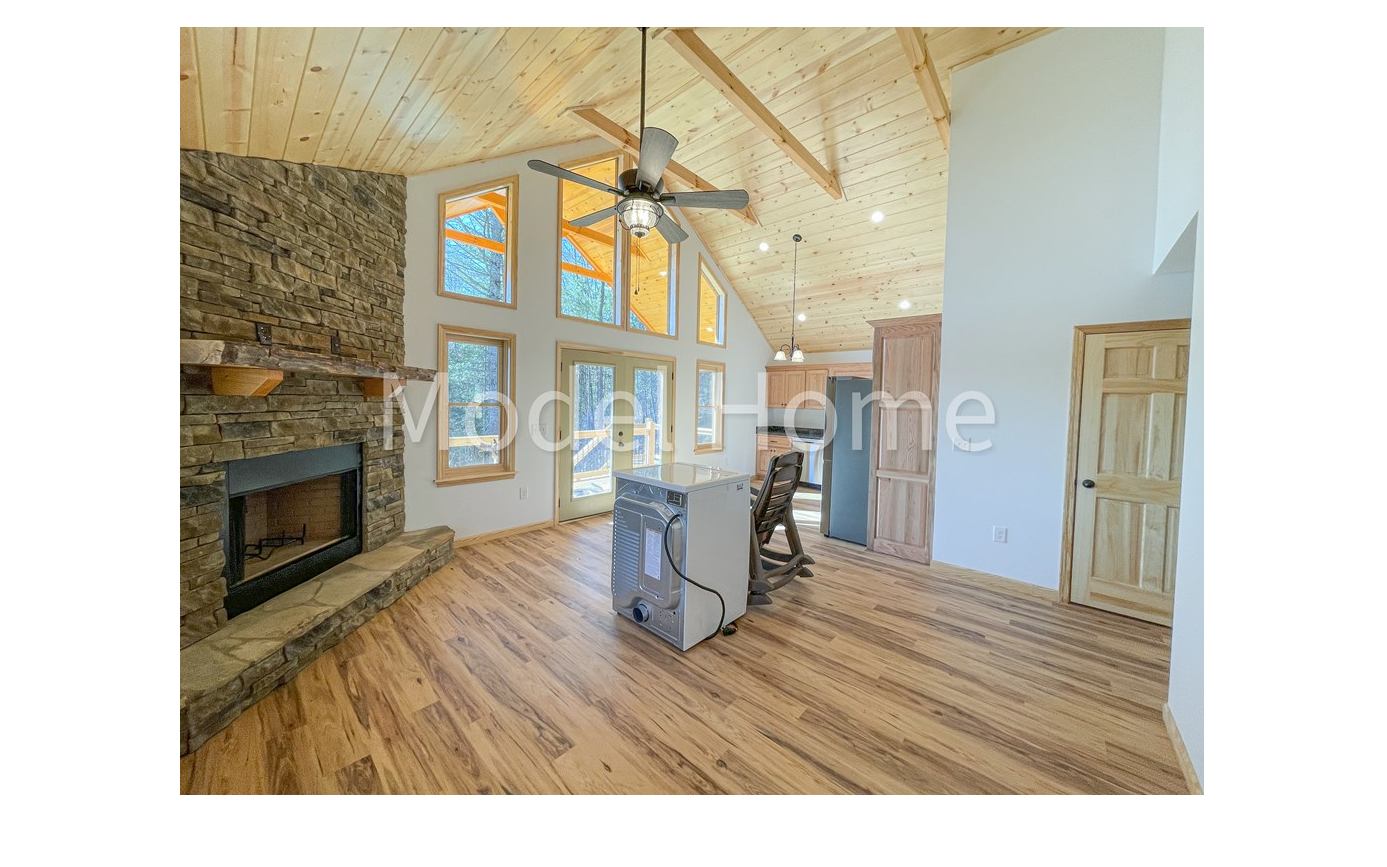 Brand new and almost ready to move into, this 2 bedroom, 2 bath cabin in the woods can not be beat for quality, location and privacy not to mention cable internet. Beautiful vaulted wood ceilings in the great room, master bedroom and covered front porch overlooking the mountains and peace and quiet. Wood burning stacked stone fireplace in the great room, granite counters in the kitchen and baths, tiled walk in shower, solid six panel wood doors