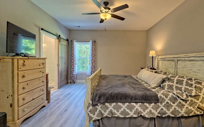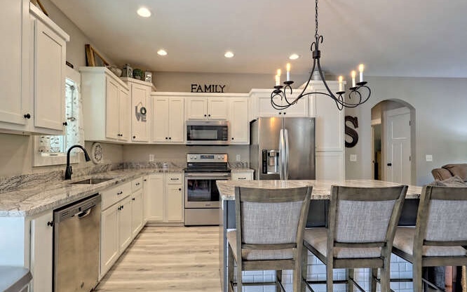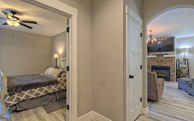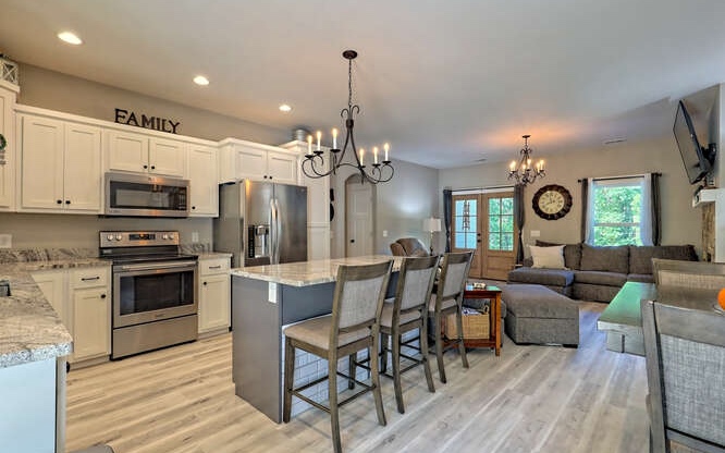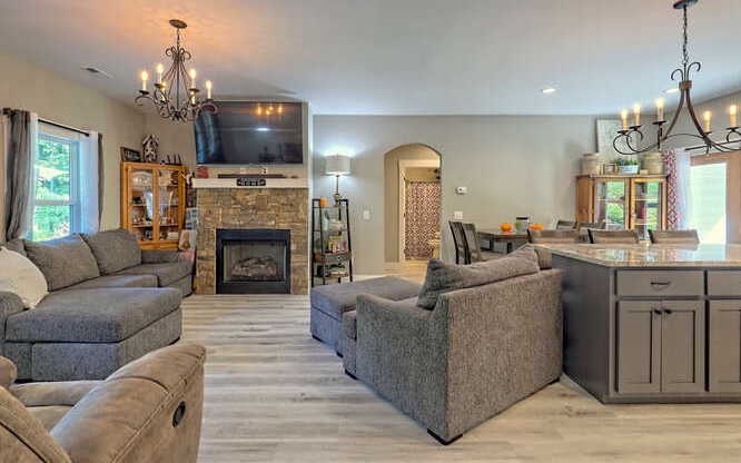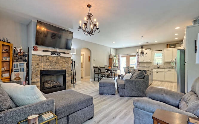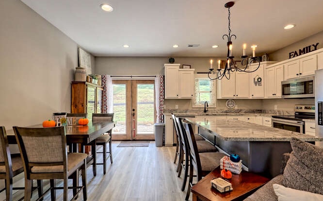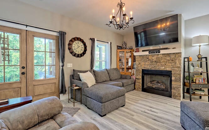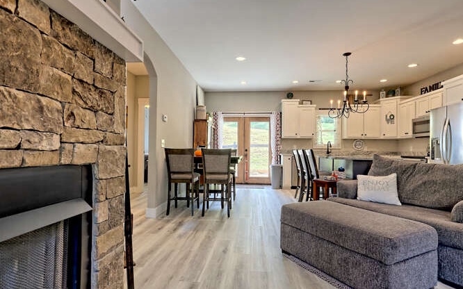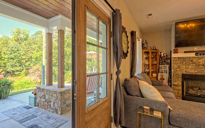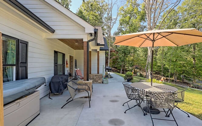 Like new Craftsman style home with Seasonal Lake and Mountain View’s. This one level home is located in the Chatuge Village neighborhood with community lake access. This home features a welcoming front patio and as you enter the double style front door you will be greeted with the open floor plan that brings in natural lighting. The living room features a stone front fireplace with gas logs. The spacious kitchen has solid surface countertops, stainless steel appliances, and a large island with space for barstools. The dining area leads to the rear patio with a fenced in area. The master bedroom is spacious and offers a walk in closet, the master bathroom features a tiled shower with double vanities and solid surface countertops. The laundry room is conveniently located near the master suite and the two secondary bedrooms and bathroom is a split bedroom floor plan for privacy. The home features a two car garage, an outbuilding for extra storage and a concrete driveway that has two entrances. Located close to Downtown Hayesville, Wineries, Golf Courses, Restaurants and shopping.