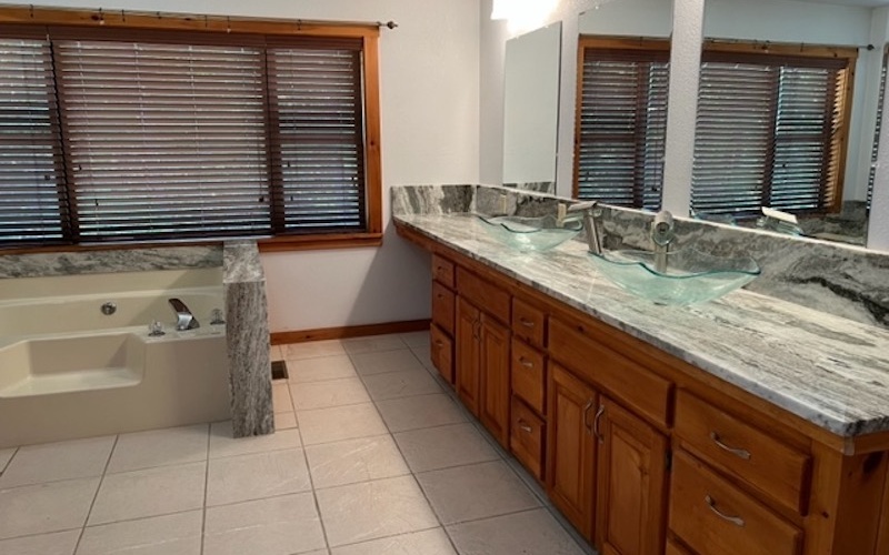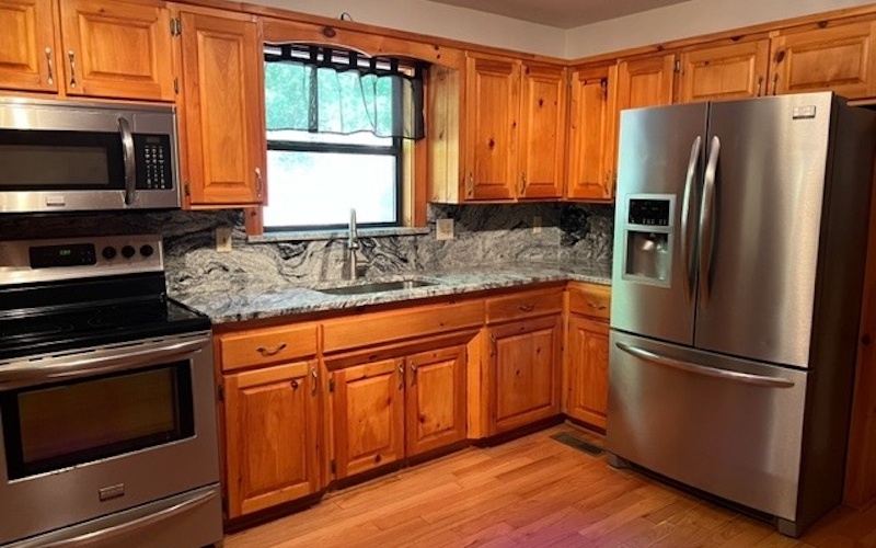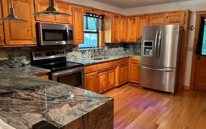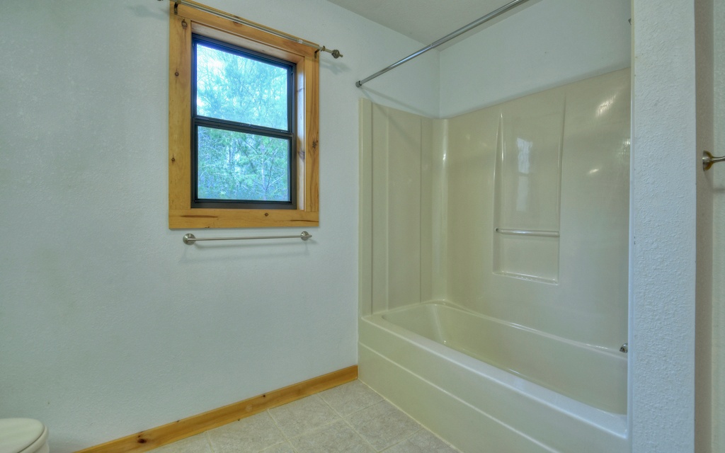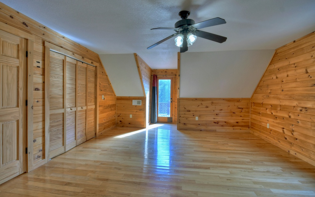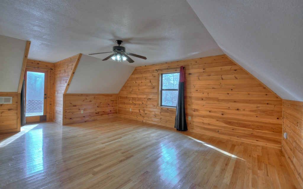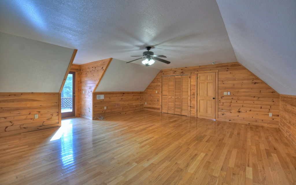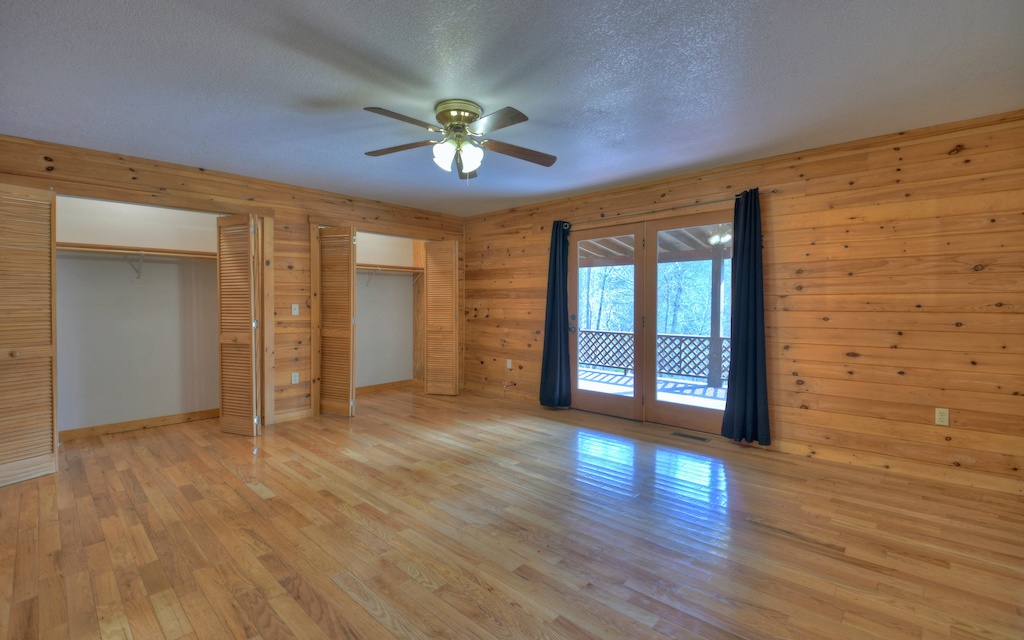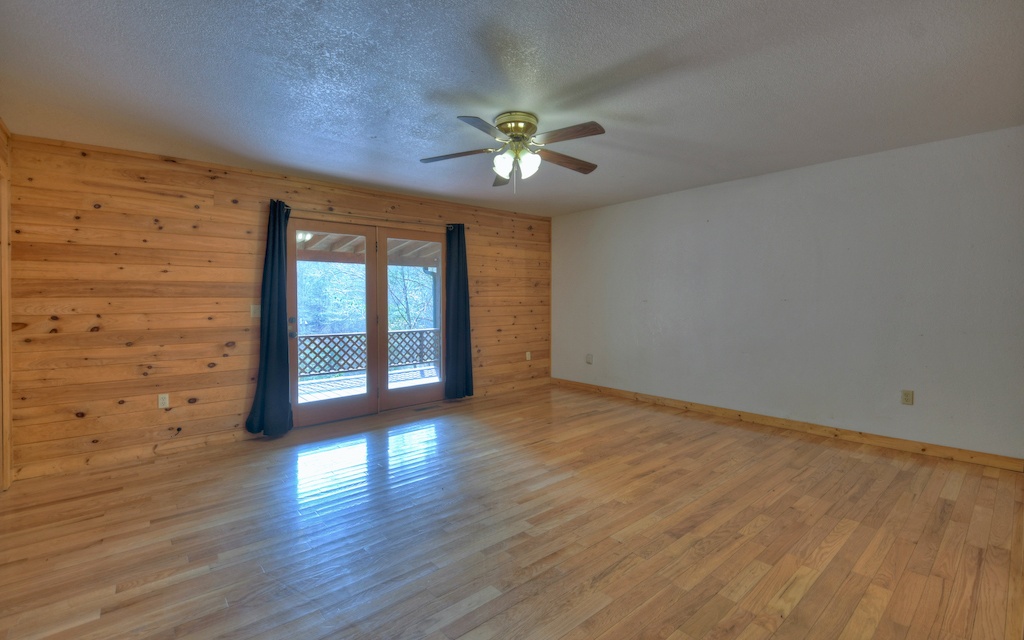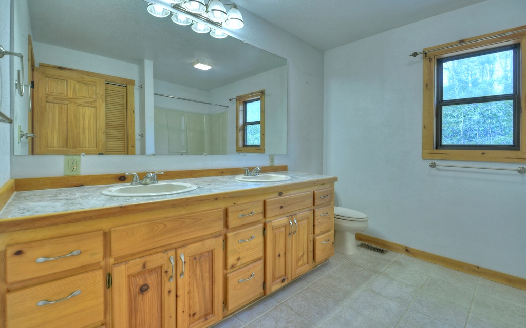 This 5 bedroom, 3 full bath chink log cabin has TOTAL privacy! The main level has beautiful oak floors throughout, LR w/fireplace (unvented w/gas logs), DR, spacious Kitchen with NEW GRANITE COUNTERS, plenty of cabinets, bar, Stainless refrigerator, range, microwave, & dishwasher, and Main BR & BA (jacuzzi tub, 2 sinks, separate shower, NEW GRANITE COUNTERS); the Upper floor houses two very spacious BRs & BA (2 sinks, shower/tub combo); Terrace level - 2 BRs & BA (2 sinks, shower/tub combo) and two nice Bonus Rooms (Den, Game Room, Office, Theatre Room, etc, or anything your family wants). HOME HAS JUST BEEN RESTAINED. There is a seasonal mtn and lake view & porches for you to enjoy all year long. Extras include metal roof, fire pit, 2-car carport, small creek on property, 2 laundry rooms & gated community. Rentals are allowed (both short term and long term).