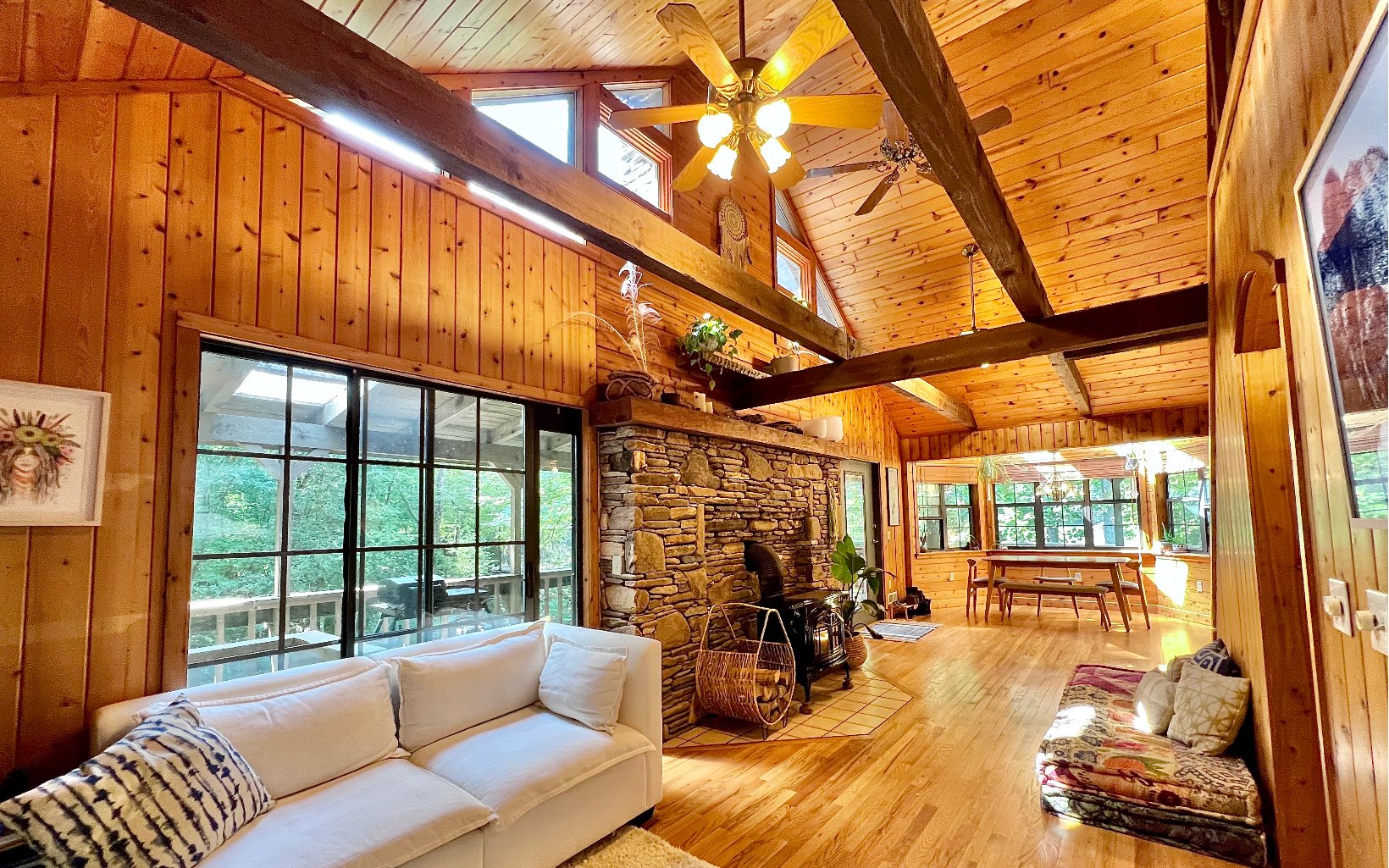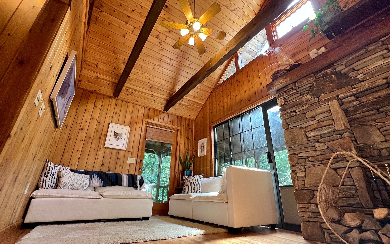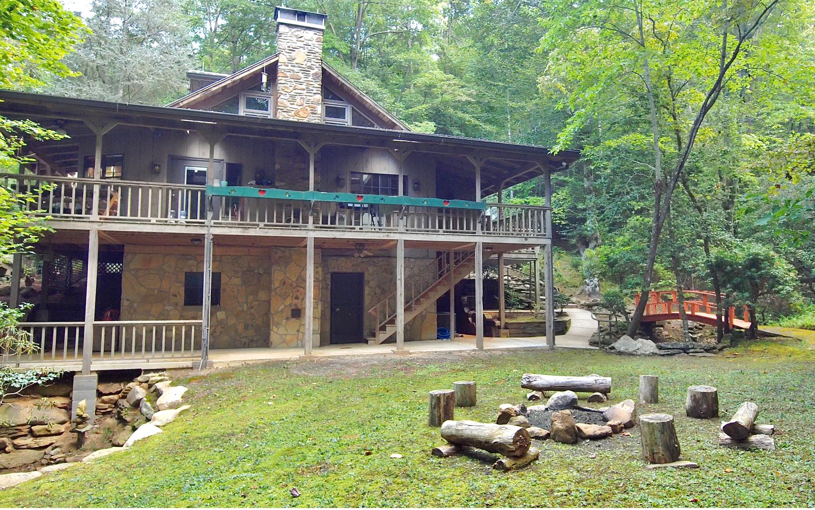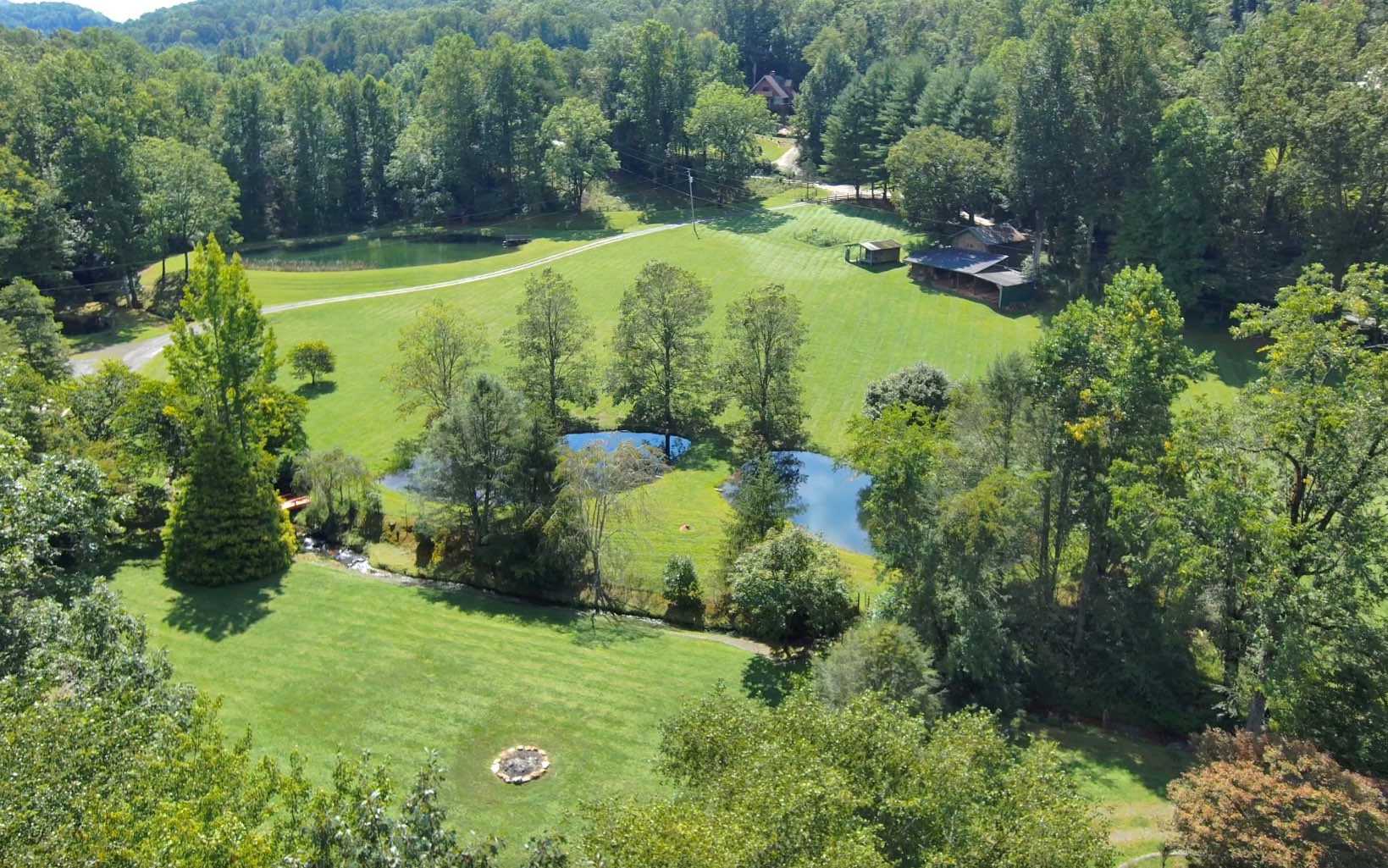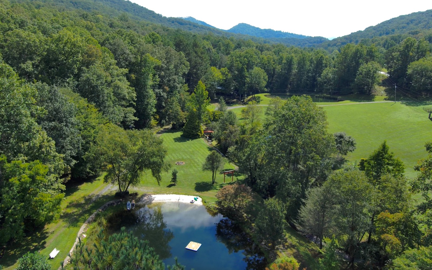 Escape to your 14.4+-acre Appalachian Sanctuary. This 3 story, 3-bed, 2.5-bath craftsman cabin, nestled in the woods, boasts a central stone hearth, wood fire stove and tongue and groove throughout. The covered wrap-around porch and the private master bedroom balcony overlook a waterfall and is surrounded by mature forest. The allure extends to a private estate with seven ponds, spring-fed creeks, 11 waterfalls, and a 1-acre swimming pond with a white sand beach. Explore a barrel sauna, cold plunge, beachside kitchen, and four fishing ponds. Two well-built barns with lofted spaces await your dreams. Japanese Zen gardens, trails, and hidden paths invite exploration. Lake Chatuge, moments away, offers 135 miles of shoreline. Hayesville, 10 minutes away, adds convenience with diverse culinary scenes. As a bonus, a thriving HipCamp business with an 87,000-follower Instagram account elevates your investment. Guests commune around fire pits, creating memories in serene surroundings. The property stands as a testament to nature's grandeur. This haven invites you to revel in outdoors amidst the splendors of the Appalachians. Own not just a property, but a narrative of serenity, adventure, and the untouched allure of the Appalachians. Immerse yourself in a retreat that transcends the ordinary—a sanctuary where nature's wonders unfold in a symphony of beauty and tranquility. Your Appalachian oasis awaits.
