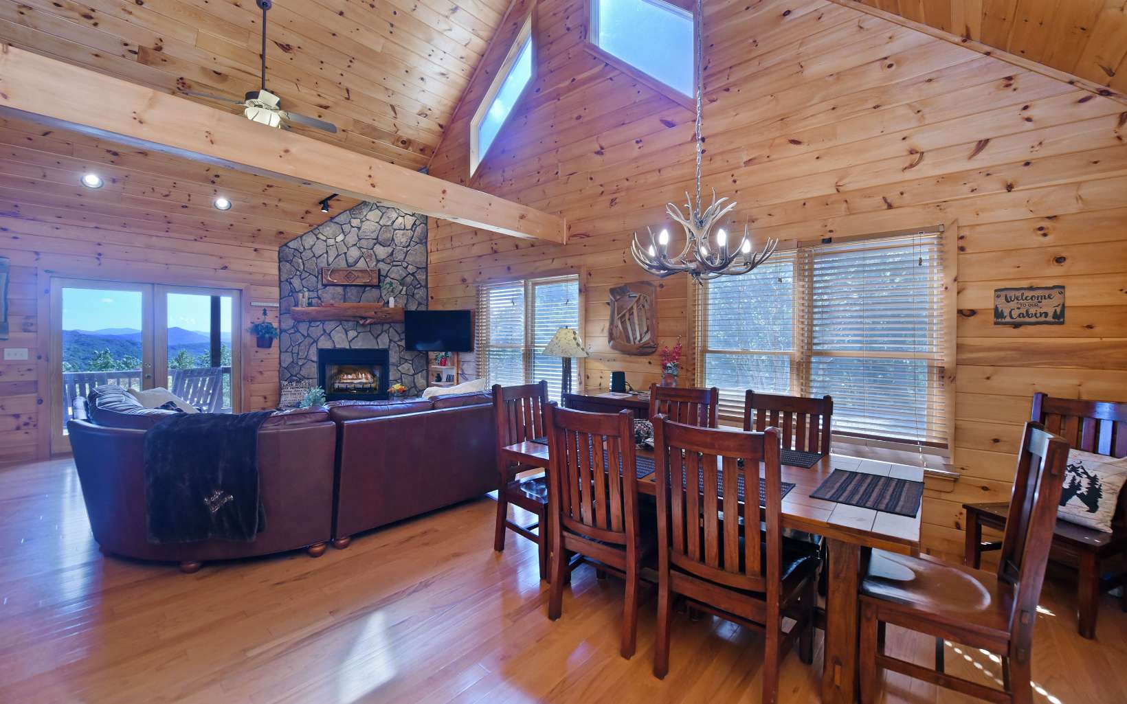 IMMACULATE MOVE IN READY Mountain Cabin in the Private Gated Community of Heards Ridge! AMAZING YEAR ROUND LONG RANGE LAYERED MOUNTAIN VIEWS from all three levels! This Gorgeous 3BR/3BA comes with an Open Living Room/Kitchen Area with brand New Stainless Steel appliances. Best of all this cabin is COMPLETELY FURNISHED with extremely nice furnishings! 2 Fireplaces, Outbuilding, Fire pit Area and a Hot Tub! The Terrace level has a 1BR/1BA with a game room and a living room area. It is on an ACTIVE SHORT TERM RENTAL PROGRAM and is producing GREAT INCOME! Call me today!