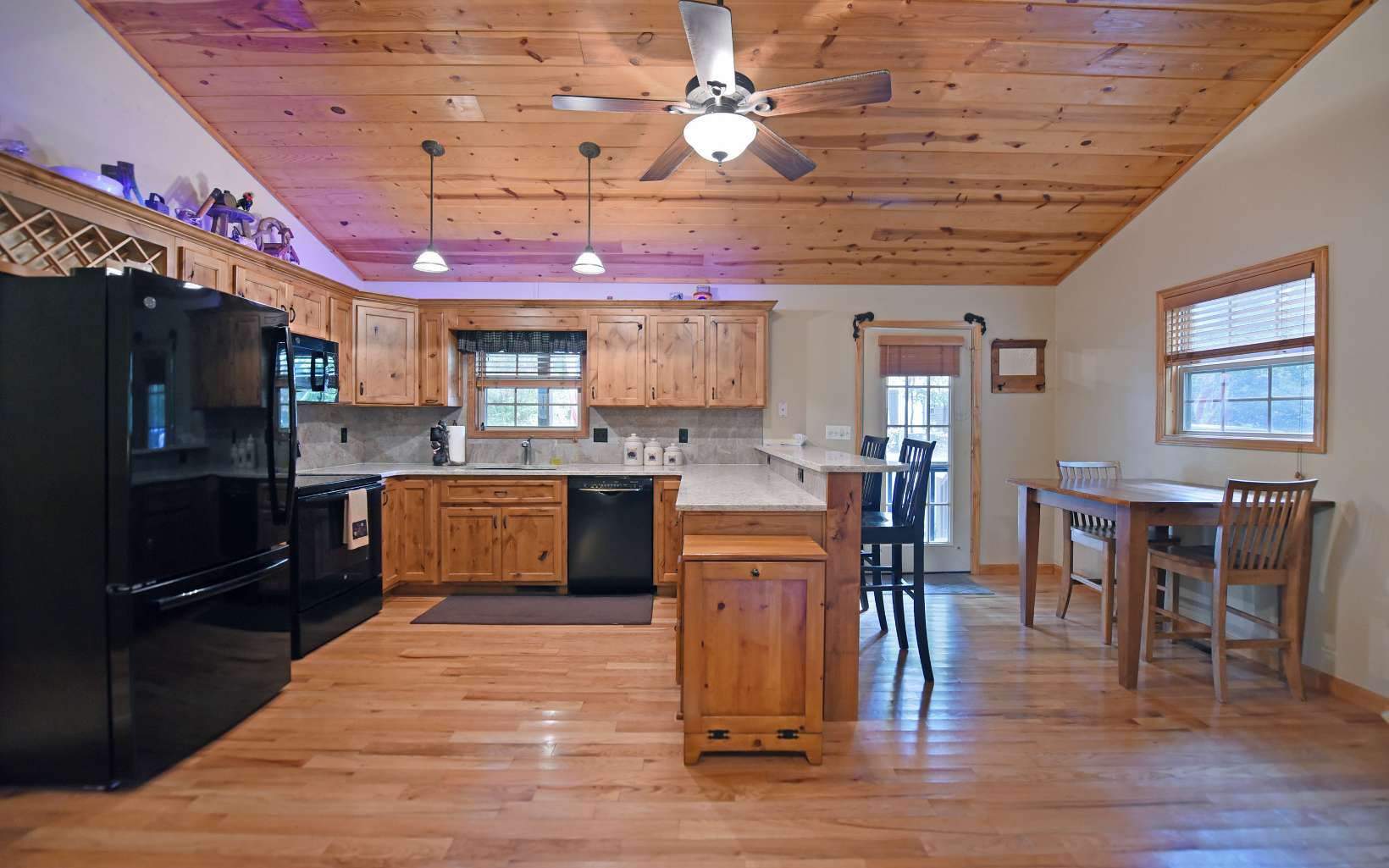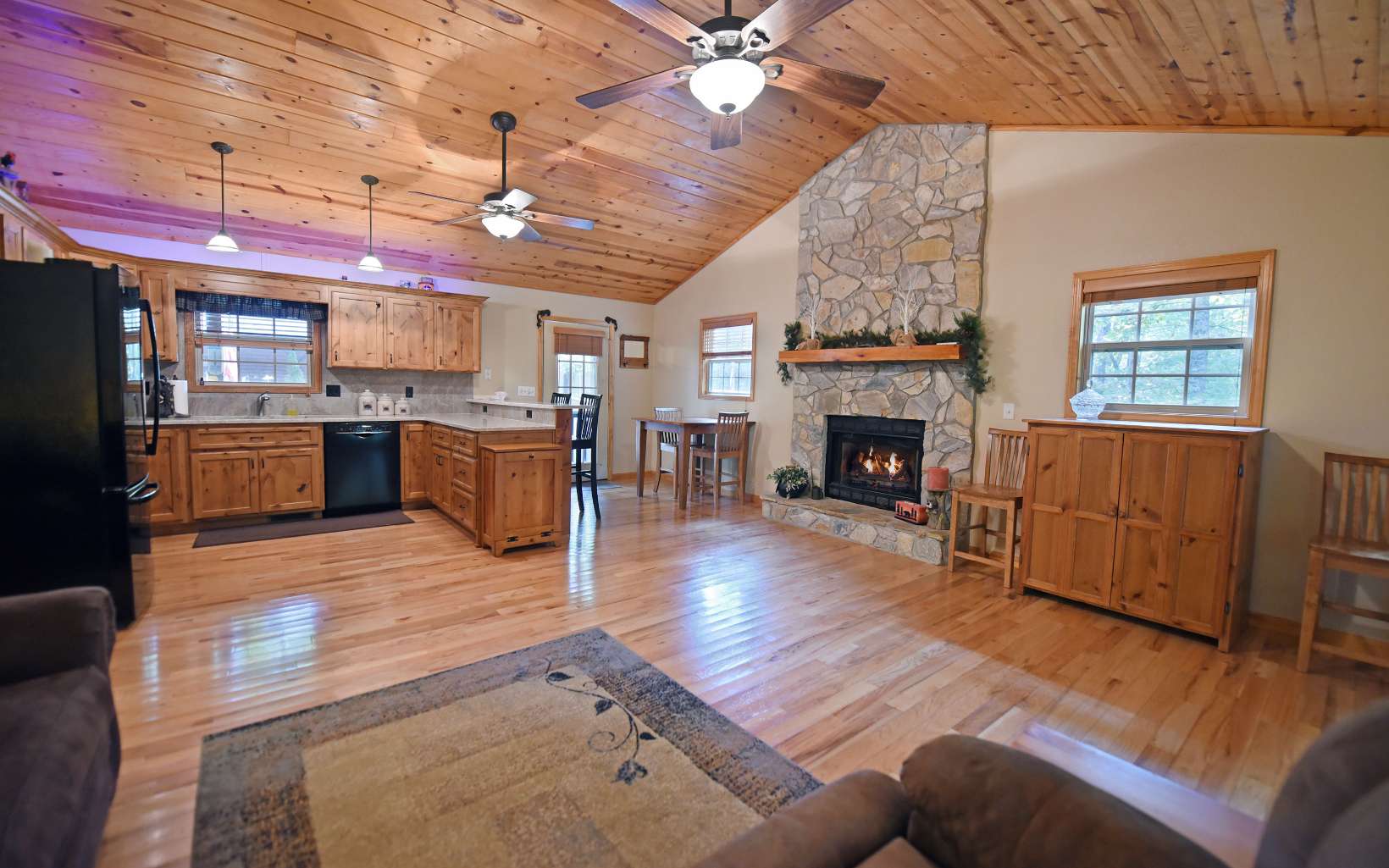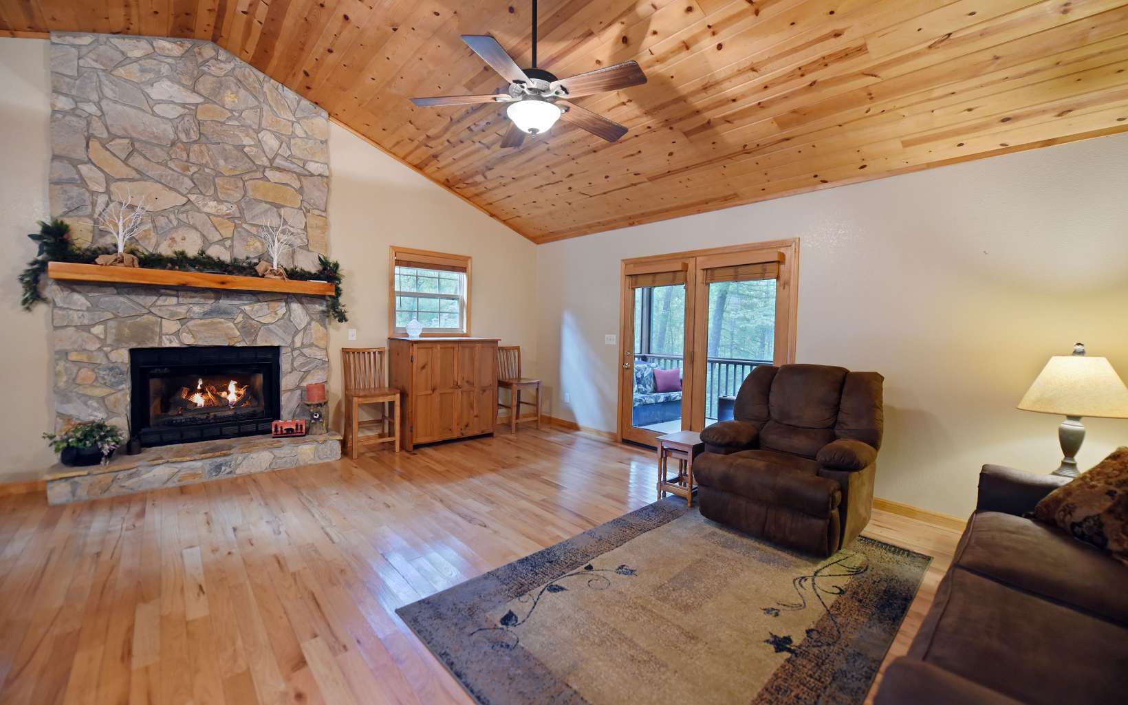 Your Mountains called...they want you to come home now!! Nestled on 1.35 acres, this beautifully finished home offers open floor plan, vaulted ceilings, hardwood floors throughout. Floor to ceiling stone fireplace with remote control gas logs. The spacious kitchen features beautiful knotty Alder cupboards and gleaming quartz countertops and breakfast bar. Master bedroom and bath on main level, along with guest bedroom and full bath. Step out on the screened in deck, perfect for outdoor gatherings and enjoying the peaceful, private backyard. Finished lower terrace level offers 2 additional rooms with closets for additional sleeping quarters or office space. Full bath, family room, propane log heater, storage galore, laundryroom and kitchenette. Separate carport and workshop with 220V electric, generator hookup, loft storage and propane heater. the entire property features lush landscaping and mature trees. Furnishings are included!