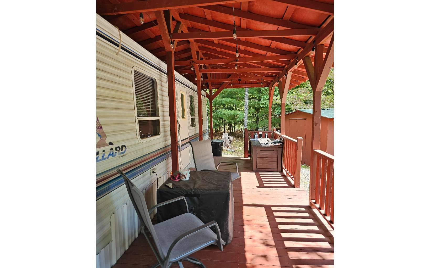 Welcome to your lovely RV retreat in the North Georgia Mountains. Located in the highly sought after Coosawattee River Resort community, this immaculate RV combines comfort and scenic beauty, sitting on a quiet lot, between quiet neighbors. Easy access from the Legion Rd gate. Just up the hill from the main outdoor pool, dog parks, and the walking bridge over the Coosawattee river to Fish Trap park. RV has been very well maintained and features freshly painted interior, new light fixtures throughout, new shelving in both bedrooms and the bathroom, and a new water heater (5 months old). It smells nice and the floor is solid. The outdoor shed is in great condition and has new lighting and shelving as well. Green space behind the RV makes for a lovely, shaded back yard. Resort offers two outdoor pools, 1 indoor pool, fitness center, arcade, tennis, pickleball and putt putt, as well as multiple riverfront parks. Priced to sell.