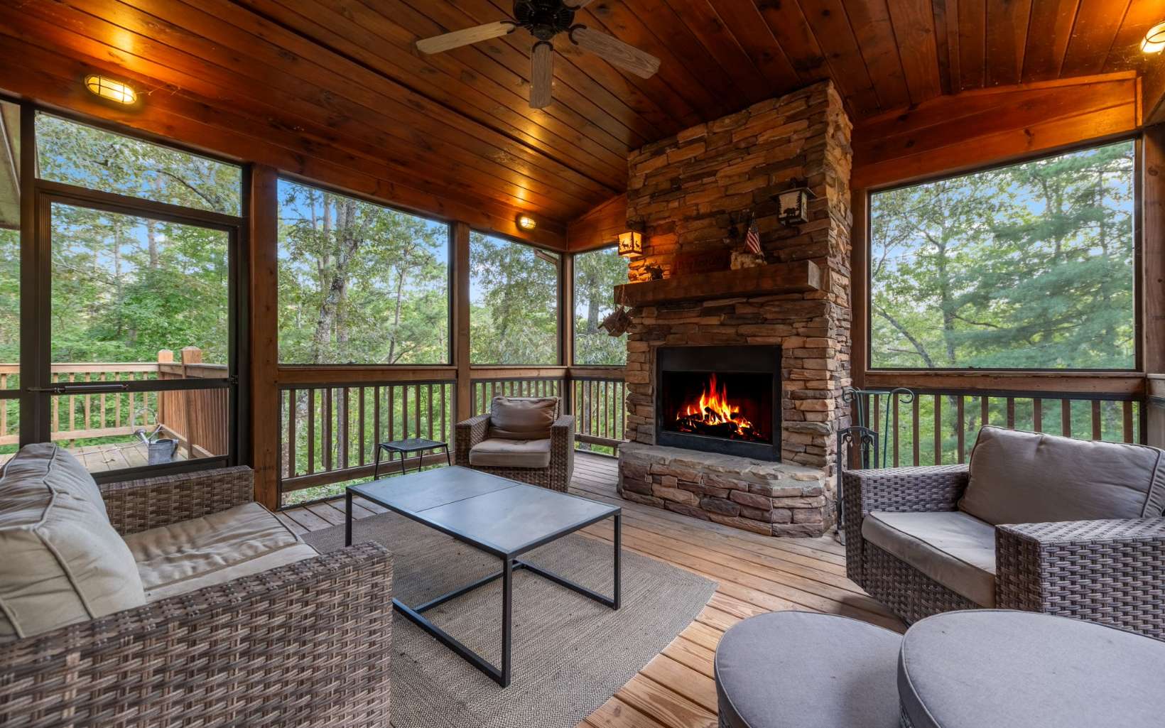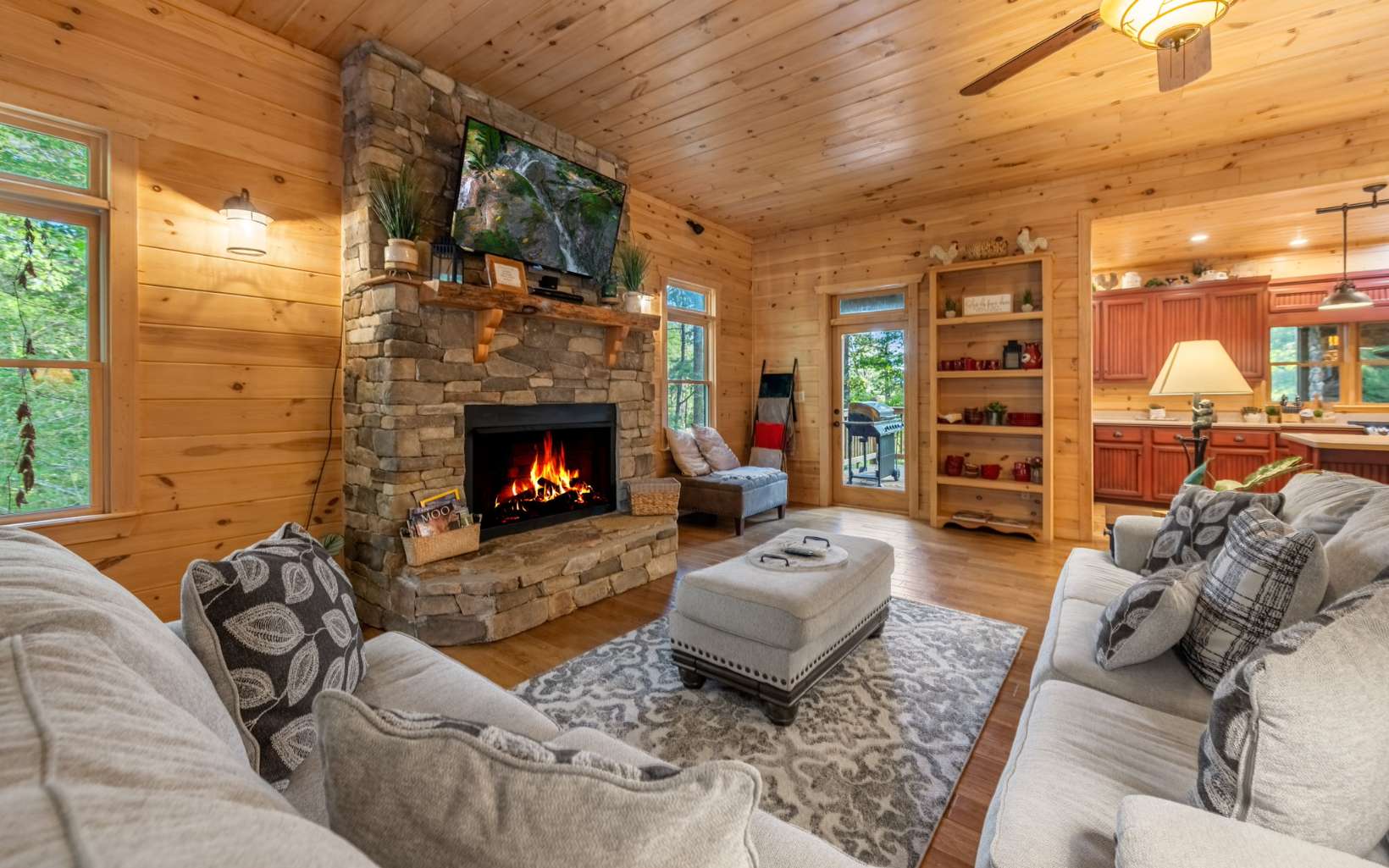 “Welcome to the Blue Ridge Mountains! Located in the highly desirable Mountain Tops community, this fully furnished, 4-bed, 4.5-bath home is your perfect mountain retreat or rental property. It boasts an open floor plan, high ceilings, a cozy fireplace, and a spacious kitchen. Step outside to a screened porch with a gas fireplace and enjoy the view of the mountains. The truly unique master suite offers a double vanity, walk-in shower, and soaking tub. Upstairs, you’ll find two more bedrooms with private baths. The finished basement has a den, kitchenette, bunkroom, and hot tub deck. A detached garage with a one-bedroom apartment completes the package. Full home generator included. Property just had a vista cut to show the view and garage has been re-stained. “