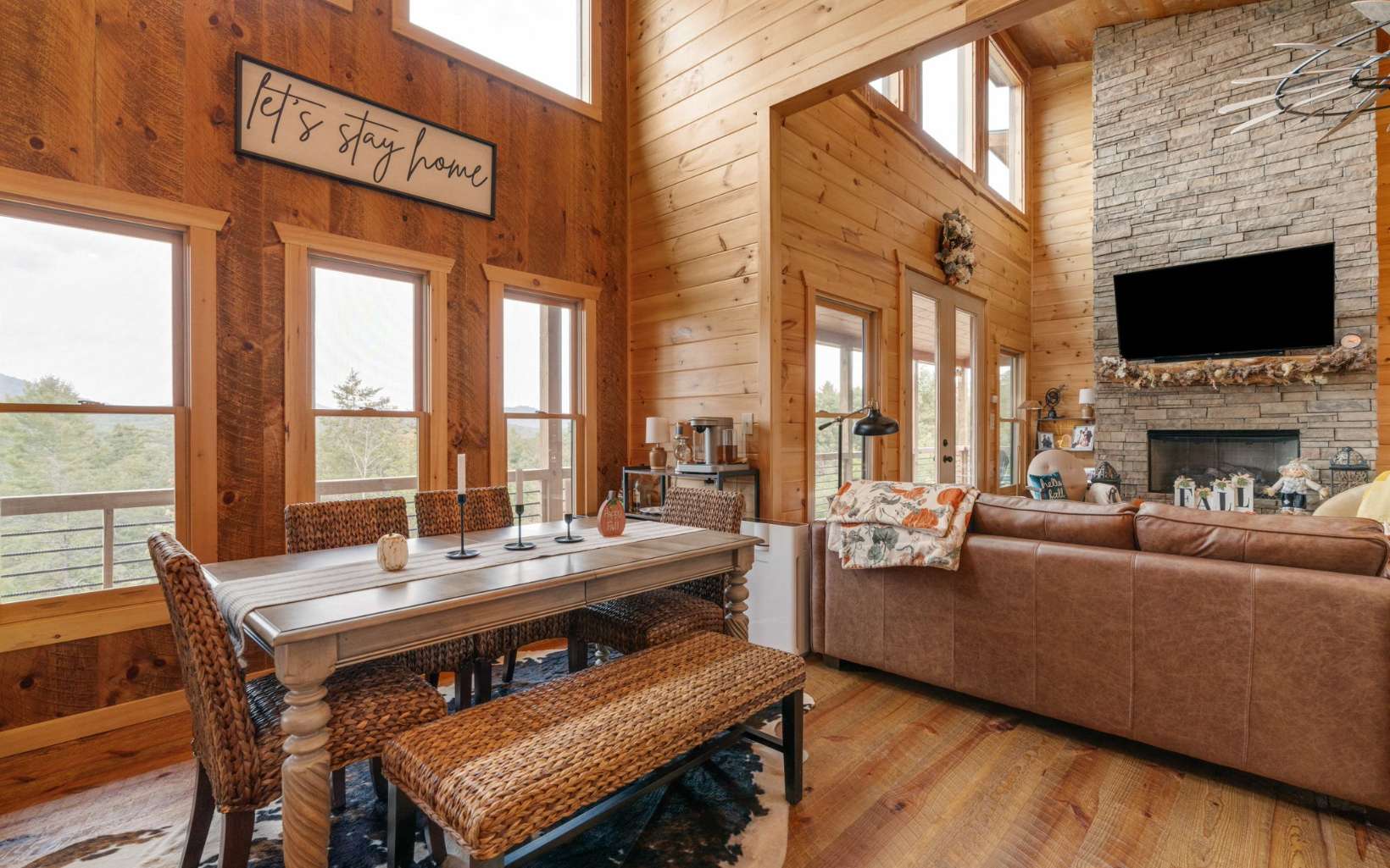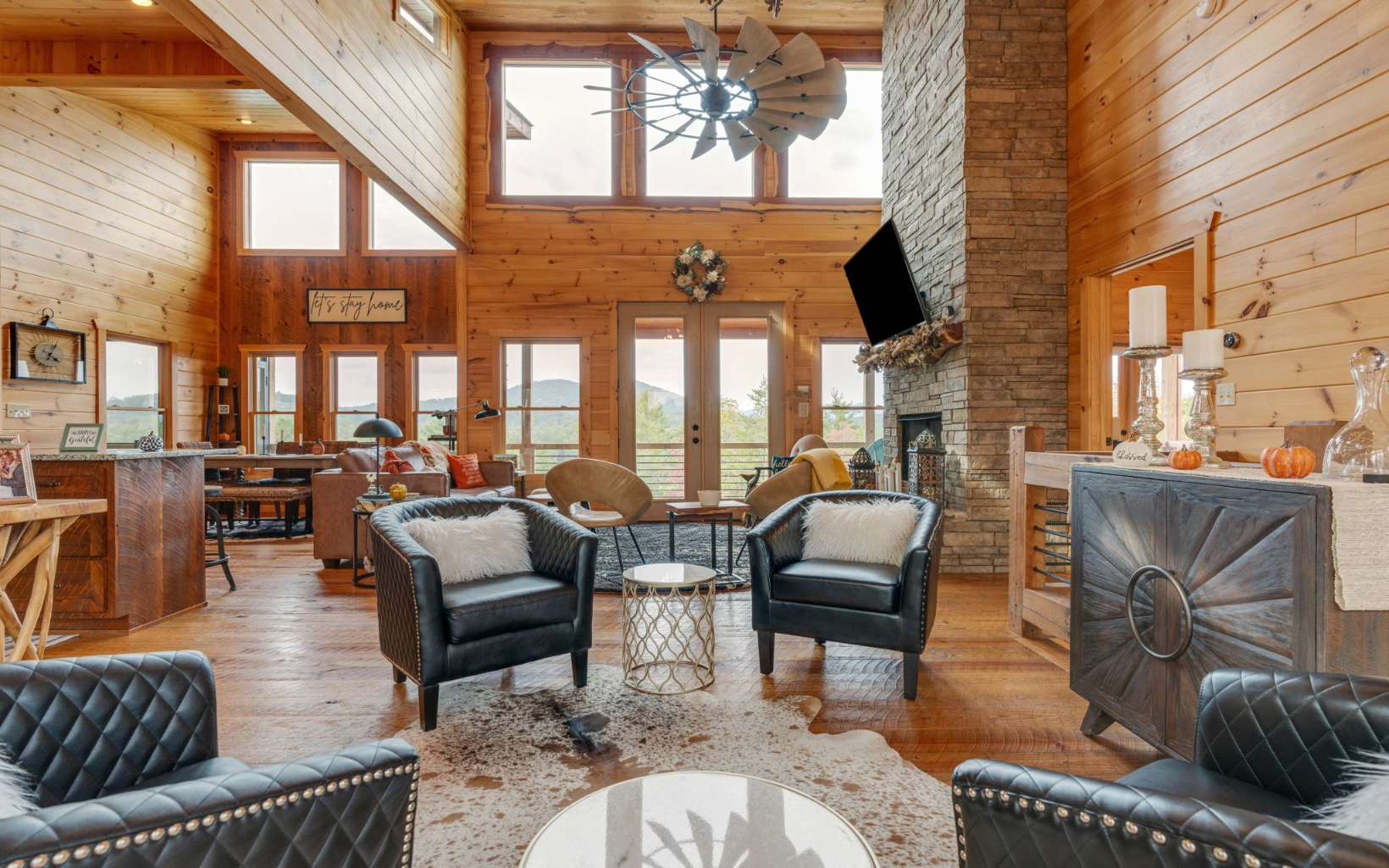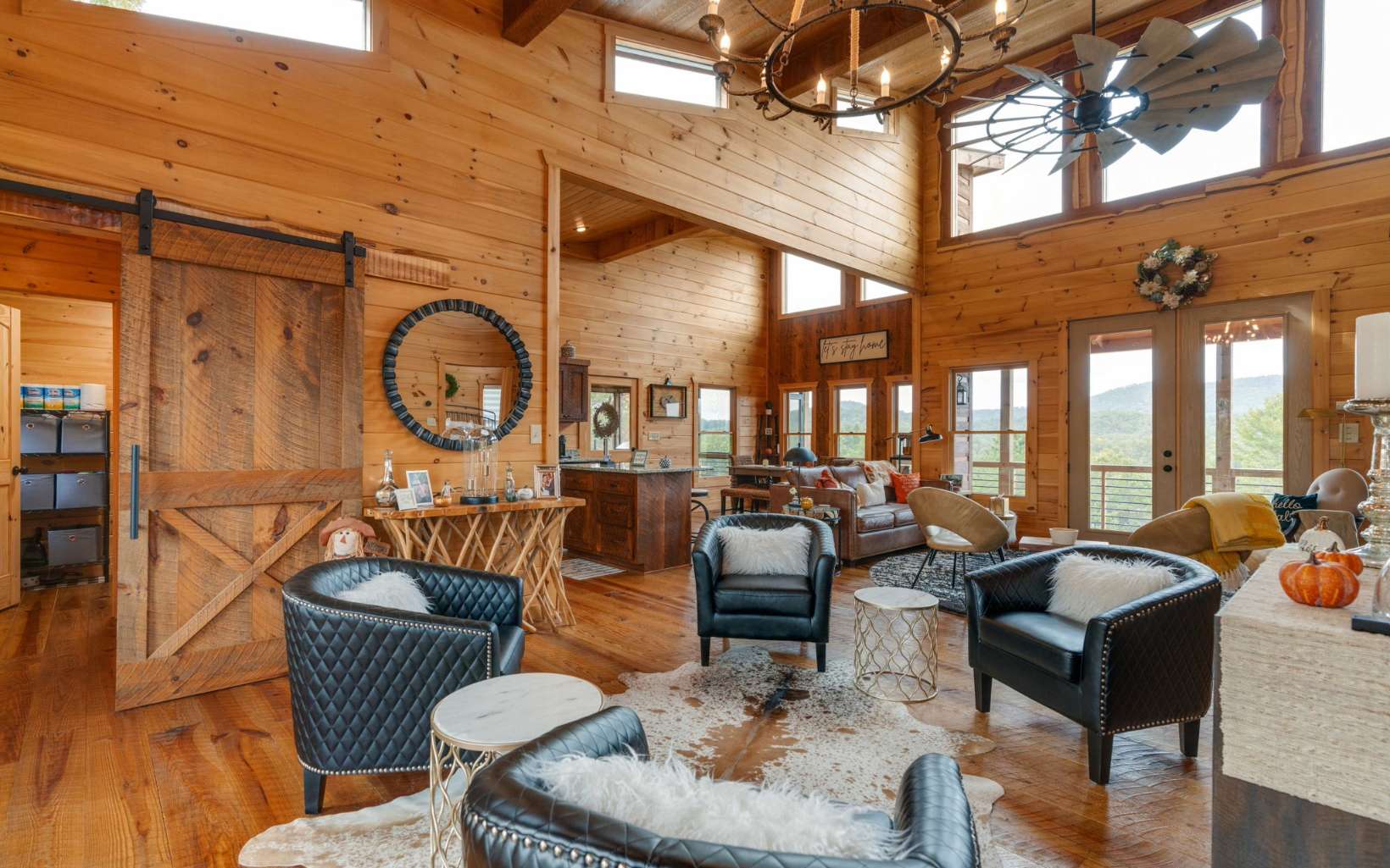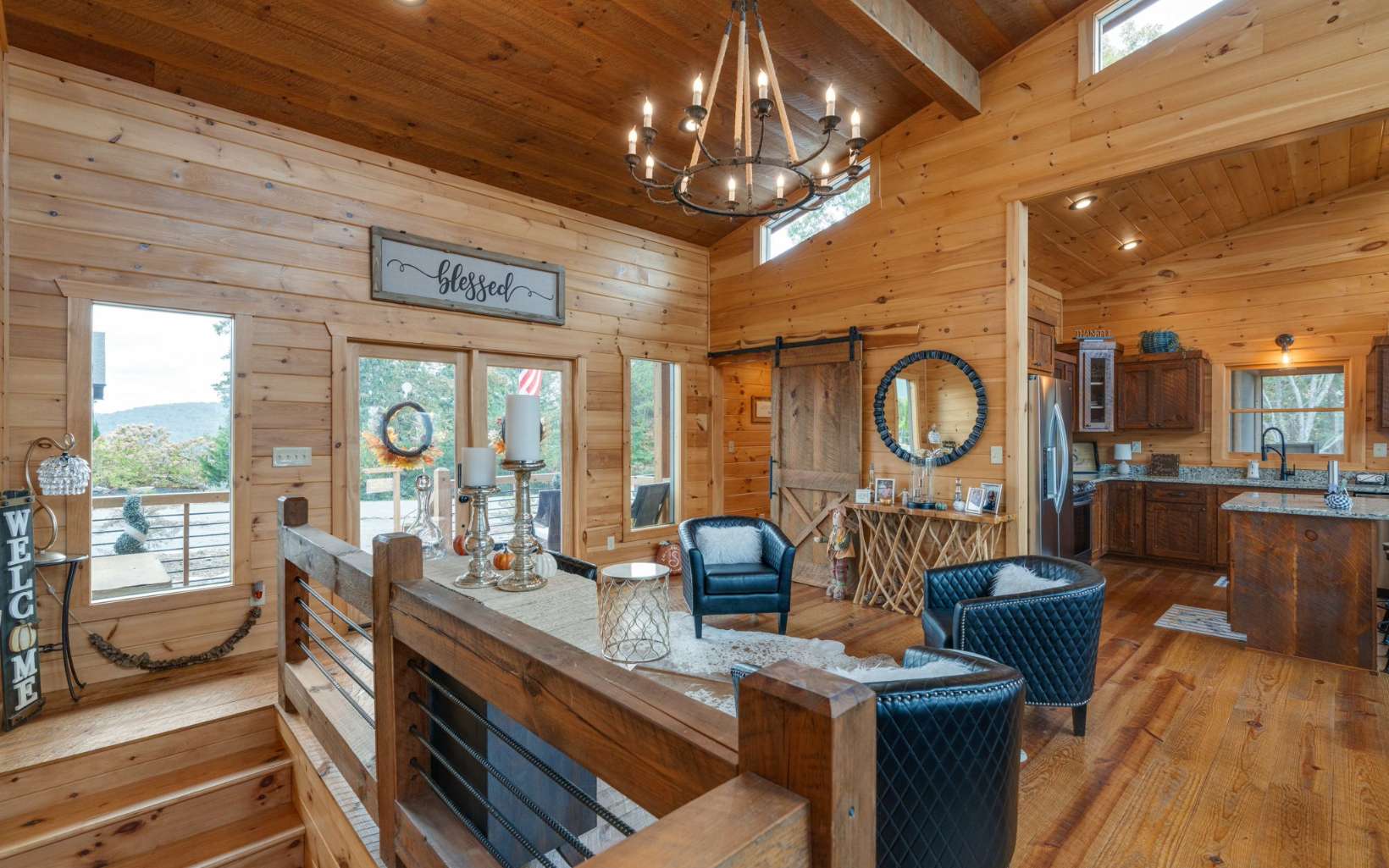 This Blue Ridge Rustic Modern cabin offering high-end features, presents an excellent investment opportunity with its impressive rental projection. Offering a 3-bedroom, 2.5-bathroom fully furnished home featuring stunning, Long Range Mountain Views of the Blue Ridge and North Carolina Mountains. Located in a secure, gated community, tranquility and peace await you. Step inside and be captivated by the tasteful upgrades throughout. From the luxurious granite countertops to the upgraded lighting, every detail has been carefully considered. The custom kitchen and bath cabinets add an elegant touch, while the open floor plan seamlessly connects the spacious kitchen to the inviting living area, complete with sleek stainless-steel appliances. The wood interior and sliding barn doors create a warm and rustic ambiance. The outdoor space is exceptional, highlighted by an expansive 20 x 24 deck on the main level with a cozy stone wood-burning fireplace. A screened deck allows you to fully enjoy the picturesque views and fresh mountain air. The fully finished basement offers a relaxing retreat with a wet bar, 2 bedrooms, and a full bath. Enjoy the spacious 20x24 party deck and fenced-in area for pets, making it perfect for entertaining. Addl features include a whole-home generator and water filtration system and ample outdoor storage. Conveniently situated to downtown Blue Ridge, local shops, the well-loved Blue Ridge Scenic Railway, fine dining, and plenty of outdoor activities!