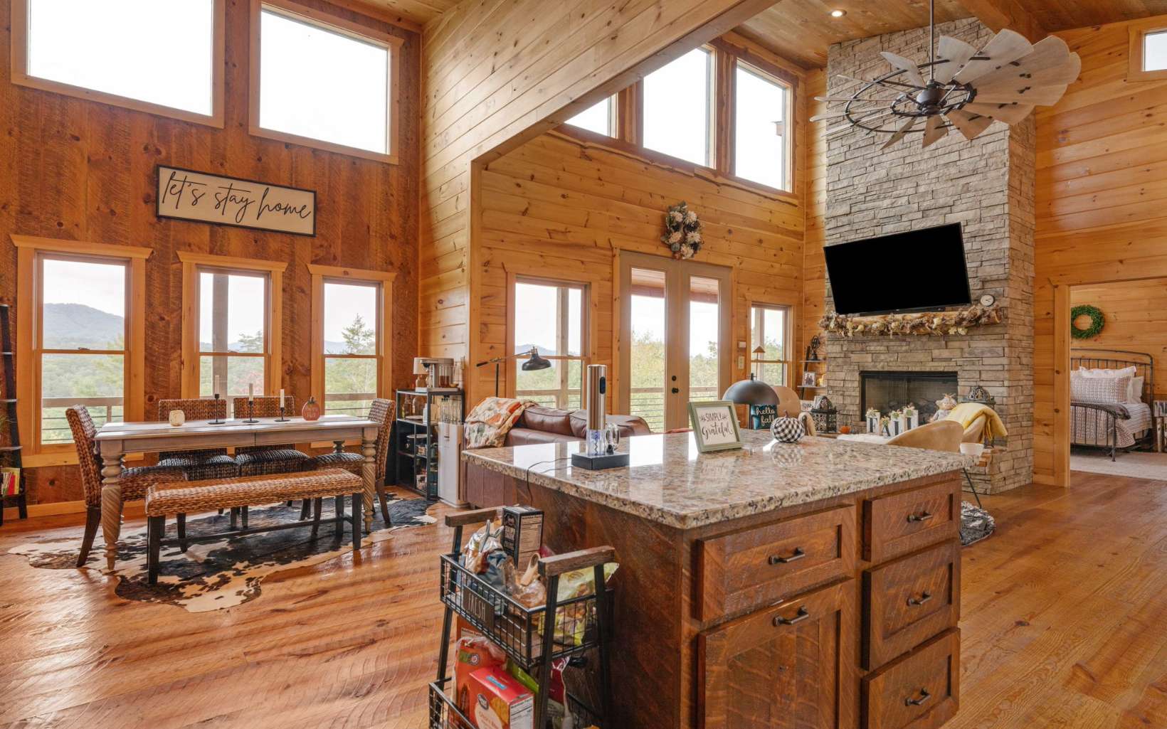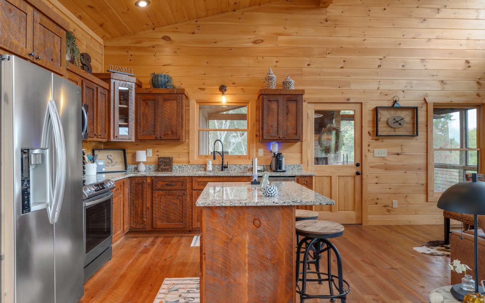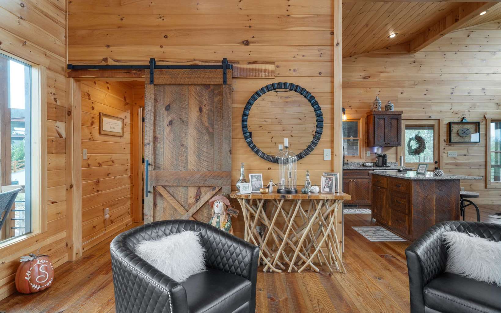 This Blue Ridge Rustic Modern cabin offering high-end features, presents an excellent investment opportunity with its impressive rental projection. Offering a 3-bedroom, 2.5-bathroom fully furnished home featuring stunning, Long Range Mountain Views of the Blue Ridge and North Carolina Mountains. Located in a secure, gated community, tranquility and peace await you. Step inside and be captivated by the tasteful upgrades throughout. From the luxurious granite countertops to the upgraded lighting, every detail has been carefully considered. The custom kitchen and bath cabinets add an elegant touch, while the open floor plan seamlessly connects the spacious kitchen to the inviting living area, complete with sleek stainless-steel appliances. The wood interior and sliding barn doors create a warm and rustic ambiance. The outdoor space is exceptional, highlighted by an expansive 20 x 24 deck on the main level with a cozy stone wood-burning fireplace. A screened deck allows you to fully enjoy the picturesque views and fresh mountain air. The fully finished basement offers a relaxing retreat with a wet bar, 2 bedrooms, and a full bath. Enjoy the spacious 20x24 party deck and fenced-in area for pets, making it perfect for entertaining. Addl features include a whole-home generator and water filtration system and ample outdoor storage. Conveniently situated to downtown Blue Ridge, local shops, the well-loved Blue Ridge Scenic Railway, fine dining, and plenty of outdoor activities!