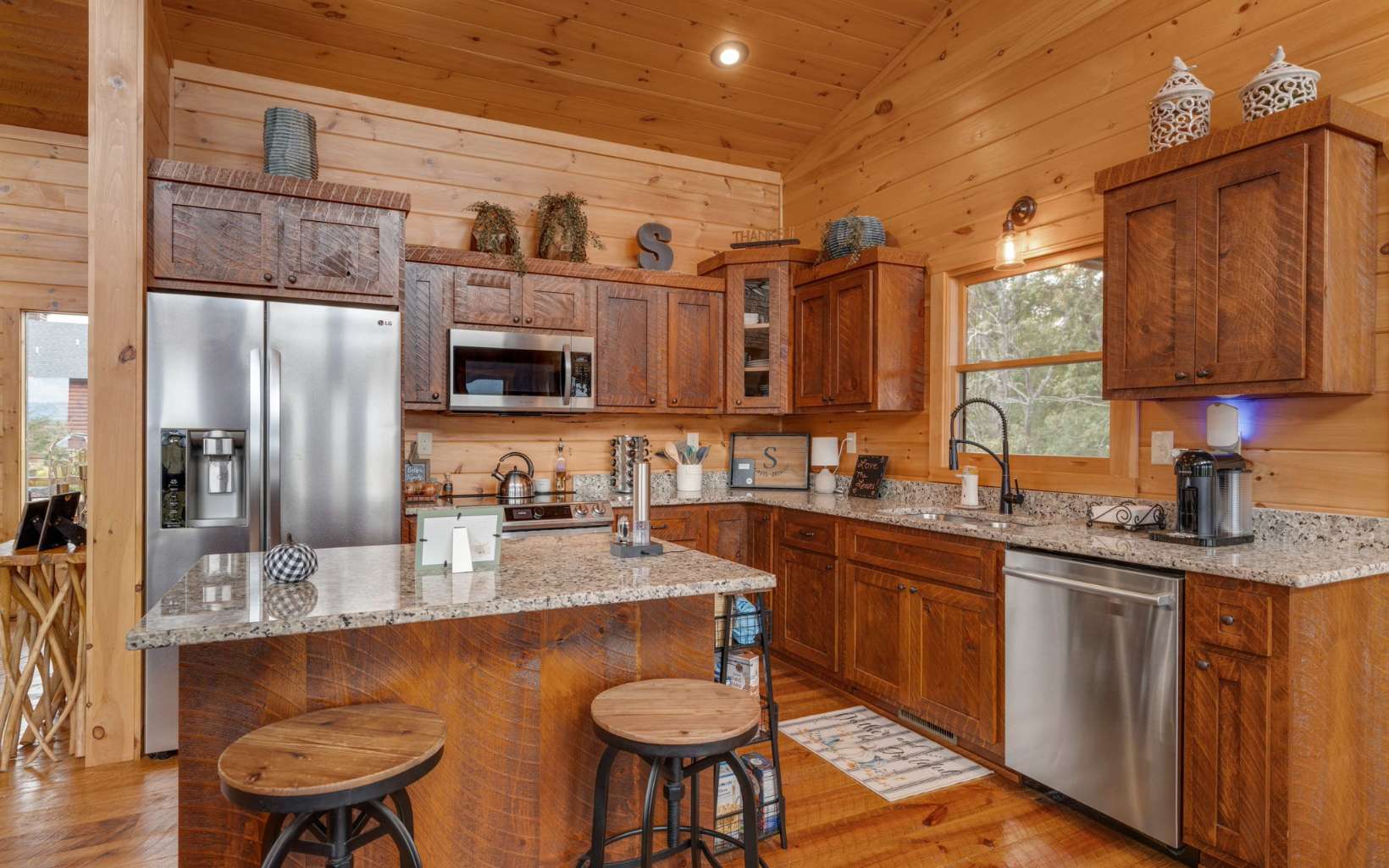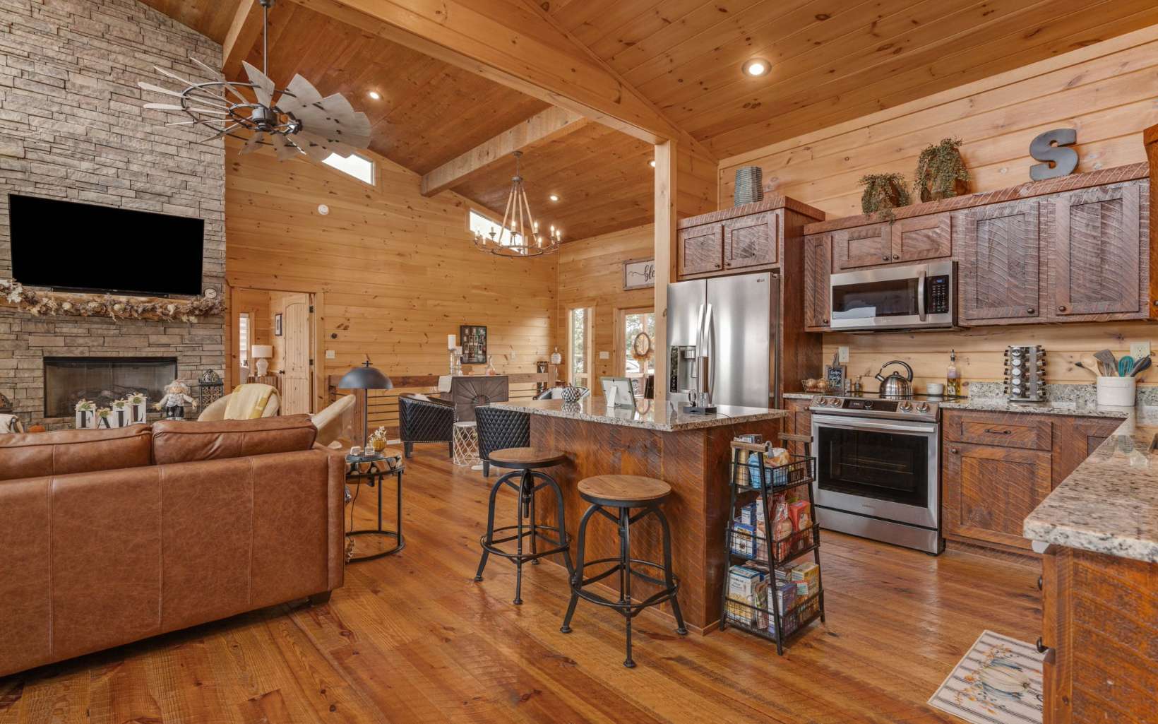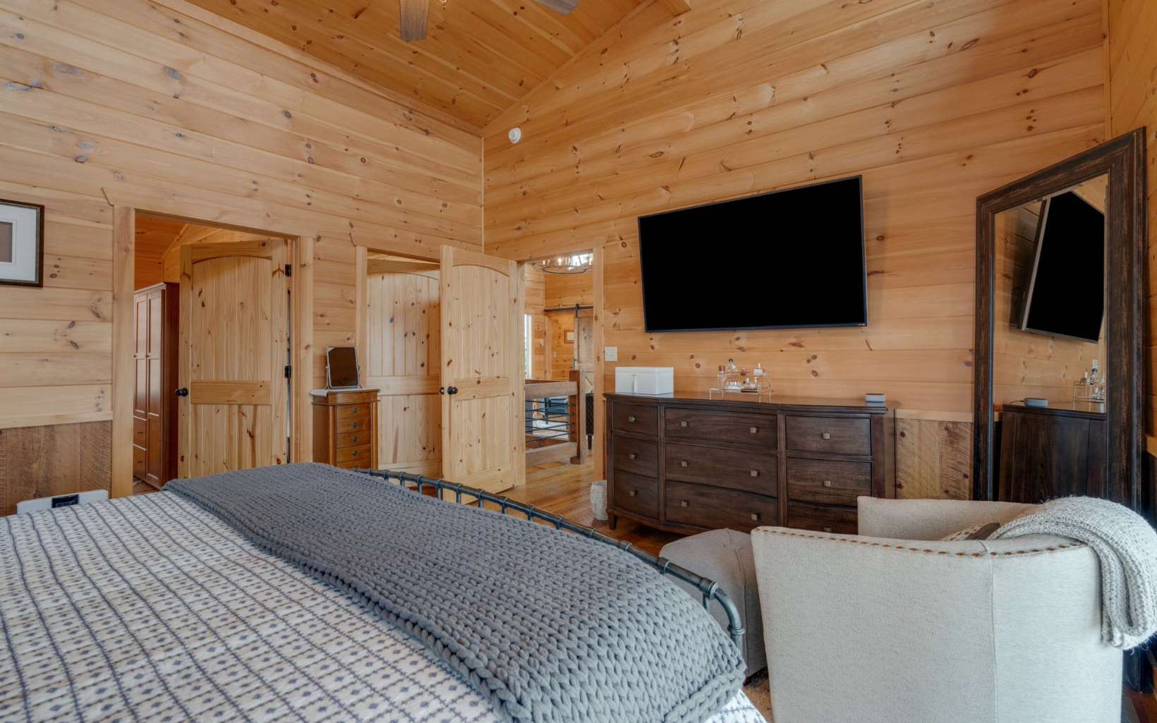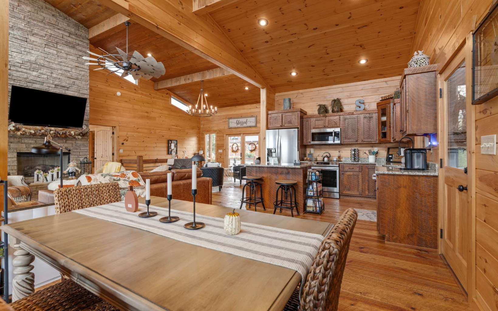 This Blue Ridge Rustic Modern cabin offering high-end features, presents an excellent investment opportunity with its impressive rental projection. Offering a 3-bedroom, 2.5-bathroom fully furnished home featuring stunning, Long Range Mountain Views of the Blue Ridge and North Carolina Mountains. Located in a secure, gated community, tranquility and peace await you. Step inside and be captivated by the tasteful upgrades throughout. From the luxurious granite countertops to the upgraded lighting, every detail has been carefully considered. The custom kitchen and bath cabinets add an elegant touch, while the open floor plan seamlessly connects the spacious kitchen to the inviting living area, complete with sleek stainless-steel appliances. The wood interior and sliding barn doors create a warm and rustic ambiance. The outdoor space is exceptional, highlighted by an expansive 20 x 24 deck on the main level with a cozy stone wood-burning fireplace. A screened deck allows you to fully enjoy the picturesque views and fresh mountain air. The fully finished basement offers a relaxing retreat with a wet bar, 2 bedrooms, and a full bath. Enjoy the spacious 20x24 party deck and fenced-in area for pets, making it perfect for entertaining. Addl features include a whole-home generator and water filtration system and ample outdoor storage. Conveniently situated to downtown Blue Ridge, local shops, the well-loved Blue Ridge Scenic Railway, fine dining, and plenty of outdoor activities!
