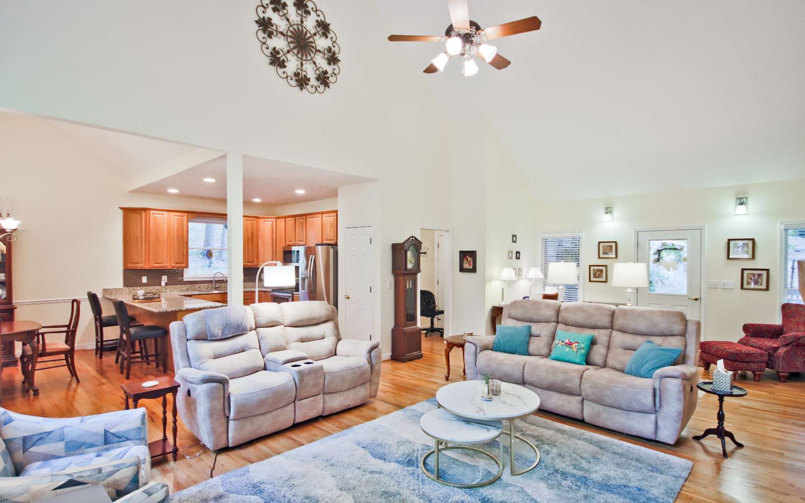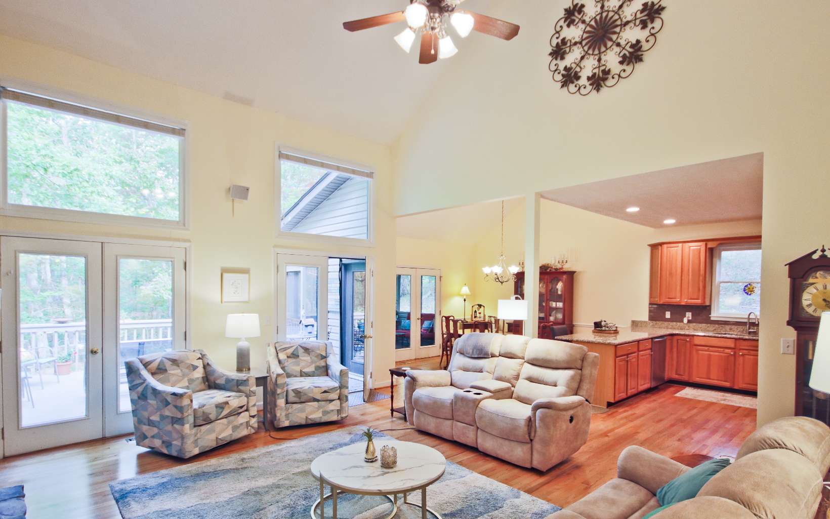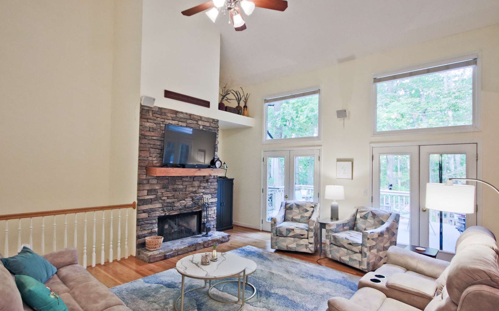This move-in ready home features an open floor plan and is close to the front gate and the amenities that Bent Tree has to offer. The main level features a Great Room with hardwood floors, a stacked-stone gas fireplace with gas logs, two sets of French Doors that lead to the spacious back deck, a well appointed kitchen with granite counter tops, a dining area with doors that lead to the deck and screened porch, a Primary Suite with a double sink vanity bathroom, a powder room, and a well organized laundry room. The terrace level boasts a Family Room with an electric fireplace, two spacious guest suites, lots of storage, and a workshop/golf cart garage that has its own driveway leading to it. This home has a whole house generator installed in 2019, a new roof in 2018, a new HVAC in 2017, a new refrigerator in 2020 and a new gas water heater installed in 2022.