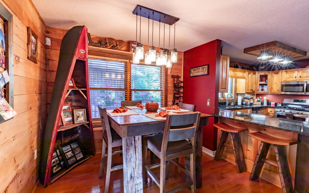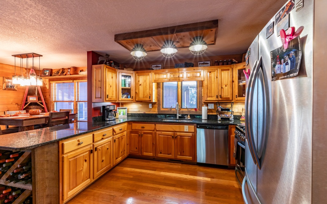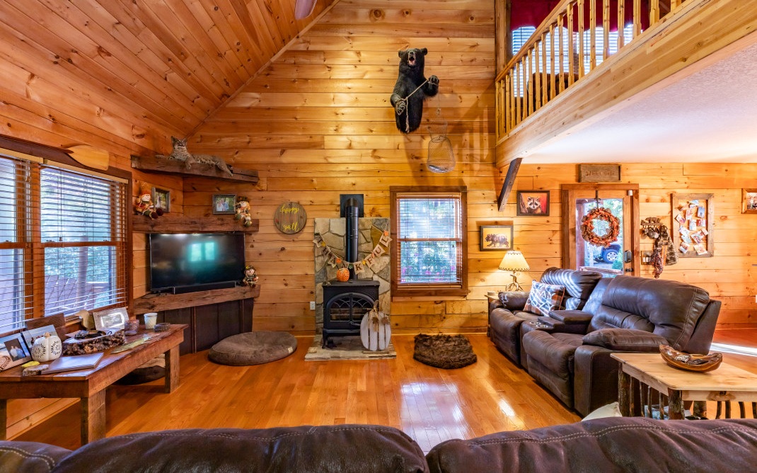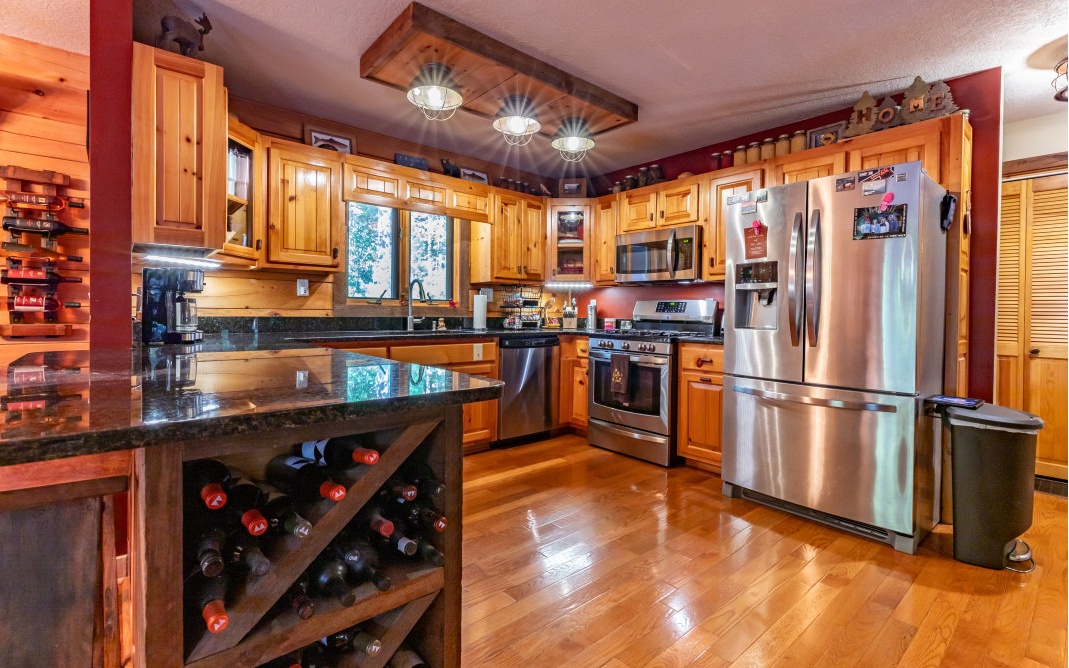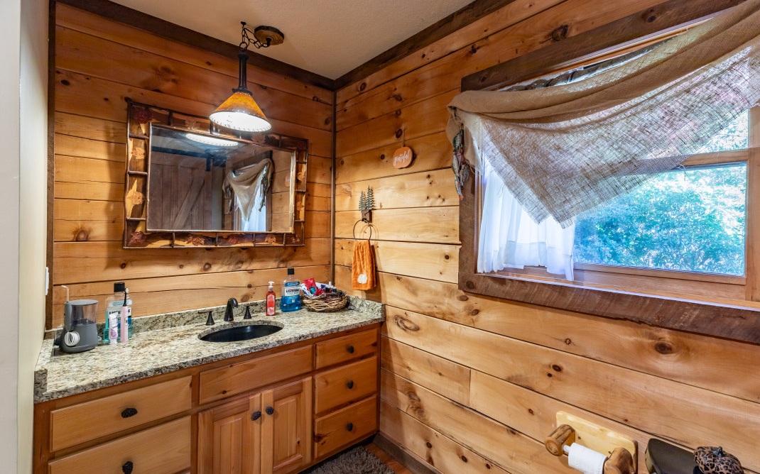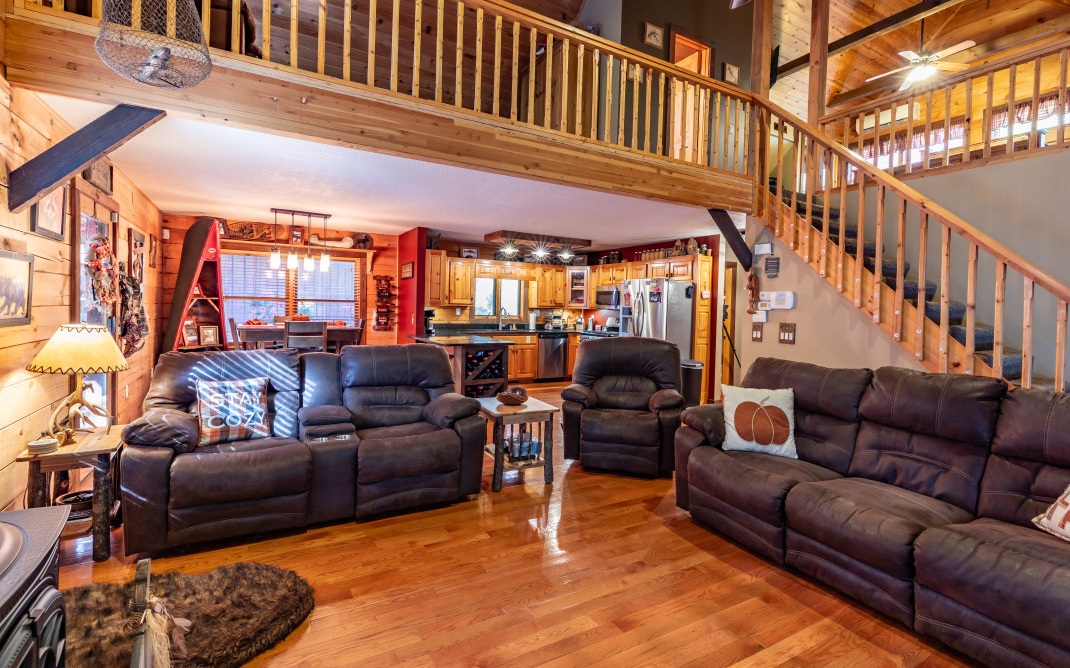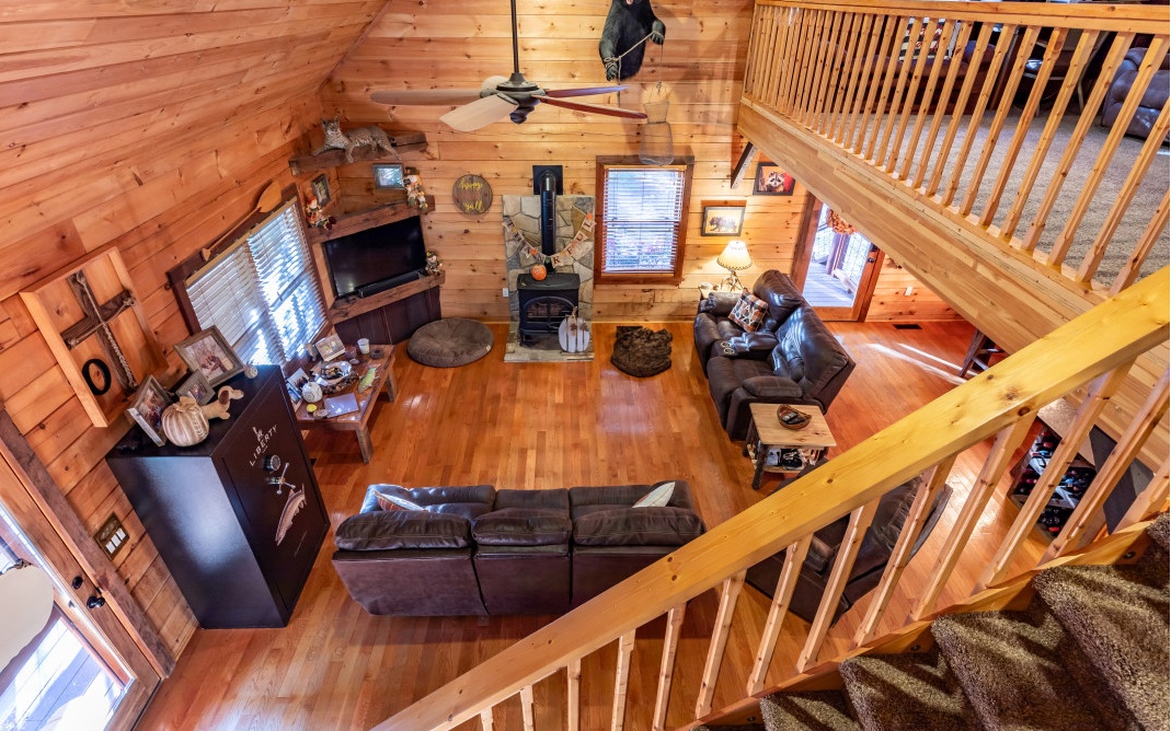 Step foot onto this property and you IMMEDIATELY feel at home w/ space for everything PLUS lots of room for hanging out both inside & out! 1 BR/1 full BA on main AND upper levels for privacy plus half BA on terrace level. Circular drive nestled by mountain laurel, separate 2-car garage w/ storage above (w/ electric), & barn. Main floor features primary BR w/ ensuite, lots of closet space, & step-in shower. Vaulted LR w/ gas FP & wood stove. Spacious kitchen w/ granite c-tops, S/S apps, gas stove, peninsula w/ wine rack. Huge upper level w/ vaulted loft BR, full BA, & loft hangout space. Terrace level—your FAVORITE level—has den hangout equipped w/ a gas FP, bar area w/ granite c-top, lg copper sink, & wall of glass doors to let in the sun! Plus bonus room, half BA, & storage room. HUGE covered pavilion w/ outdoor kitchen & plenty of room to entertain! Property borders USFS & creek.